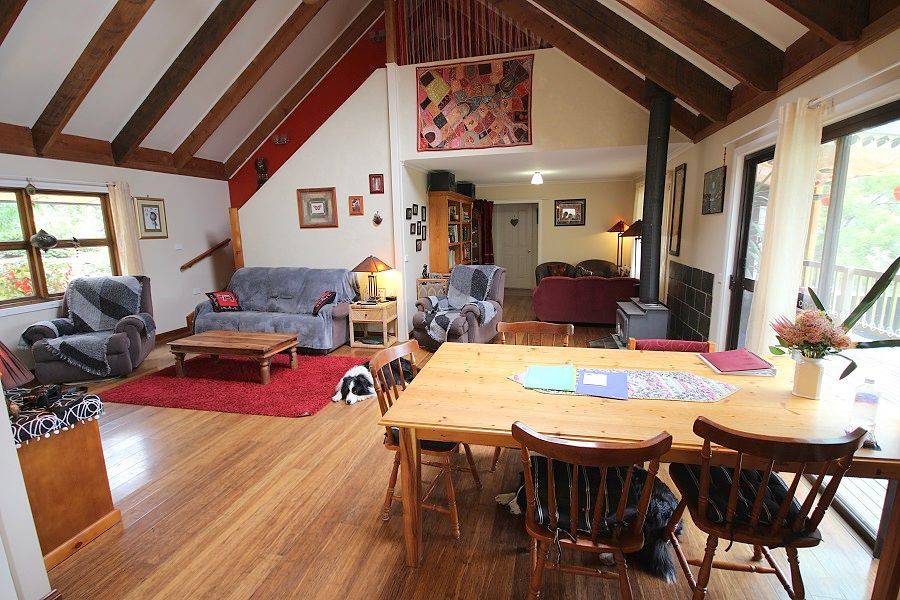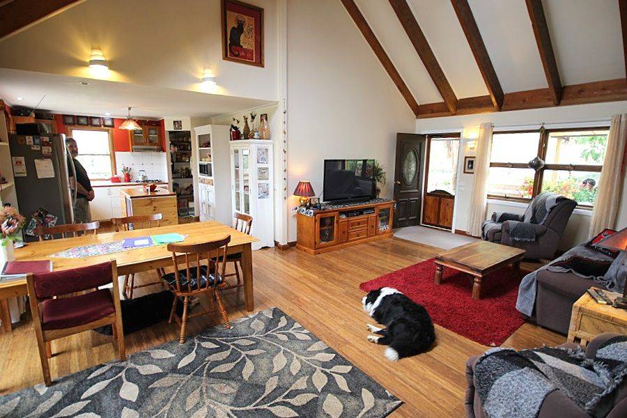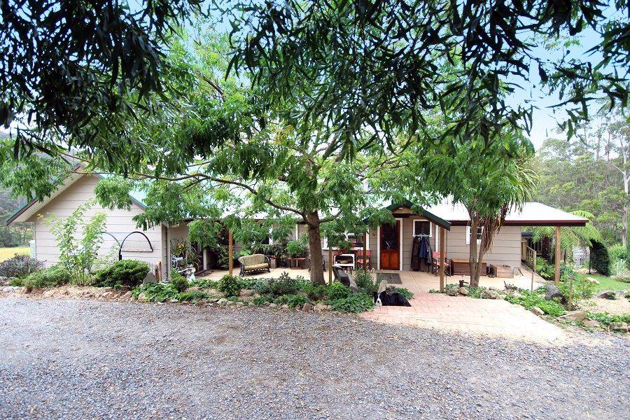 Beautiful 4.2 acre rural oasis tucked away on a no-thru road in the heart of Nethercote only a dozen mins from Eden/Pambula. Fronting crystal clear Old Hut Creek, small rapids, water holes etc, the property features a character-filled 4 bedroom home, spacious throughout with open living (raked ceilings) out to substantial front and rear covered deck/entertainment areas, fully equipped kitchen, 3 bathrooms including ensuites to both master bedrooms, mezzanine utility/2nd living area, fully established surrounds with dual access drive, workshop plus double carport, storage sheds, enclosed orchard, veggie gardens, chook yards etc and small stockyards. JUST IDYLLIC.