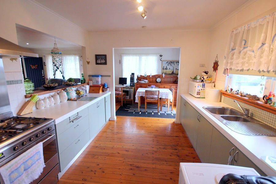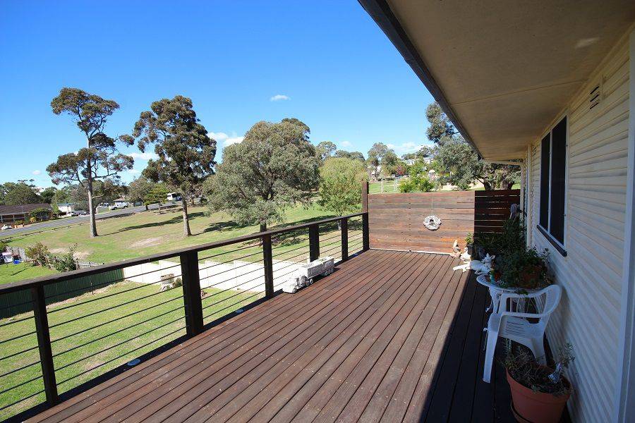 A real beauty, set on approx 930m2 block directly adjoining parkland and central to Eden's main street and most amenities. Modern and open, the 3 bedroom home boasts water views across Twofold Bay and features large flowing living areas with polished cypress floors out to an impressive house-width sun deck, spacious well-appointed kitchen, walk-in pantry, designer bathroom and built-ins in two bedrooms. Fully fenced rear yard with free standing lock-up garage/workshop. A walk in the Park.