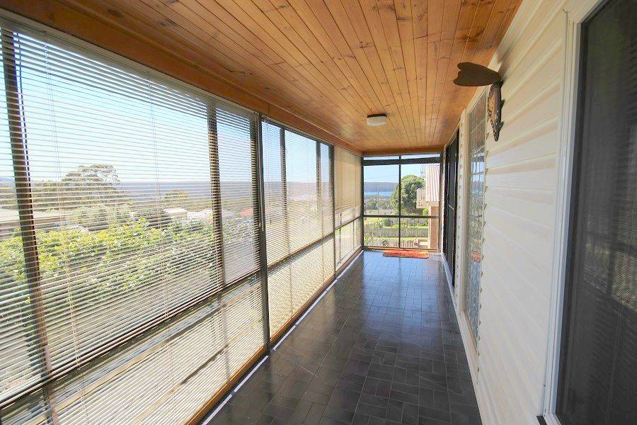 township to Twofold Bay and out to sea. Super tidy and well maintained 3 bedroom home comprising main living with split system, sunroom to warm those winter blues, well equipped kitchen, dining, utility/office, family area to the rear and modern bathroom. Under house lock up garage/workshop and additional freestanding l/u garage (with second street frontage). Fully fenced and established surrounds complete with backyard gazebo to enjoy the water views. Fly high.