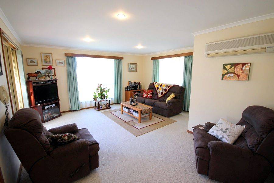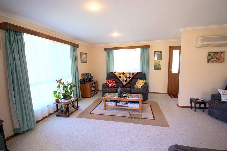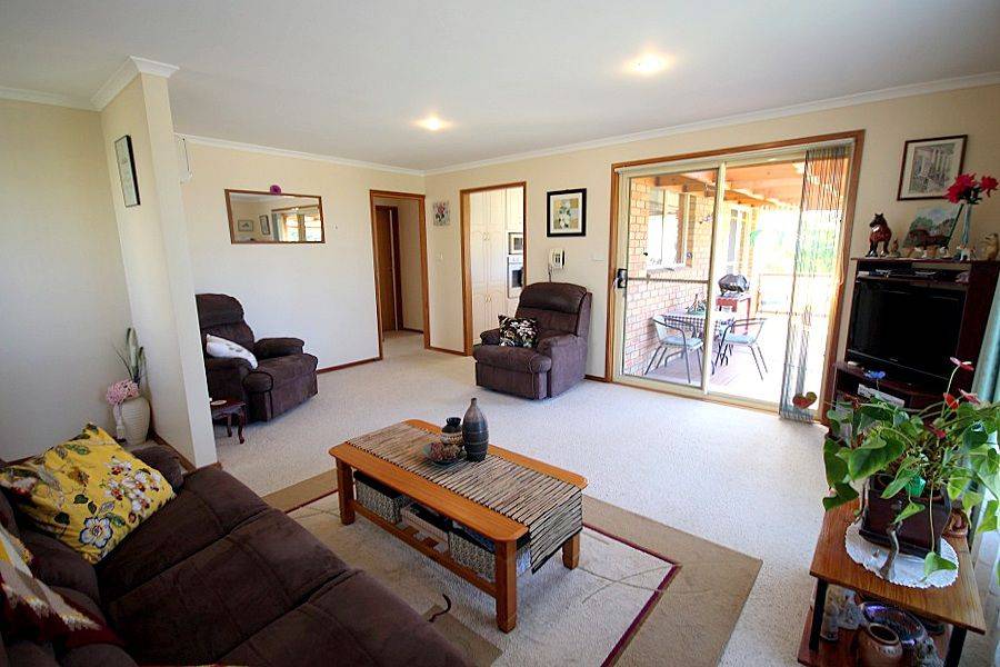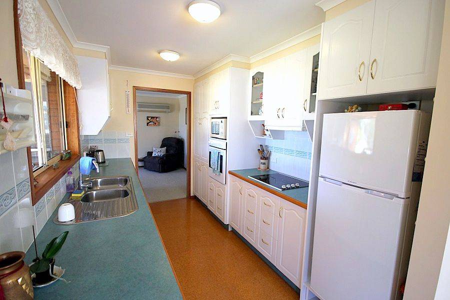 Cracking 2 bedroom brick veneer and Colorbond roofed home set in a quiet cul-de-sac with an excellent sheltered north east aspect and sparkling water views across Lake Curalo to Twofold Bay. Features include lounge with split system, well equipped kitchen adjoining dining out to generous laser lite covered indoor/outdoor living area, oversized bedrooms (including huge master) BIRs, bathroom, separate WC and direct house access from carport. Beaut gently sloping fully landscaped surrounds that offer easy access to front and rear yards. NEAT AS A PIN AND READY TO MOVE IN!