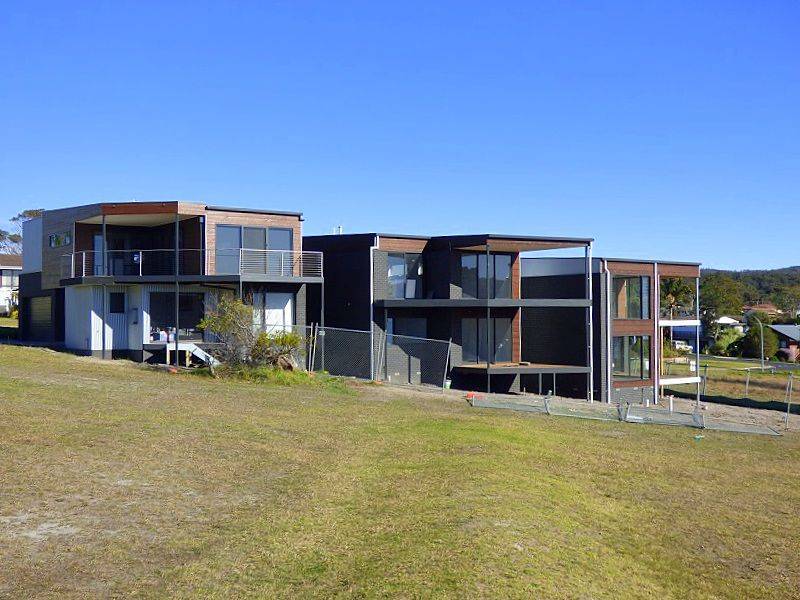One of three designer 3 bedroom homes (freehold title) directly adjoining reserve and a mere 150m from award winning Aslings Beach. With glittering water views and deck/alfresco area to relax and take it all in, the home is spacious in size, 250m2 approx (including decks). Generous open living, fully equipped kitchen, 2 bath including ensuite, 3 WCs and double LU garage.Upon completion property will be fully landscaped and ready to move in..