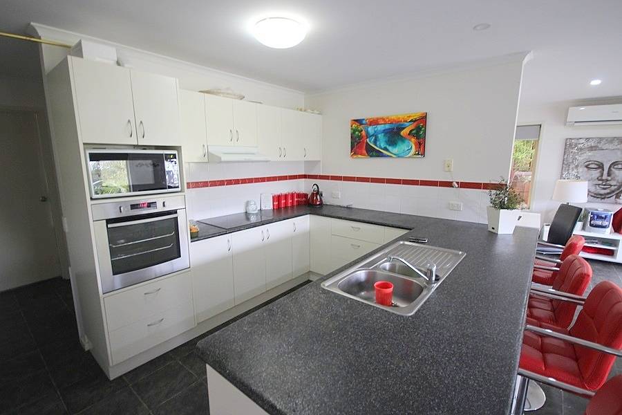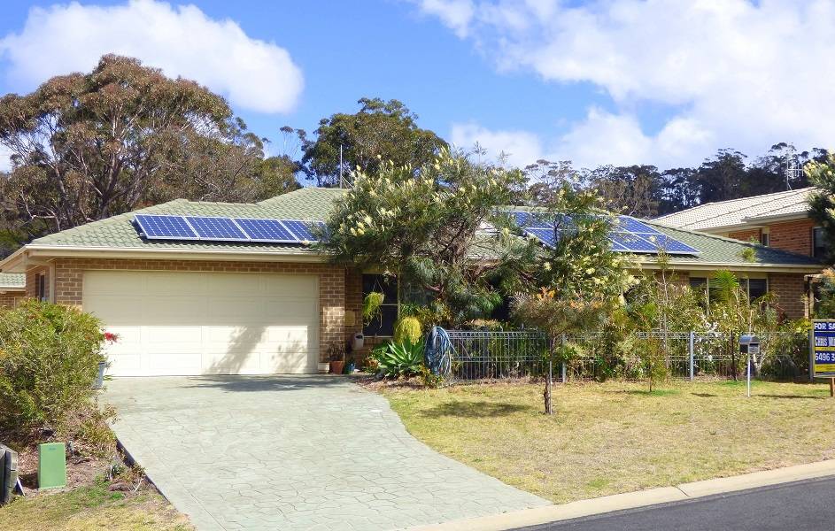 Light filled & spacious 4 bedroom (3 br & office) b/v & tile duplex home with its own exclusive street frontage. Positioned in a quiet court location just a one minute drive from Bournda National Park & beach. Low maintenance and featuring large open north facing living/dining out through bi fold doors to a marvellous decked and covered alfresco area bathed in dappled light, well equipped kitchen with breakfast bar, master bedroom with en suite, BIRs, 3 split systems, double remote garage, established gardens including garden shed – even back to grid solar. Fantastic, affordable and the complete package!
