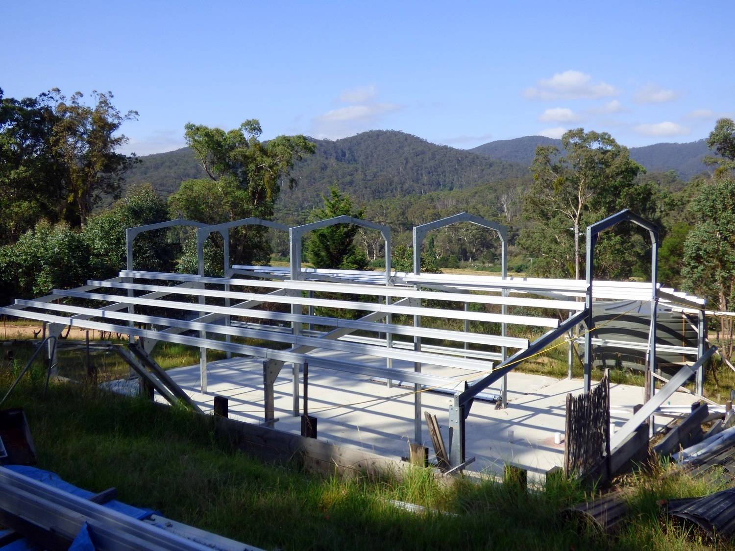 Looking for a weekend retreat or just an affordable entry point on the property ladder? How about a ½ acre block nestled in Towamba village with views to the national park, fresh air and peace and quiet laid on? Even better, a fully   approved 14m x 12m partially constructed steel frame dwelling with slab and plumbing in place and all the materials to complete the frame and cladding plus connected power, water tank, a couple of storage sheds/caravan and various building materials. Get set to enjoy the sweet Towamba breeze.