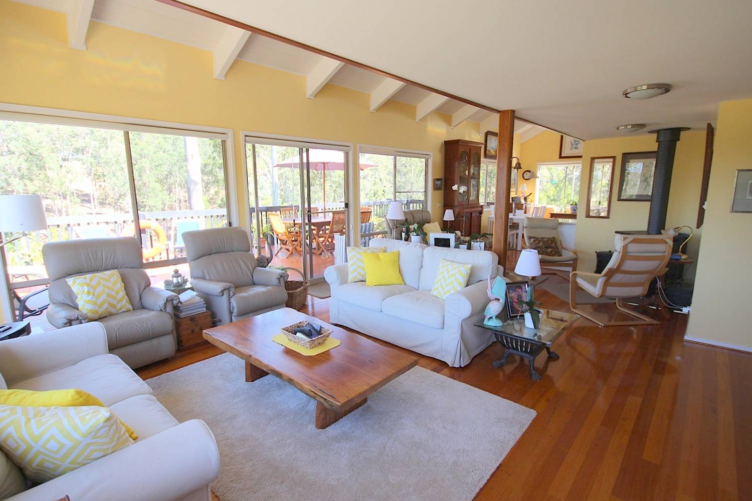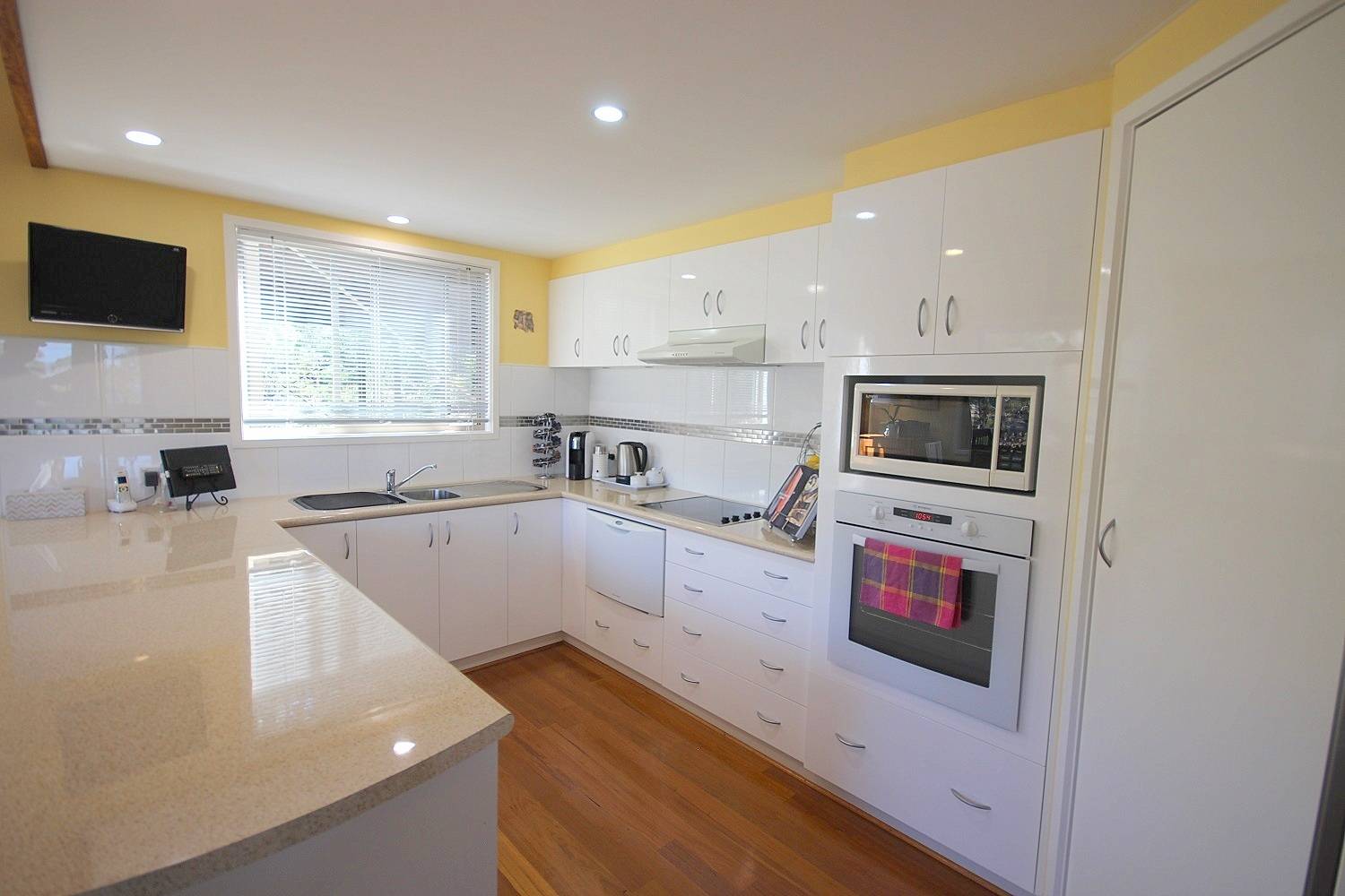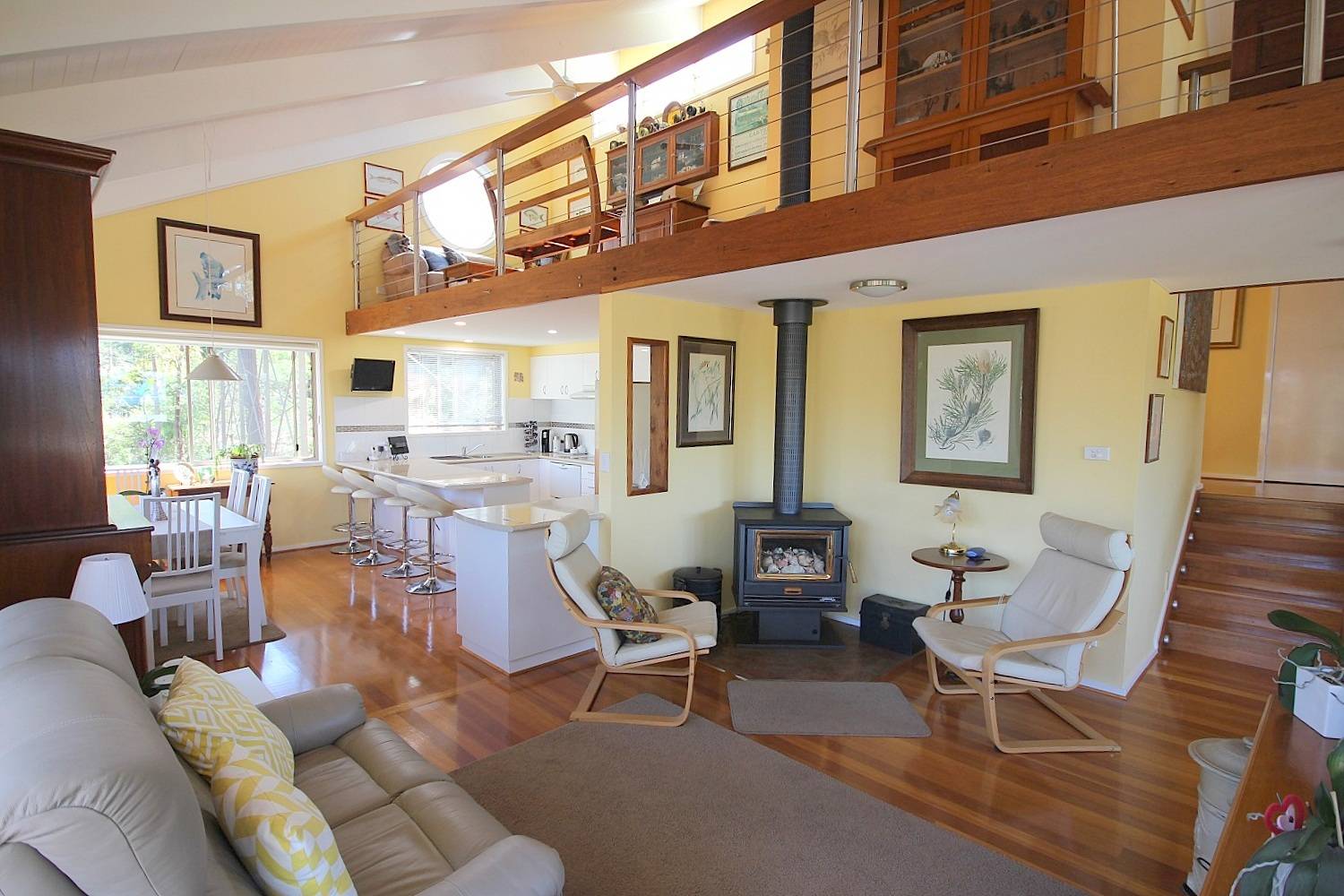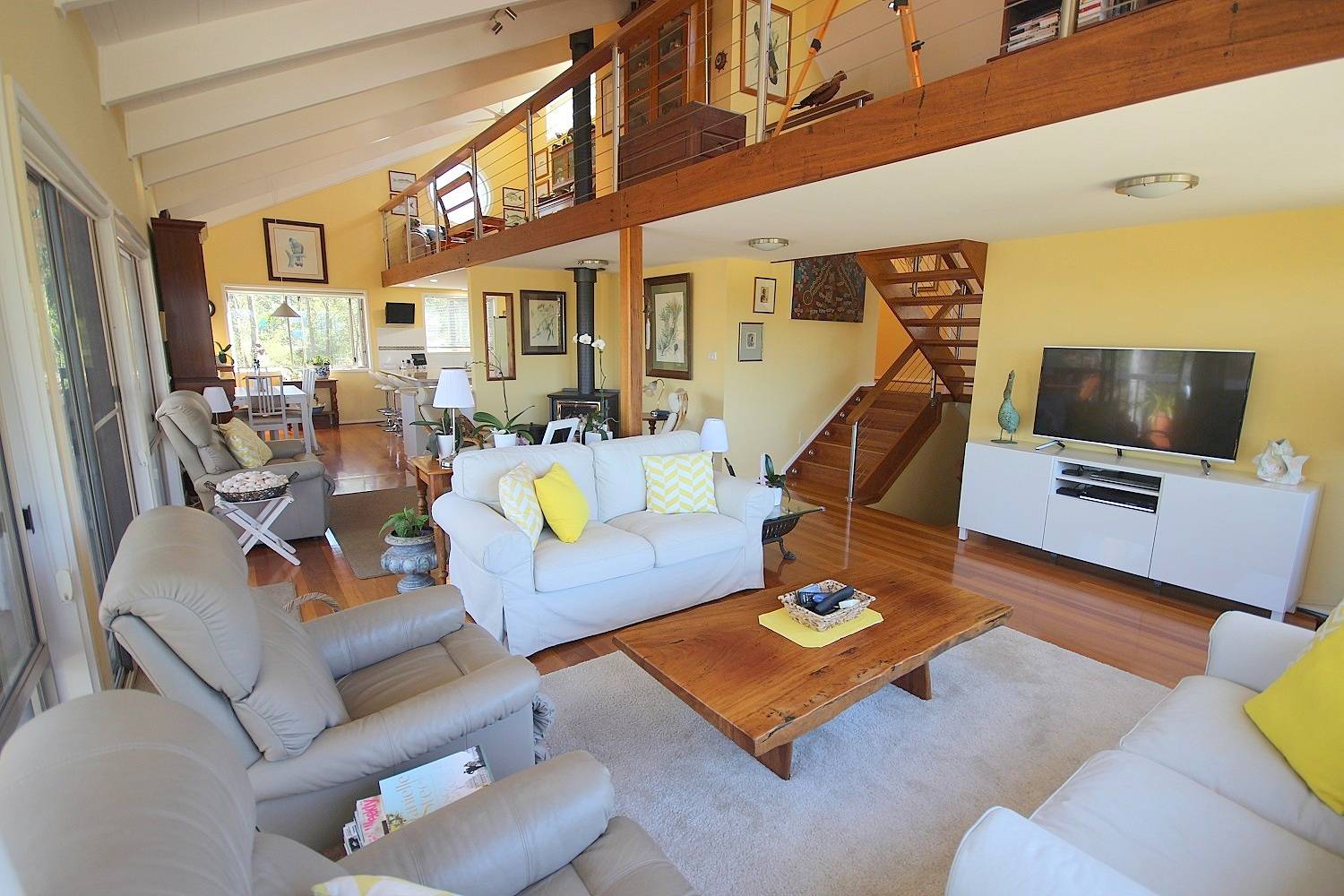 Fantastic 3 bedroom contemporary home set in a quiet court in the ever popular Cocora Beach locality. Immaculate throughout, a rush of adrenaline hits when you enter the vast open living light-filled area to the rear and sight the polished hardwood flooring, the floating mezzanine (office & 2nd living) and then out to the enormous rear deck to enjoy the beautiful leafy native bush and blue bay water views. Marvellous functional, fully optioned kitchen with breakfast bar, stylish new ensuite to master, BIRs, large laundry/3rd WC, massive workshop/man cave adjacent to an oversized double car remote garage. Low maintenance surrounds, even a pad for the caravan/boat etc tucked into the front garden. Outstanding home that will set the heart pumping.