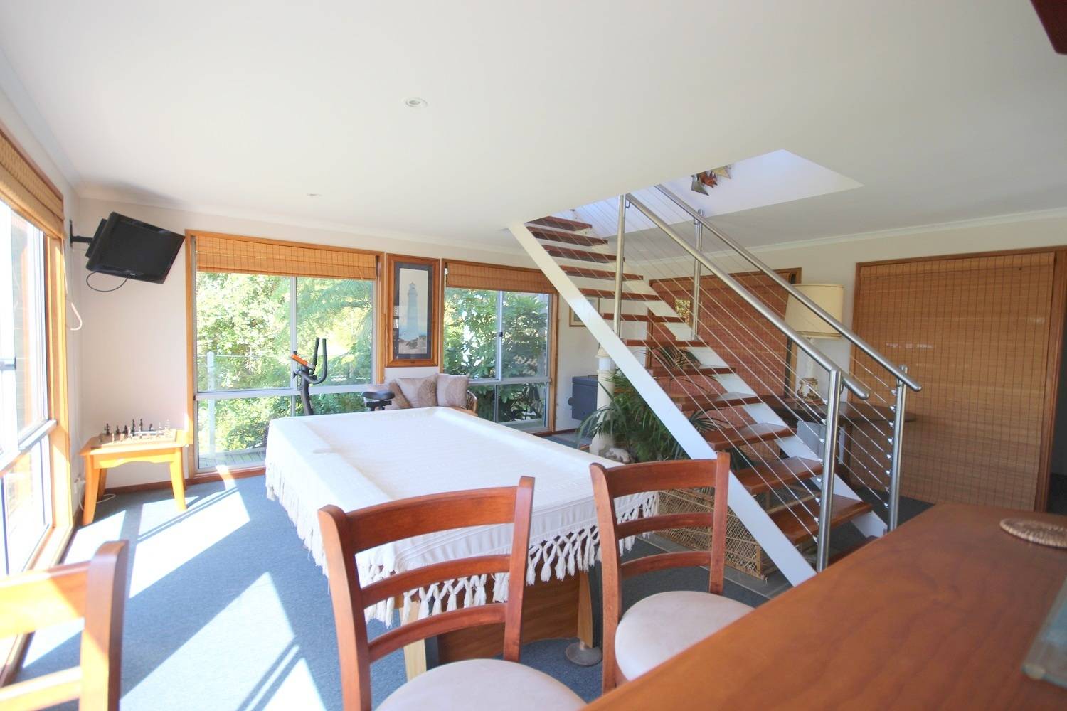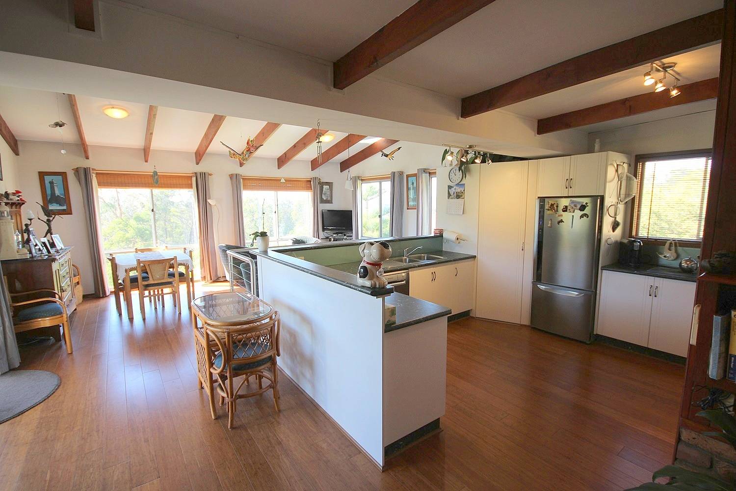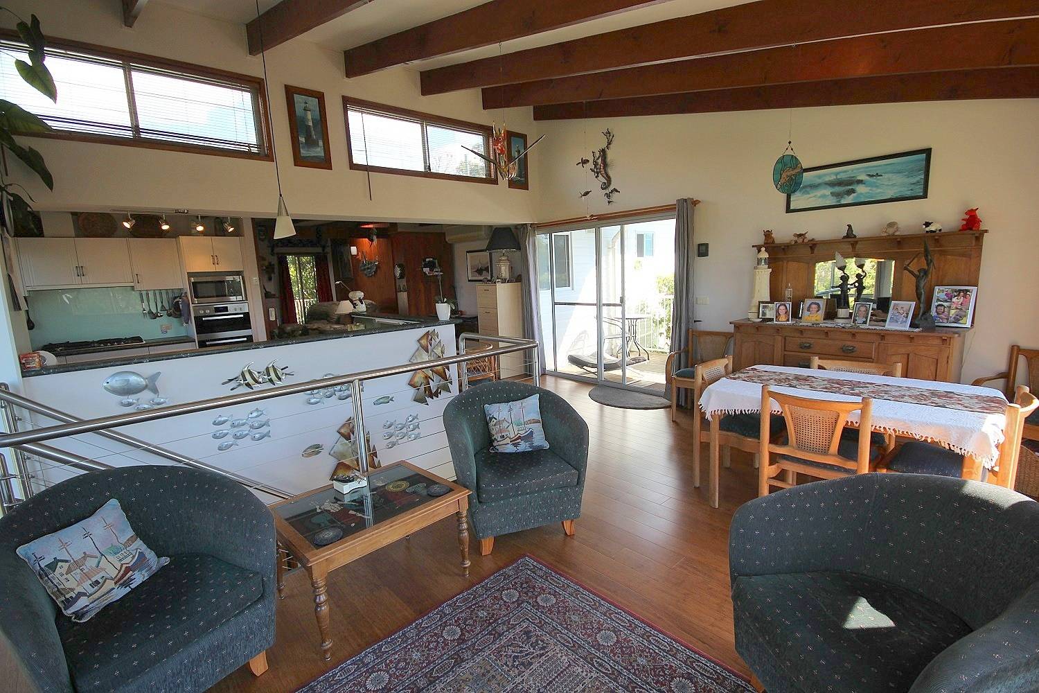 You’ll feel like you’re floating on air with big bay views, nature reserve to the side and rear and a charismatic 4 bedroom home to adore set in a quiet no through street in the popular Cocora Beach locality. Comprising lounge (S/C heating) through to fully equipped kitchen and family/dining (split system air con) with glass all around to enjoy the views out to an under roof deck/bbq area. Downstairs to rumpus adjoining extensive covered outdoor decking and master bedroom adjoining two way bathroom/laundry. Complete with off street parking, carport, gazebo/spa, established gardens and even a back gate to wonder down to the beach 300m. Feel as free as a bird.
