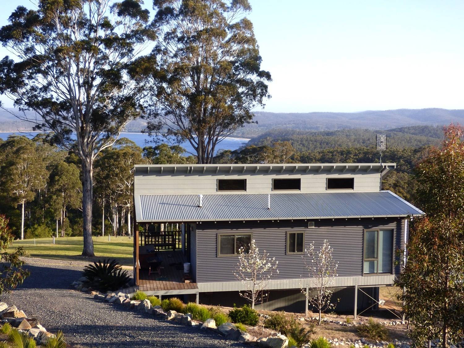 Sublime 4.2 acre holding boasting spine tingling views out across Twofold Bay to Boydtown Beach and across the hinterland to the majestic Mt Imlay. Unbelievably only 3 mins from Eden’s main street, boat ramp and beach, the property comprises a new one bedroom dwelling featuring large open living & dining, hardwood lined raked ceilings out to under roof sundeck to enjoy the wonderful external amenity, stylish soft close kitchen, bedroom with BIR, designer bathroom and large LU utility (2 car lengths) area underneath complete with laundry facilities. Other improvements include 6x10m double Colorbond garage/workshop, dam, established & manicured surroundings which adjoins state forest to the rear and even a complete set of approved plans ready for your dream home if required. A special place.
