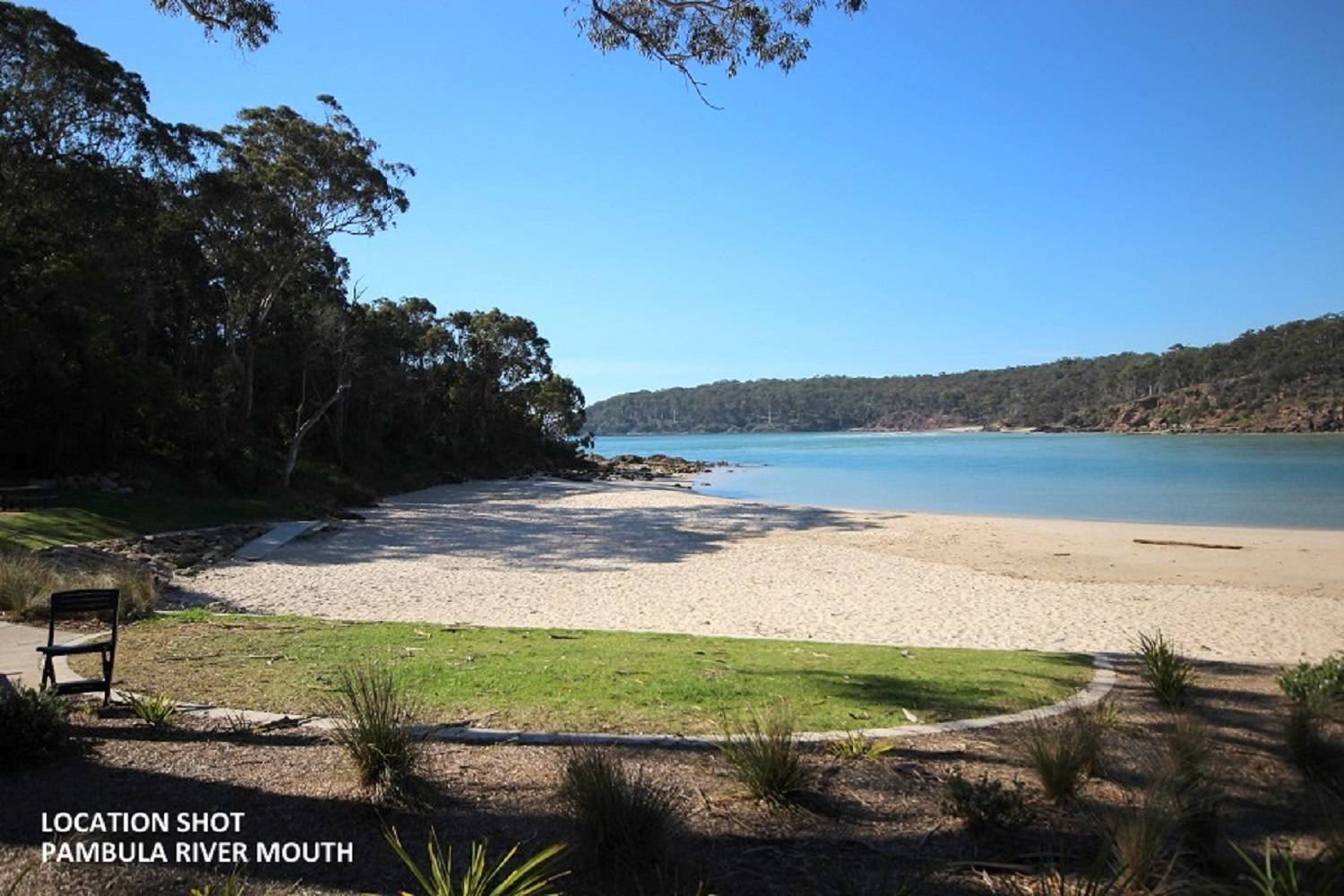 Nestled away at the end of a private lane way and set on a fully fenced 1/4 acre block, 4 bedroom home with an outstanding Northerly aspect and marvellous rural vistas across the Pambula flats. Features include living (split system) out to a decked & covered indoor/outdoor area, dining/family (S/C heating), complete with equipped kitchen, super sized as new gleaming main bathroom, brand new en suite to master, BIRs (2BRs) complete with low maintenance surrounds, double carport and loads of under house storage. Just 3 minutes to the historic Pambula village and 5 minutes to the beach. A real BBQ stopper.