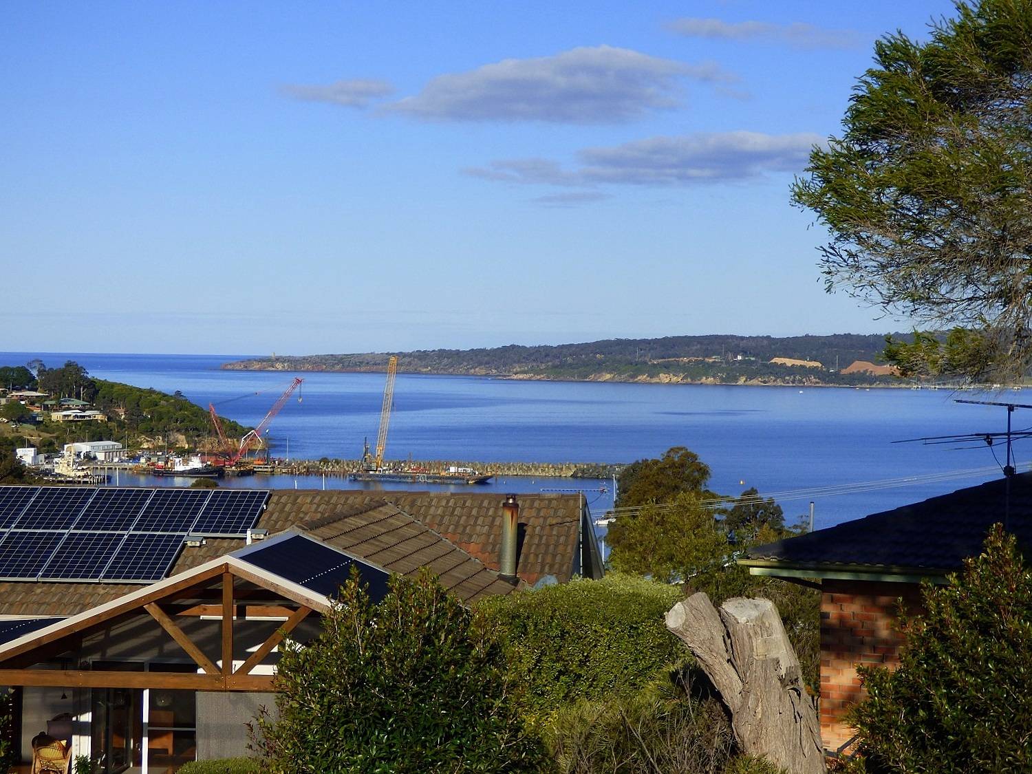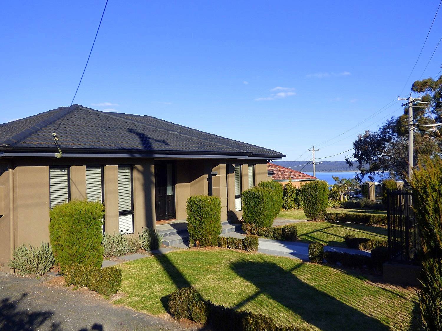 Boasting mesmerising big blue water views across Twofold Bay taking in Eden’s famous fishing fleet, Boyd’s Tower and out to sea. Striking 3 bedroom as new home featuring flowing open living from lounge through to a superb fully appointed kitchen (s/s appliances) with adjoining family/dining out through stacker doors to a fully tiled alfresco living area, generous bedrooms all with BIRs, gleaming designer bathroom, sep. under patio workshop/utility area and generous double remote garage. Quality landscaped fully fenced block with loads of off-street parking for caravan, boat etc. Fantastic locality with iconic Cocora Beach just a roll down the hill (300m). Clearly a winner and available for immediate inspection.