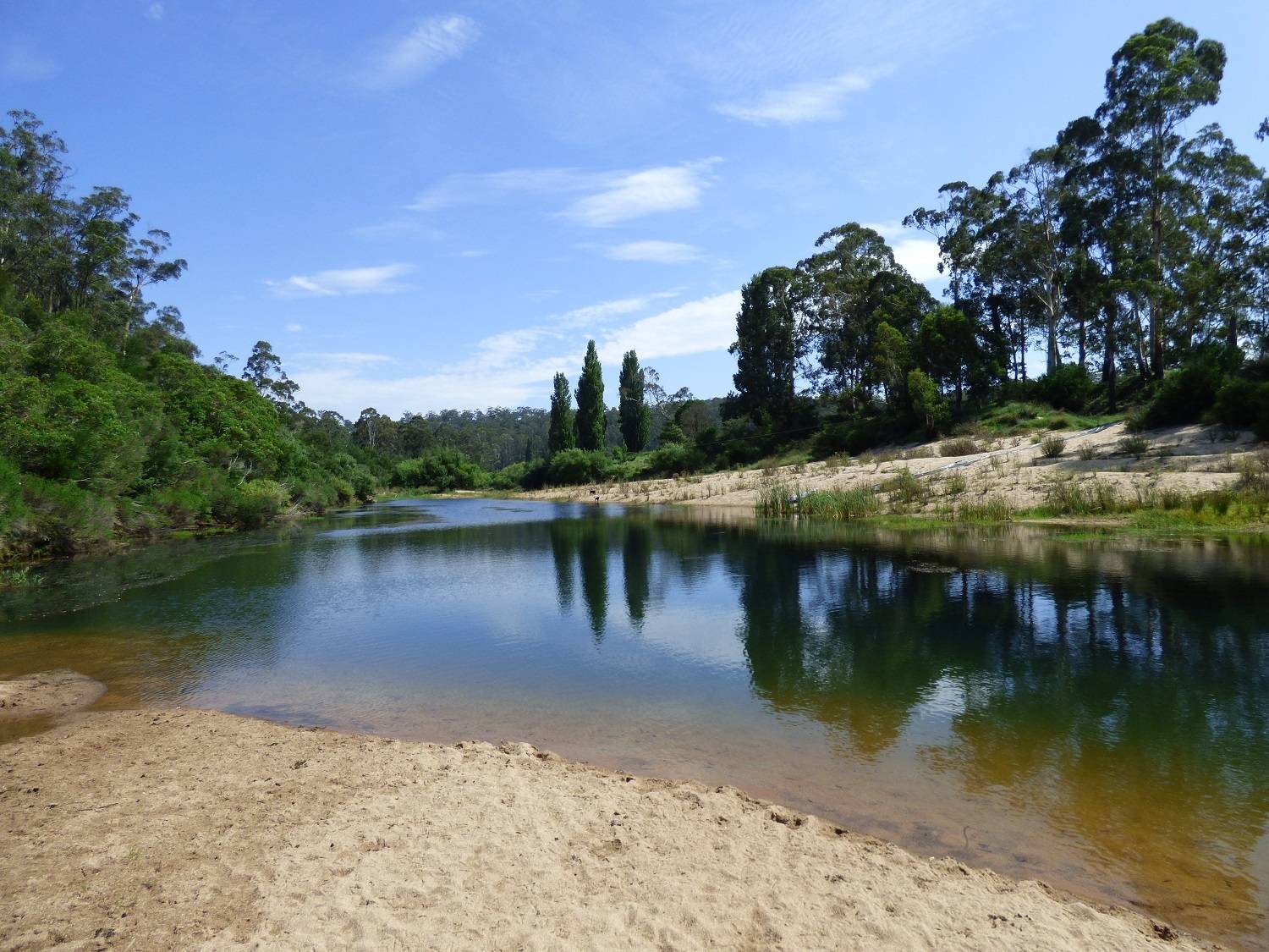Magnificent 25 acre riverfront holding featuring compelling and varying attributes including an elevated fully cleared and near level 1 acre house site with commanding 360° bush, hinterland and mountain views complete with weekender/temporary accommodation (5 rooms), excellent solar system, 45,000 litres of tank water and a sweet sea breeze. Be in awe as you meander through a moist tree lined gully past majestic gums down to the sandy banks of the iconic Towamba River where a magnificent swimming hole and its clear fresh water awaits. Super convenient, just a couple of minutes from the Kiah general store and 10 cruisie minutes from all of Eden’s amenities. Dare to dream.