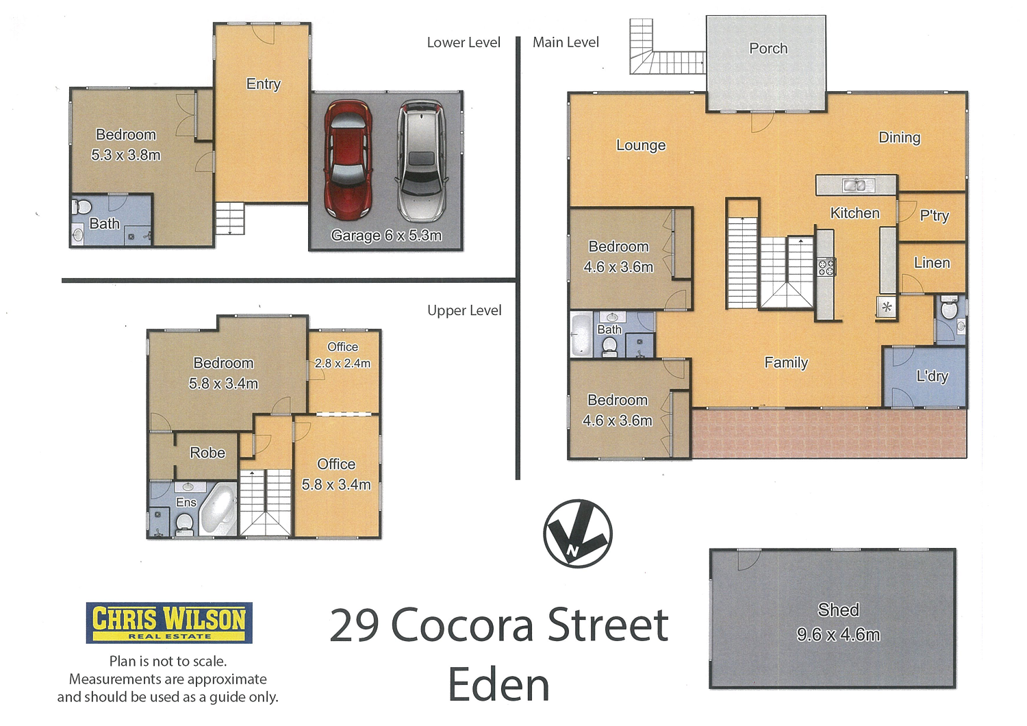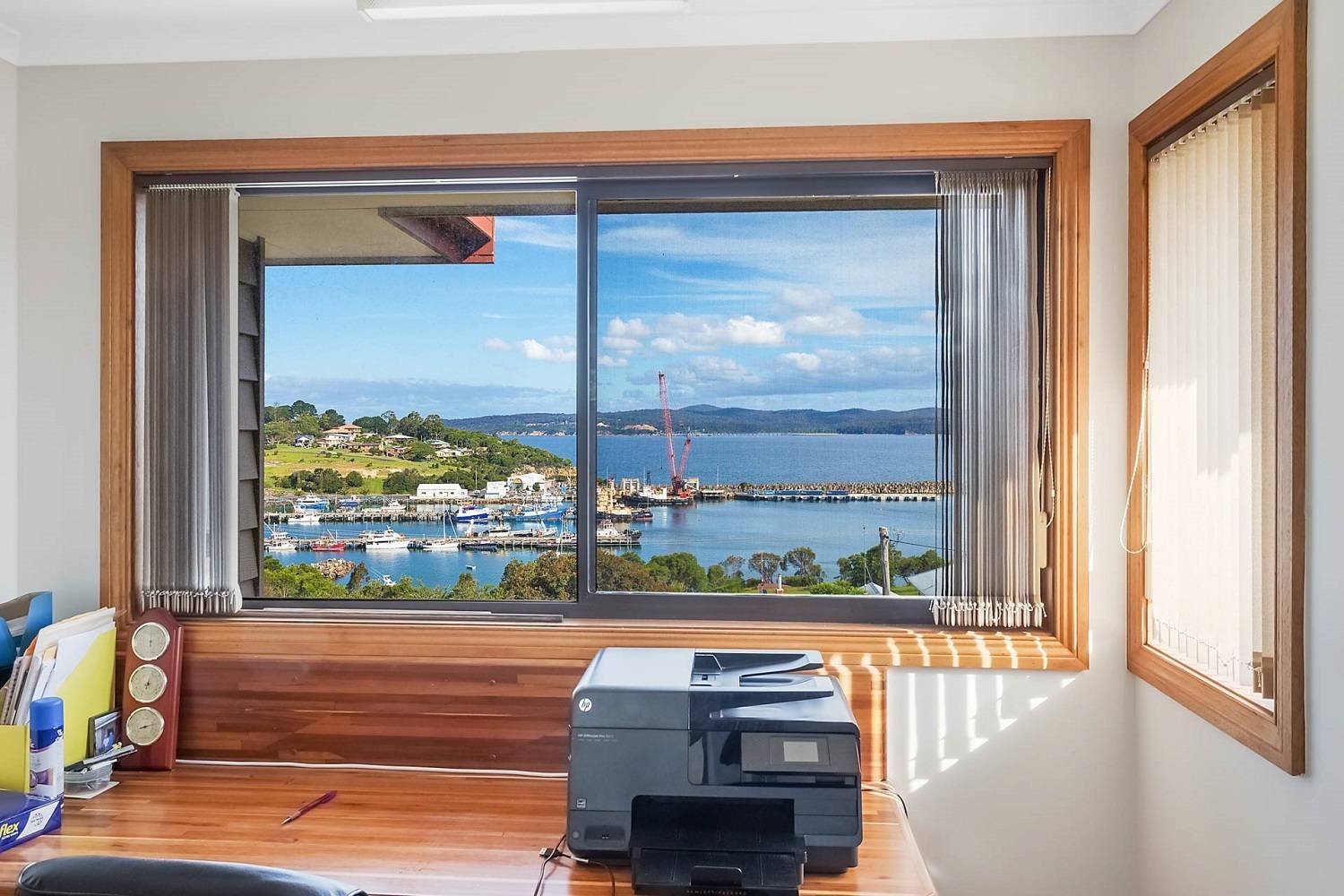 Exquisitely positioned above and offering superlative views of Eden’s famous harbour, fishing fleet and out across Twofold Bay. Outstanding 4 bedroom solid brick & B/V home boasting quality at every turn and comprising lounge flowing through to formal dining, extensive Blackwood cabinetry throughout including shimmering fully equipped kitchen and walk in pantry, sunroom/family (raked cedar lined ceilings) out to private patio area, the master suite includes ensuite/spa, WIR plus separate studio & home office which majestically surveys the wharf precinct, the other bedrooms are generous in size with BIR’s, first rate main bathroom plus guest accommodation comprising bedroom/living, ensuite & kitchenette area. Complete with double L/U garage & rear yard access to a large brick workshop/garage (9.6 x 4.6m2). Brilliantly situated in highly sought after Cocora Street just 300m from the water’s edge and main street. Simply captivating!