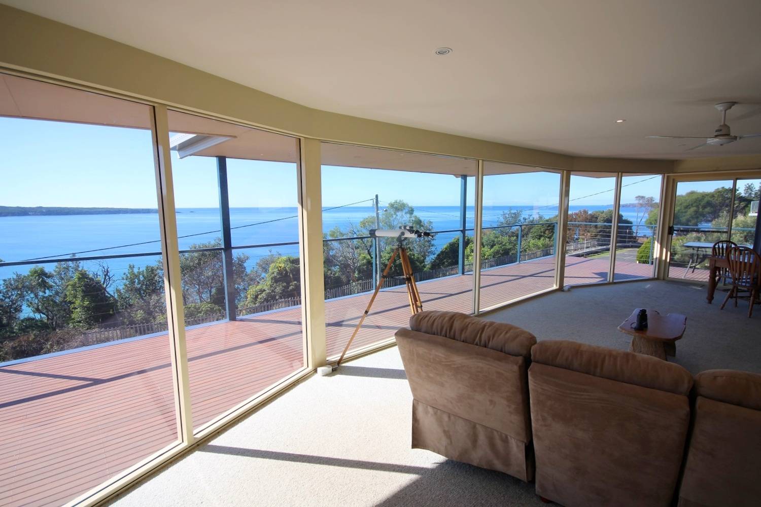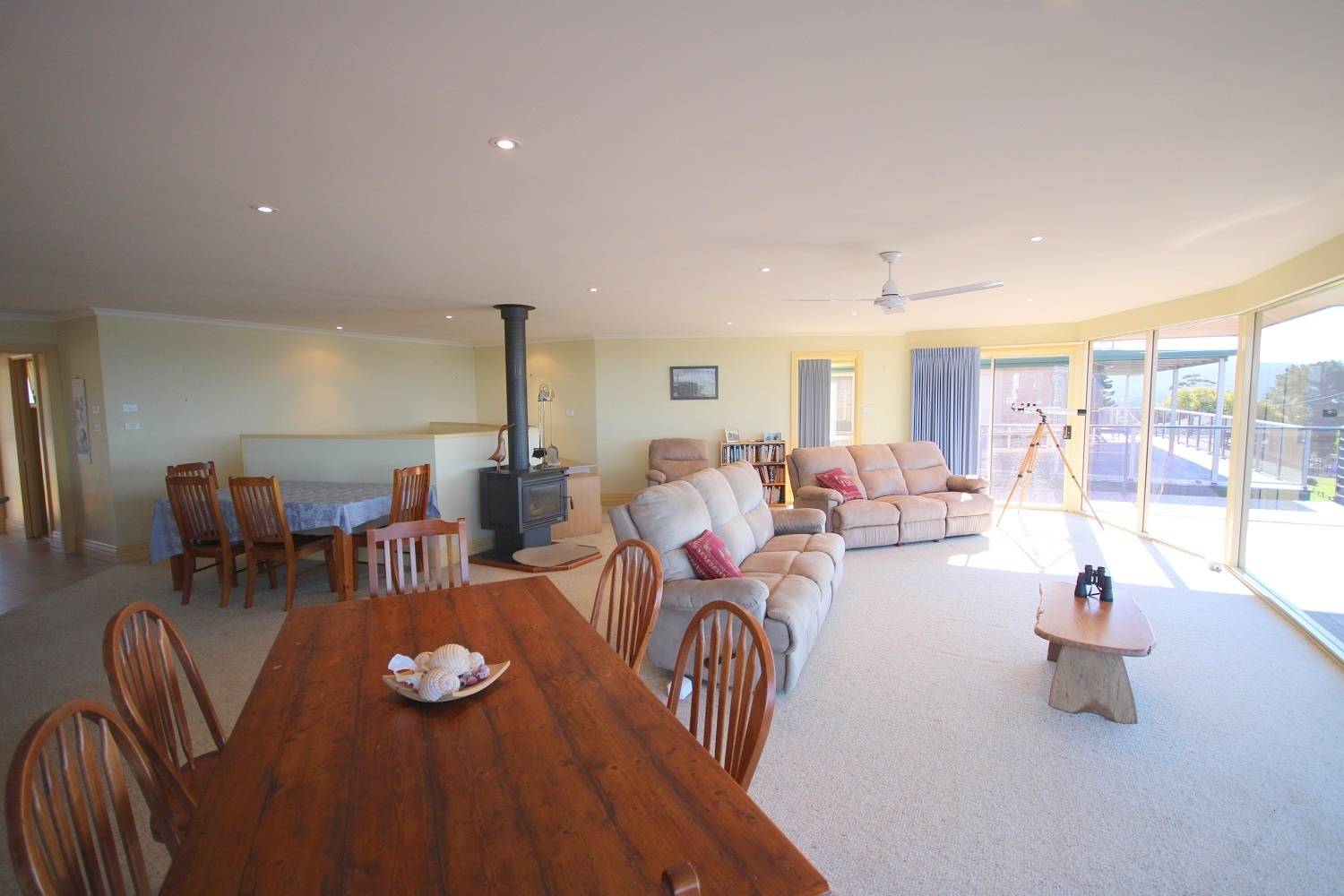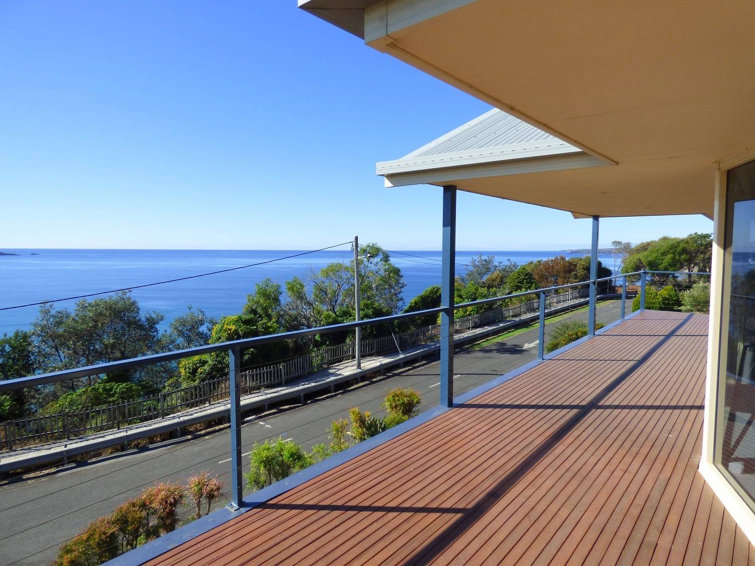 Sublimely positioned on an elevated headland affording uninterrupted water views that include the gentle curve of Aslings Beach, the dazzling blue of Twofold Bay, and beyond to the awe-inspiring expanse of the South Pacific Ocean. Outstanding 4 bedroom home boasting a glorious sun-filled aspect and comprising an enormous main living room with huge picture windows that bring the mesmerising views within touching distance, opening out onto a house-width sundeck to enjoy the sweet sea breezes. Sumptuous fully equipped kitchen with massive walk in pantry/store, rear deck/BBQ area, master suite with spacious WIR and huge en suite including spa, king-sized second bedroom with sitting area, two other large bedrooms, main bathroom, 3rd WC/powder room, big country laundry, massive rear patio area & double remote garage. Fully landscaped and established gardens including a freestanding workshop. Exquisitely situated adjacent to parkland and the amenity of walk/cycle track down to the beach and virtually a level walk (400m) from Eden’s main street. Live the view.