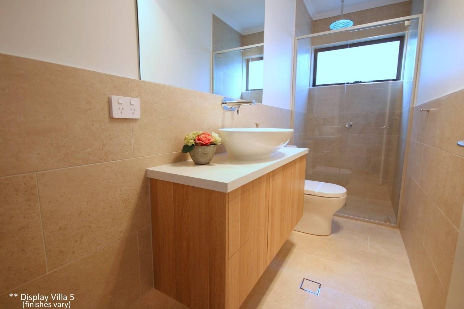 • Villa 6 directly adjoins foreshore reserve & features generous open living with raked ceiling flowing out to tiled under roof alfresco balcony, designer kitchen, S/S appliances, en suite, main bath plus powder room, L/U drive through garage & private fenced yard.