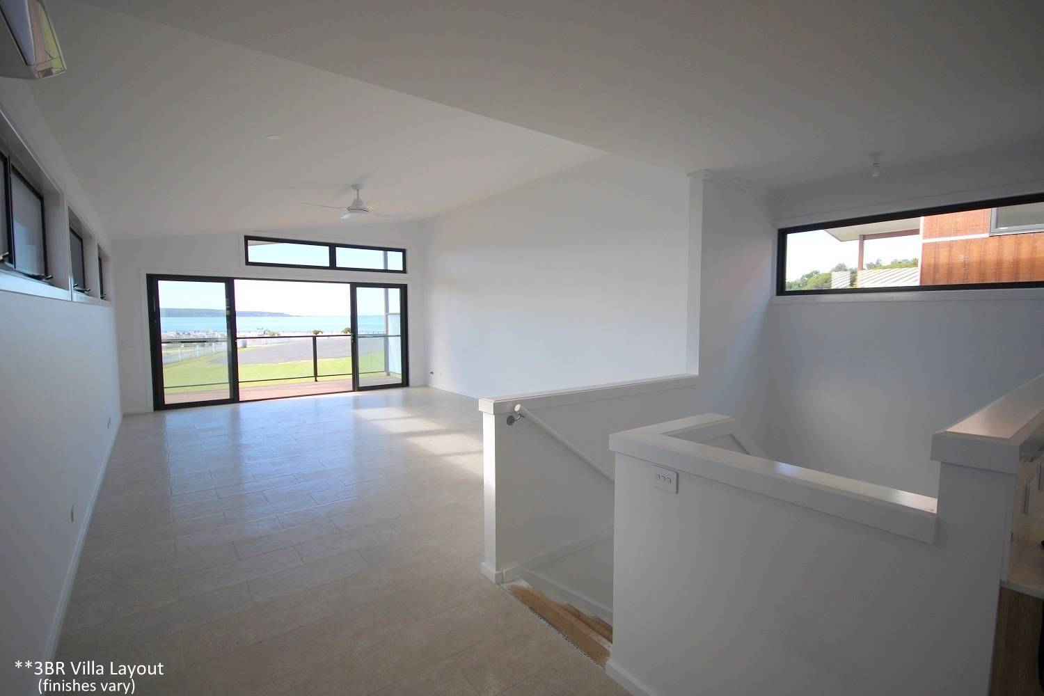 With the whisper of the gentle breaking waves and the visual splendour of the vivid blue of Twofold Bay, the new benchmark in beachside living is now available at the brand new ‘Shore Break’ development. The 3 bedroom home (villa 9) directly adjoins grassed coastal reserve only a long cast from the squeaky white sands and the water’s edge of one of the South Coast’s best, Aslings Beach. Amazing unrestricted water views and high spec eco friendly materials throughout inc double glazing plus 5 star energy rating. Glorious sun filled, super spacious open living (split system) with raked ceilings flowing out to a fully tiled, under roof balcony to totally enjoy the seaside amenity including migrating humpback whales & playful dolphins. The chefs kitchen includes custom soft close joinery, stone bench tops & high spec stainless appliances adjoining second living/sunroom, ample robe & storage space in all 3 brs, 3 luxurious bathrooms (main bathroom, en suite & powder room). Drive thru L/U remote garage, private yard with additional boat/caravan parking, fully landscaped & fenced surrounds complete this outstanding choice for the lifestyle conscious. Take a swim, walk/cycle Lake Curalo & Aslings Beach boardwalk, perhaps golf or bowls at the Country Club or slip down to Eden’s famous harbour and watch the days catch unload or perhaps a refreshment or a bite to eat in the cafes or eateries. Book an inspection today and reserve your front seat.