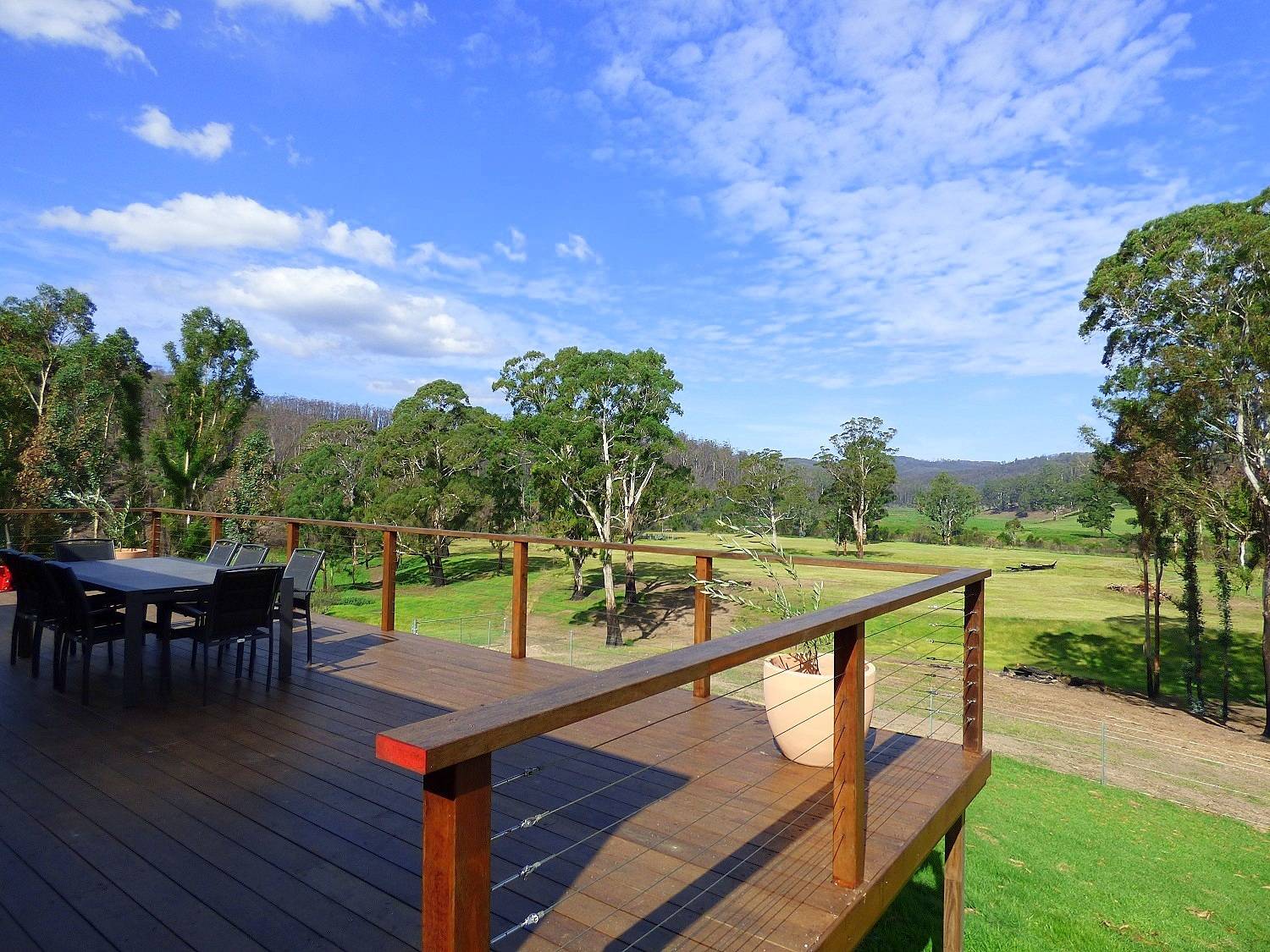 Fantastic opportunity to secure your own rarely available tranquil slice (13.5 acres) of magnificent Kiah tidal estuary glory directly fronting a white sand beach with adjacent crystal clear swimming and fishing holes. Immaculate 3 bedroom home, spacious throughout & elevated to enjoy the majestic rural outlook, featuring open living out to a huge partially covered deck/entertainment area, raked ceilings, polished hardwood floors, dining, fully appointed country kitchen & walk-in pantry adjoining rear covered patio, ensuite to master (direct deck access), BIRs, spacious main bathroom and complete with a 3kw back to grid Solar System. The magnificent surrounds are divided into 3 paddocks (fertile alluvial soil) and includes extensive new fencing, 9m x 6m Colorbond garage/workshop, double carport, 2 dams, cattle yards (incl. crush & ramp), chook yards & only 3 minutes drive to general store & 12 minutes to Eden. Live the dream.