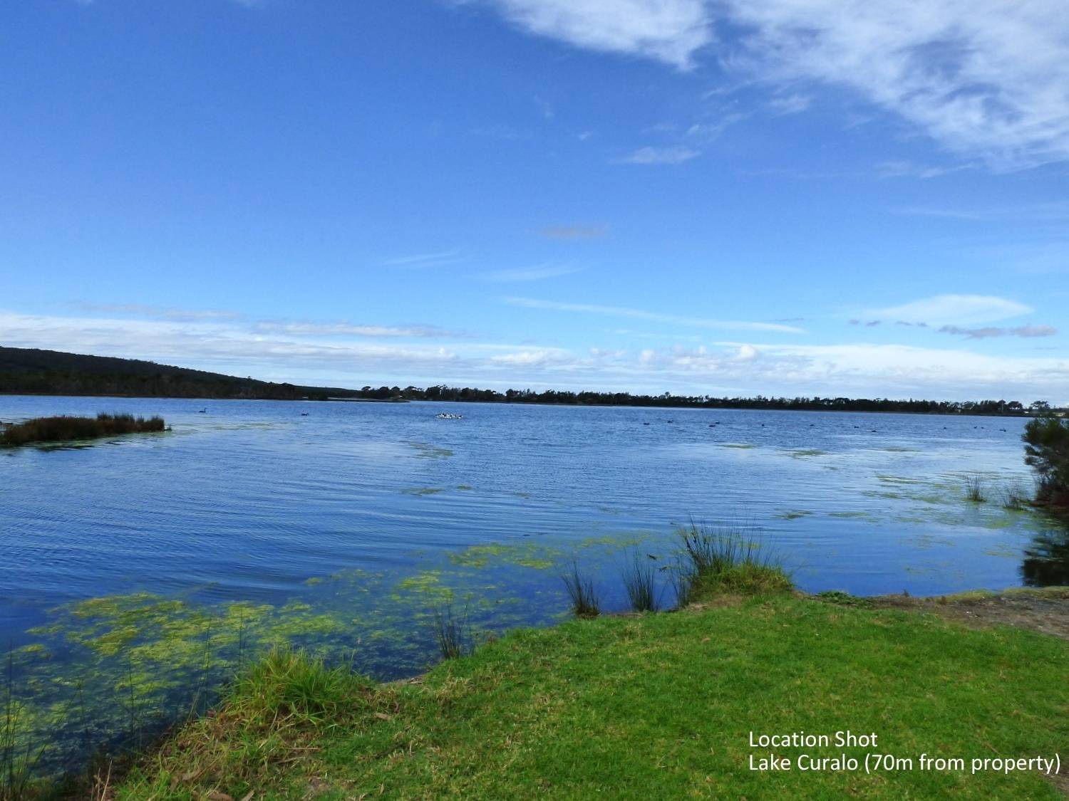 Value packed 3 bedroom home directly adjoining reserve to the rear and a mere 70m from the waters’ edge of Lake Curalo estuary and boardwalk which meanders its way round to the white bleached sands of famous Aslings Beach. Comprising super sized, fully tiled living & dining areas out to a house length under roofed decked verandah to enjoy alfresco living. Spacious well equipped kitchen (loads of cupboard space) complete with breakfast bar, king sized master bedroom featuring walk in robe and ensuite, generous 2nd and 3rd bedrooms with BIRs. Excellent bathroom, (shower, vanity, bath plus sep WC) and laundry (plenty storage). The low maintenance surrounds are fully established and include a good sized carport, shed/workshop and of course a private gate to access the exquisite foreshore reserve at the rear. A win in every way.