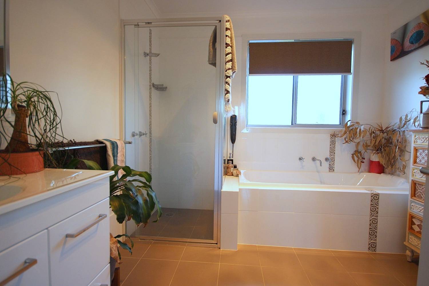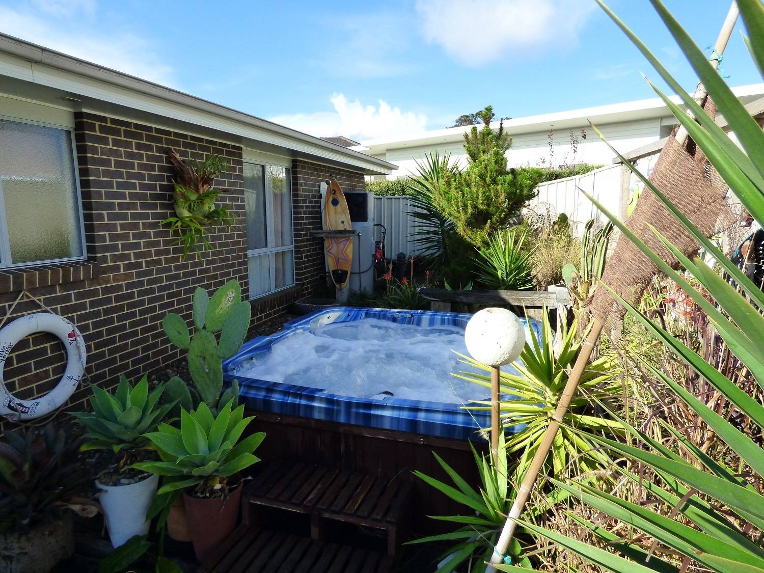 Fantastic contemporary 3BR + study home nestled in a quiet sheltered court location just a near level walk (500m) from the gentle break and soft white sands of Aslings Beach. Immaculate inside and out, the home boasts a marvelous sunny aspect and features open living & dining out to an under roof alfresco/living area, fully appointed kitchen with breakfast bar, master complete with ensuite & WIR, BIRs (brs 2 & 3) lux main bathroom including bath, shower & vanity, complete with L/U garage (internal access) & utility area. The near level block is fully established, fenced and landscaped including an impressive array of plantings, beach shower and even a private courtyard area with a 5 person spa to enjoy. Kick back, relax and enjoy this total turn key experience.