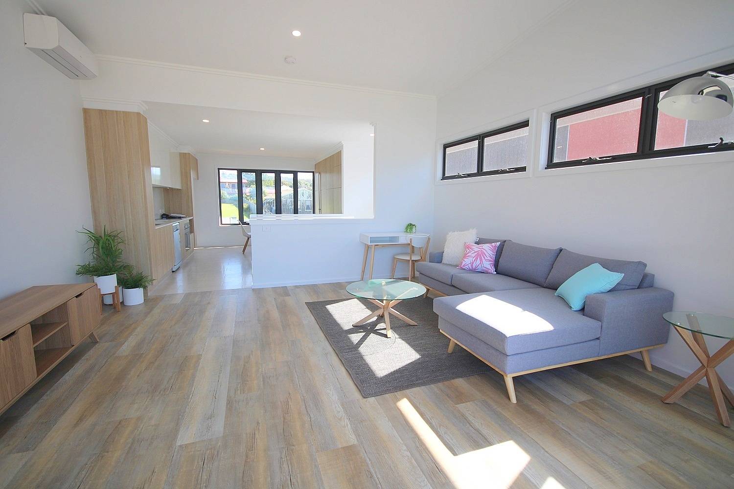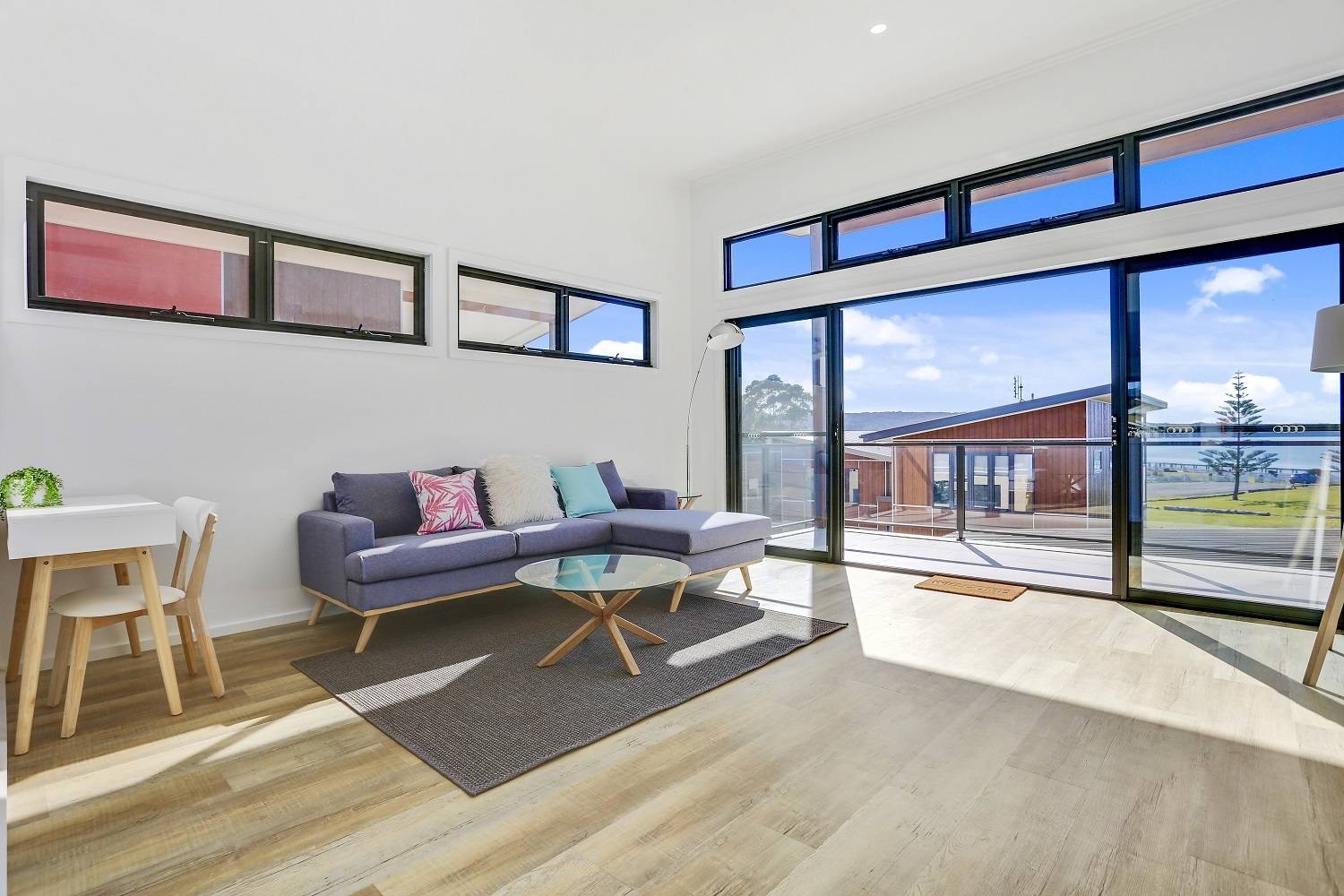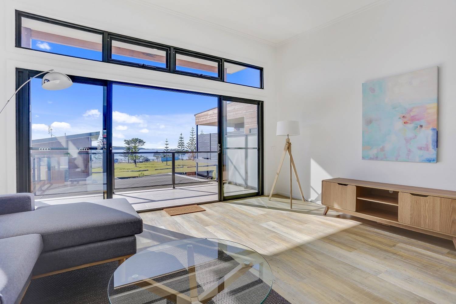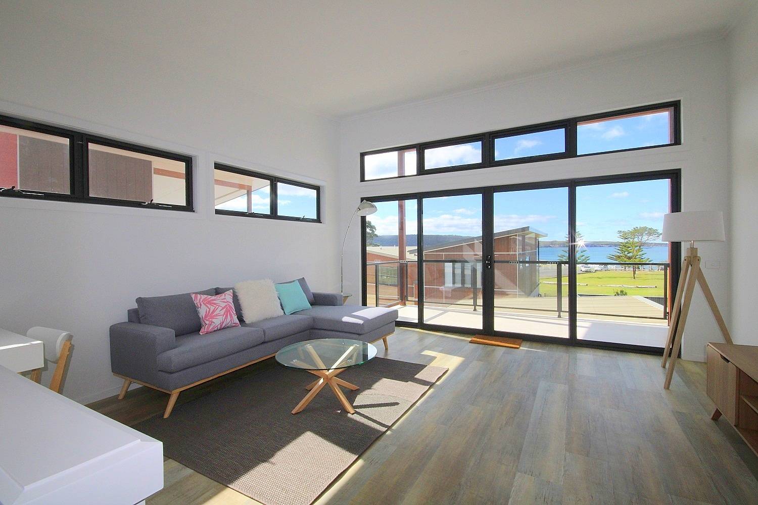 Sublimely positioned adjoining parkland giving direct access (150m) from the blue allure and bleached white sands of Aslings Beach. Villa 5 is available for immediate personalised inspections and is an architecturally designed 2 br home in Eden’s brand new benchmark beachside living lifestyle experience ‘The Shore Break’. Boasting glorious water views, sundrenched North East aspect and high tech eco friendly materials including double glazing and 5 star energy rating. Features include large open plan living with raked ceilings out to under roof outdoor alfresco balcony perfect for beachside entertaining or spotting whales, designer kitchen which includes bespoke joinery, stone bench tops & high spec appliances, generous bedrooms (extensive robe storage), gleaming high end designer bathroom (main bathroom, en suite & powder room) and a generous double remote garage. The fully fenced and landscaped surrounds complete with private yard, provide the total low maintenance lifestyle experience, minutes to all amenities and shops. Take a dip, throw in a line, wander along the boardwalk (Aslings Beach & Lake Curalo) and make everyday a holiday. Fantastic value, don’t dream, live.