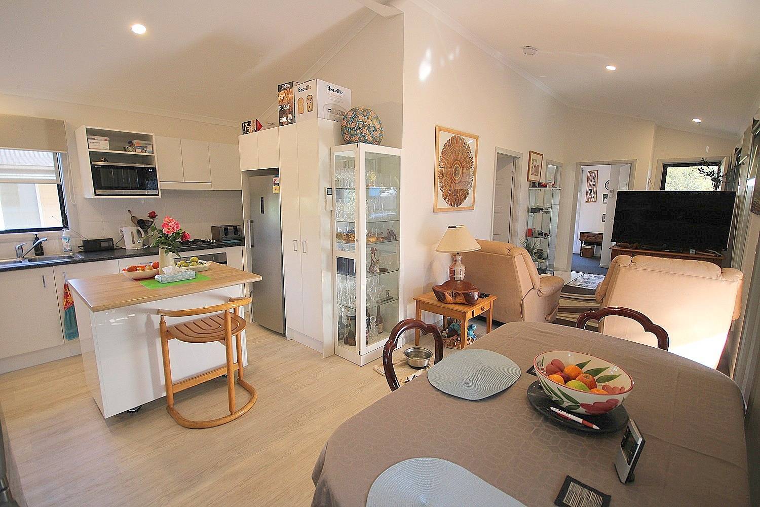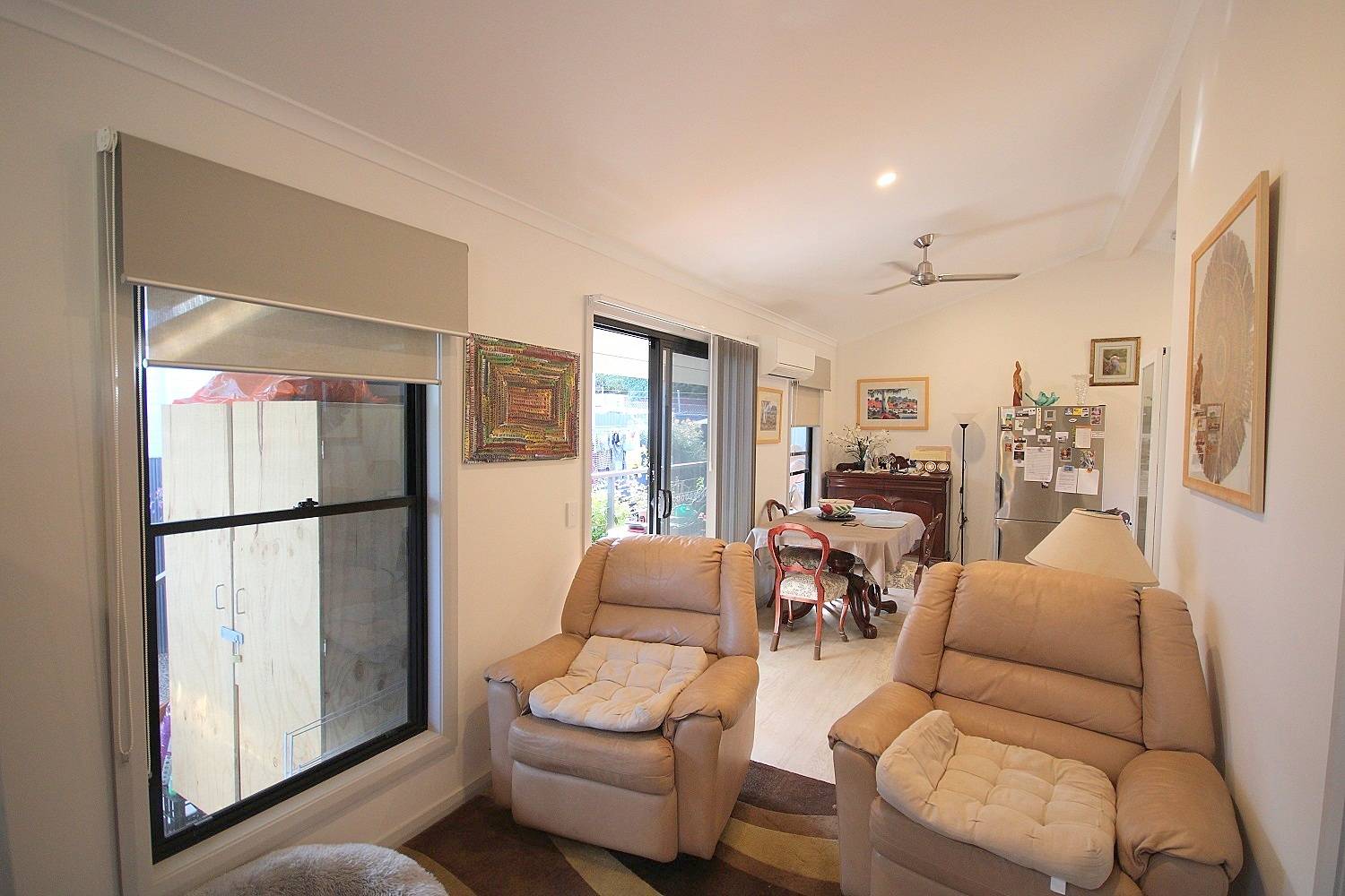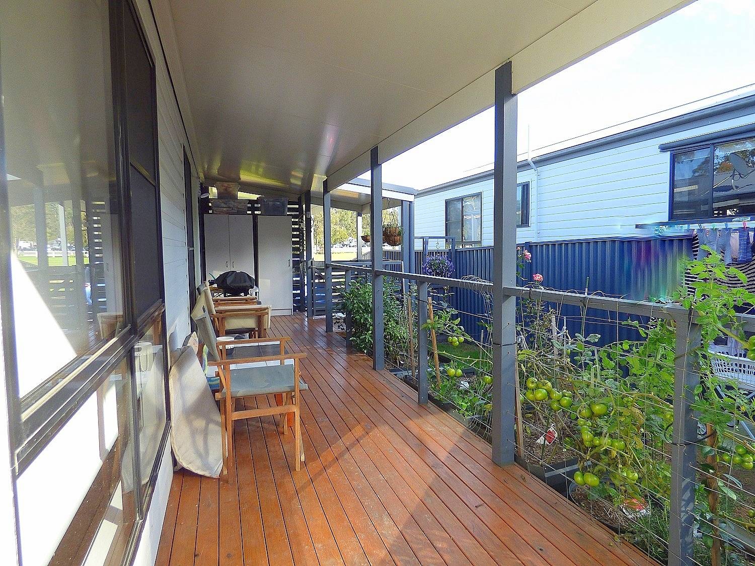 As new 3 bedroom home nestled in the sheltered park-like setting of Gateway Holiday Park Eden situated only 200m from Lake Curalo boardwalk which winds its way around to the white sands of award winning Aslings Beach. Features include open living/dining (raked ceilings) out to a covered deck, gleaming fully equipped kitchen including the flexibility of island bench on castors, 2 glorious tiled, floor to ceiling bathrooms including en suite to master, mirrored BIR’s and European laundry/storage. Fully established surrounds which include fenced rear yard, garden /storage shed and generous carport suitable for boat/caravan etc. Site fees $125 per week. Just kick back, relax and enjoy.
