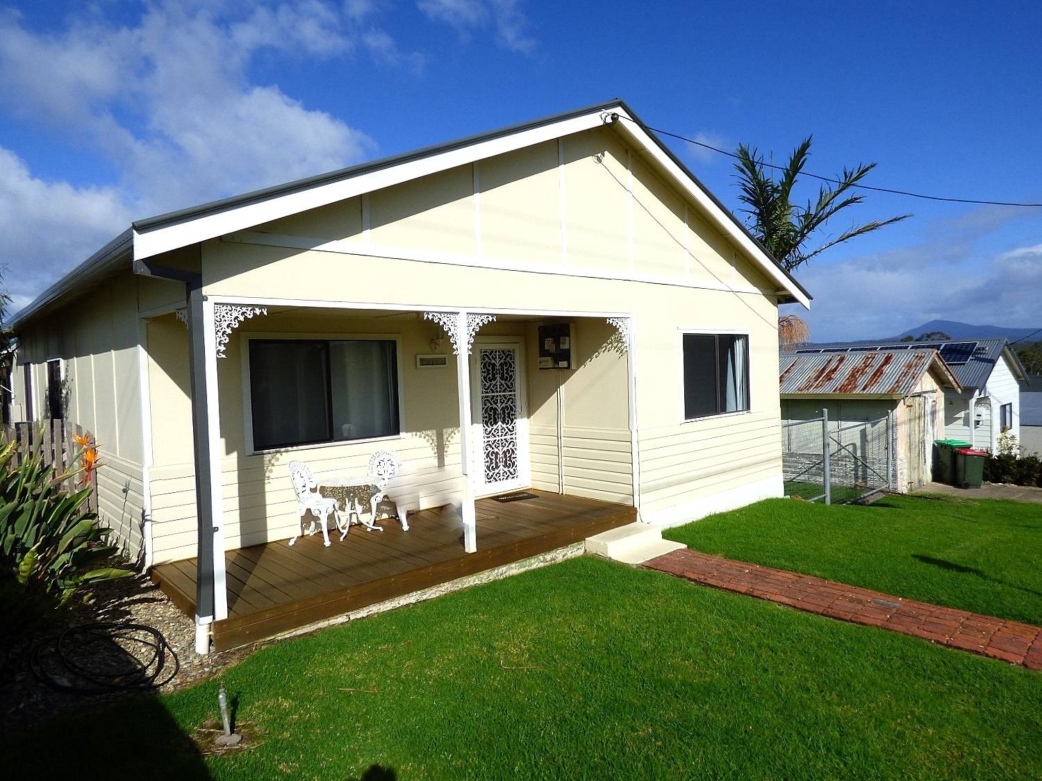 With character and charm of yesteryear in spades, vast blue water views across Twofold Bay, beyond to the hinterland and majestic Mt Imlay and a rolls royce location a heart beat from Eden’s main street. Classic 3 bedroom home in excellent order throughout, packed with period features and comprising oversized bedrooms, lounge (s/c heating & open fire), generous dining out to fantastic covered deck to enjoy the views, modern timber bench topped kitchen, sunroom and retro bathroom. The fully fenced and established yard includes freestanding l/u garage and beaut gazebo/bbq area. Charm your socks off.