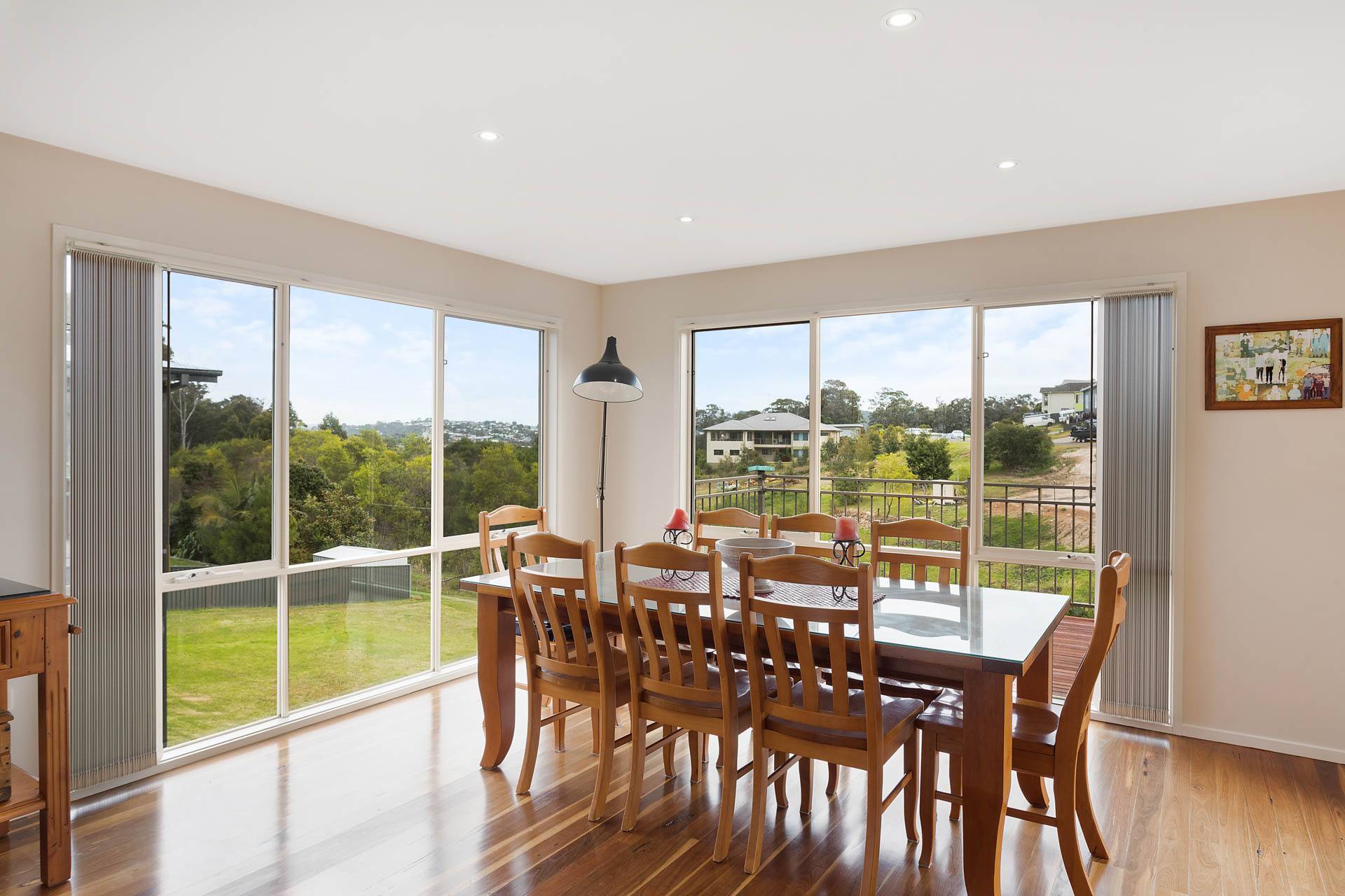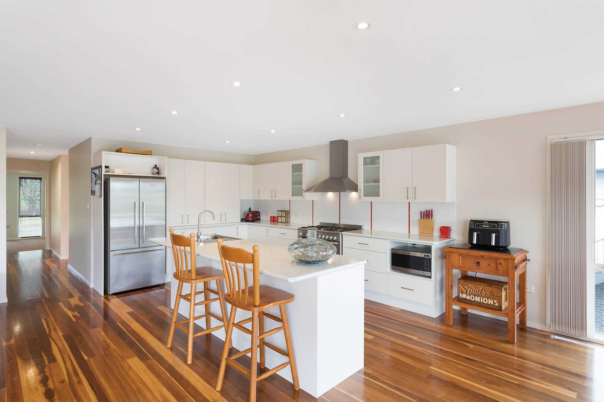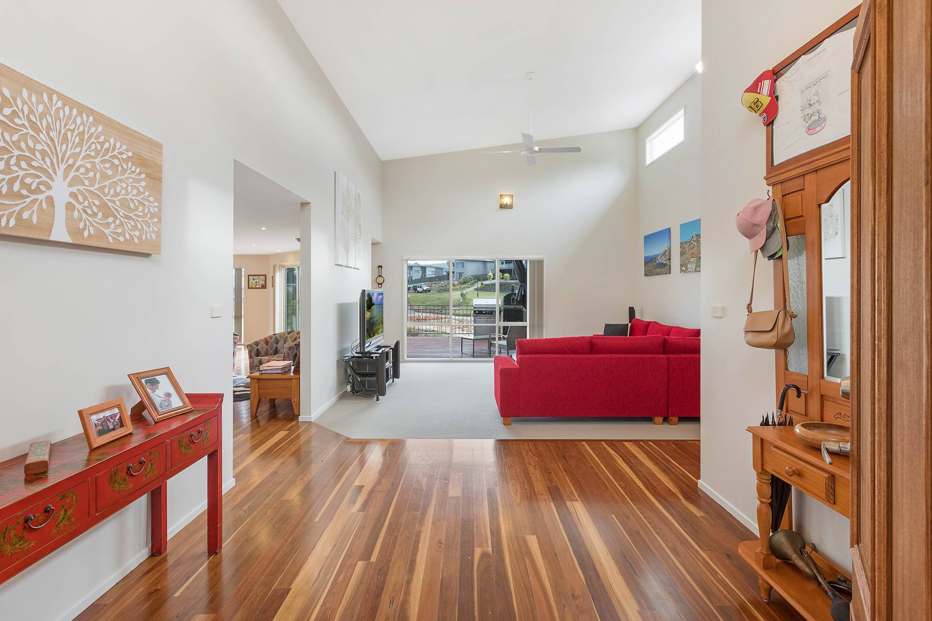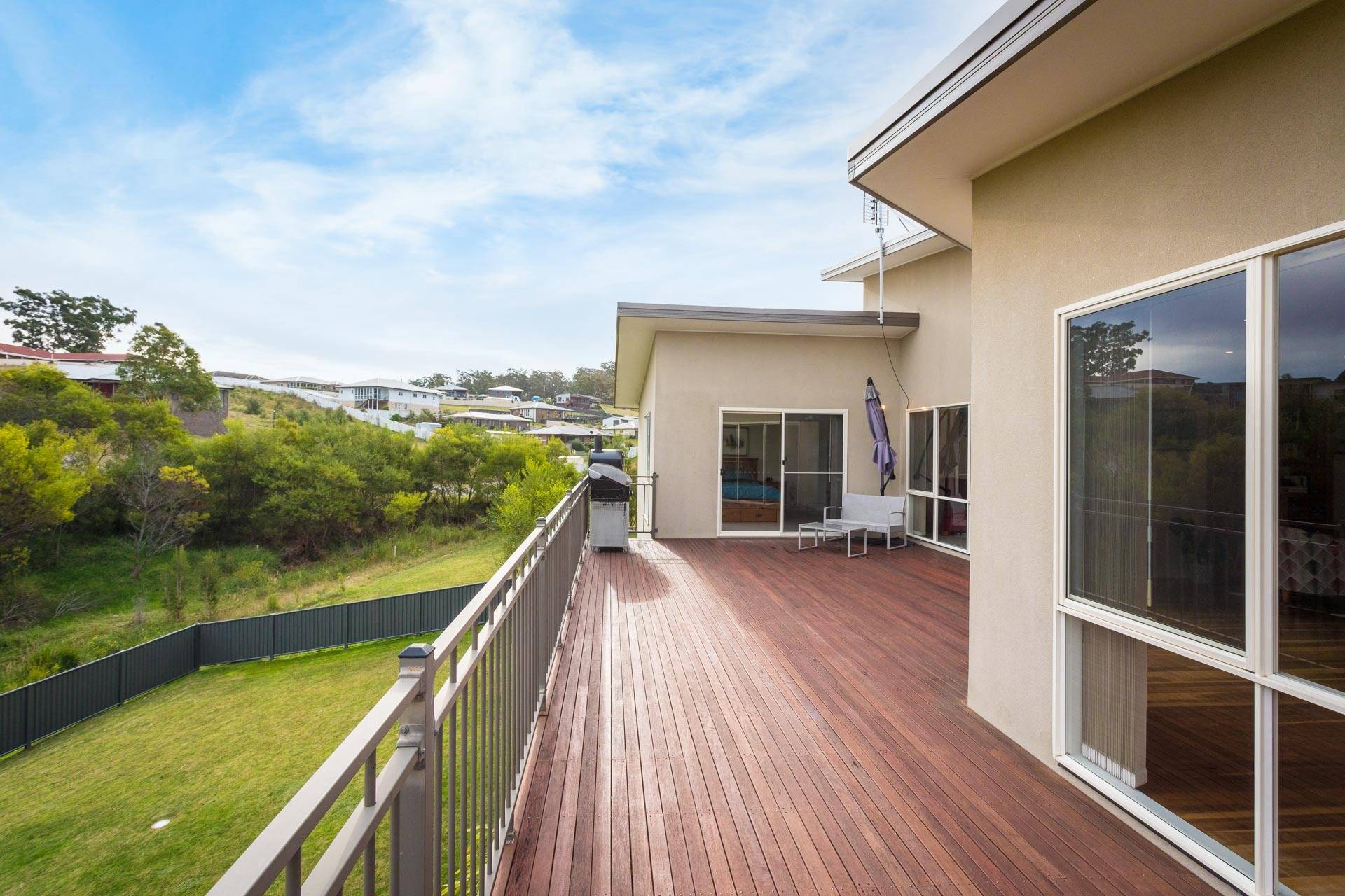 Fabulous three bedroom plus study (4th BR) designer home, set on a whopping 1067m2 block, adjoining foreshore reserve to the rear giving direct foot access to Lake Curalo Estuary + boardwalk/cycle track which winds round to the powder white sands and gentle break of Aslings Beach and Ben Boyd National Park. Upon entry, the light filled vaulted ceilings and the sublime timber floors make an immediate impact, the formal lounge is the first of the 2 impressive living areas (s/c heater), through to the cavernous family and dining with a superb, fully equipped (inc 6 burner s.s gas range) kitchen at the fulcrum. Both living spaces are complimented with a large adjacent outdoor deck/alfresco/bbq area. King sized master br with generous WIR & fully tiled ensuite (his & hers vanities) oversized shower and direct deck access, good sized brs 2 & 3 with WIR & BIRs respectively and large study/office 4th br, main bathroom (vanity, shower bath) & sep wc, laundry and internal access double garage. In addition, there is a separately accessed, single garage/workshop adjoining a massive under house storage space. The surrounds are immaculate and fully established Extraordinary by design.