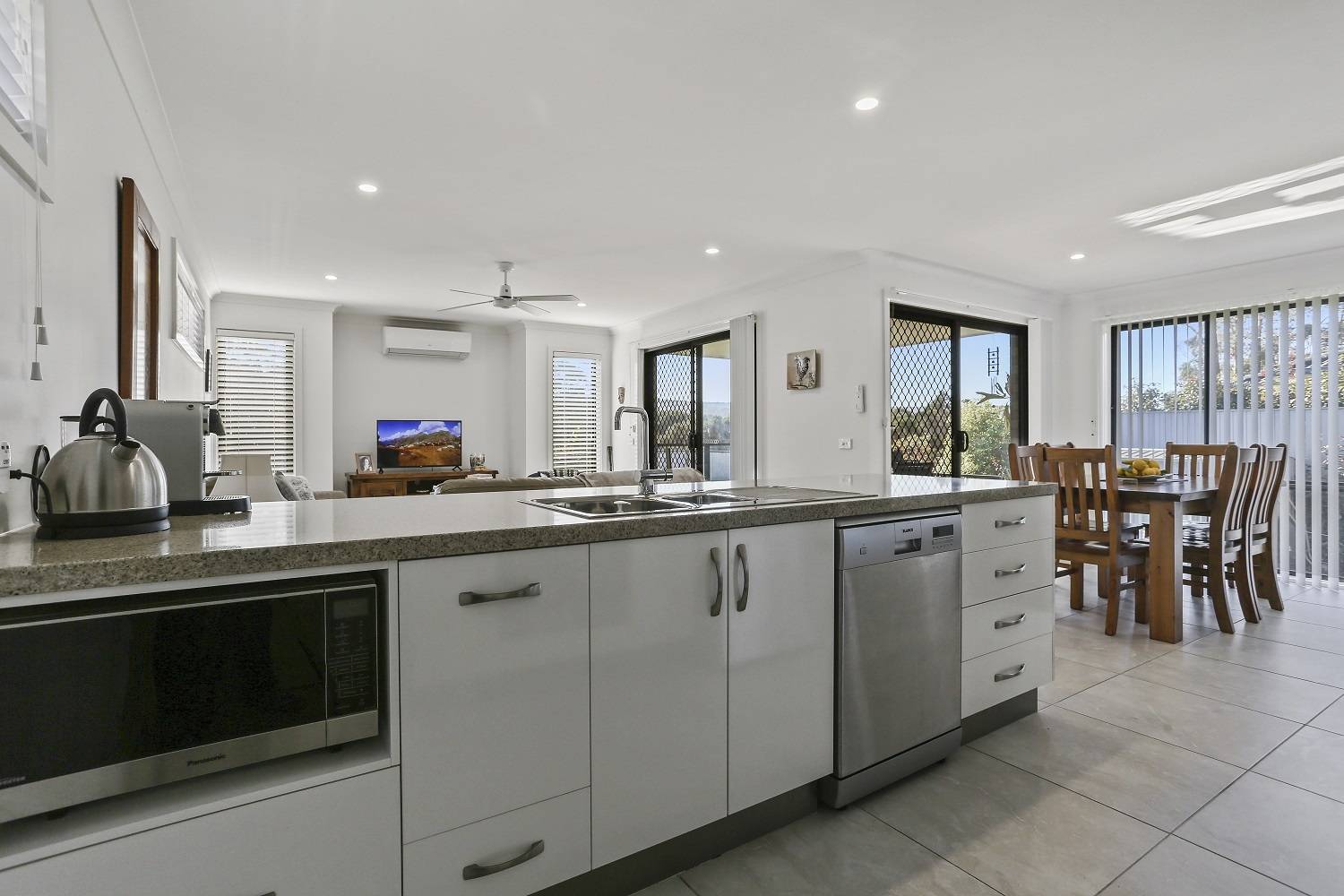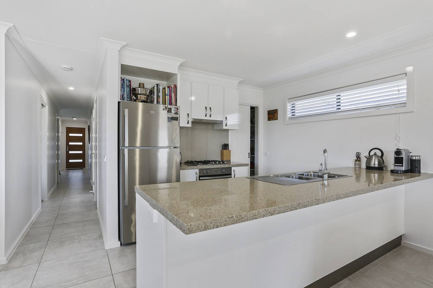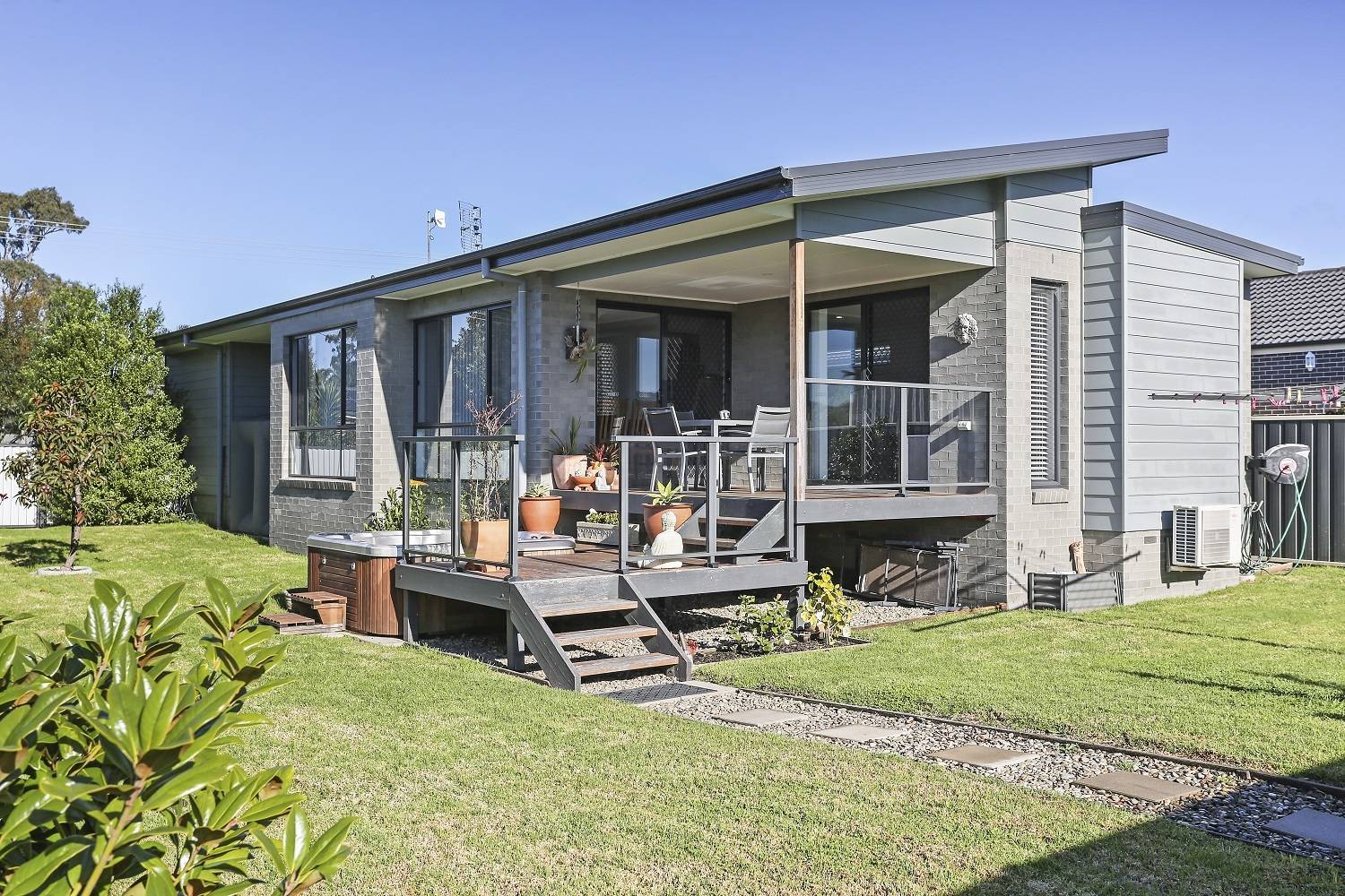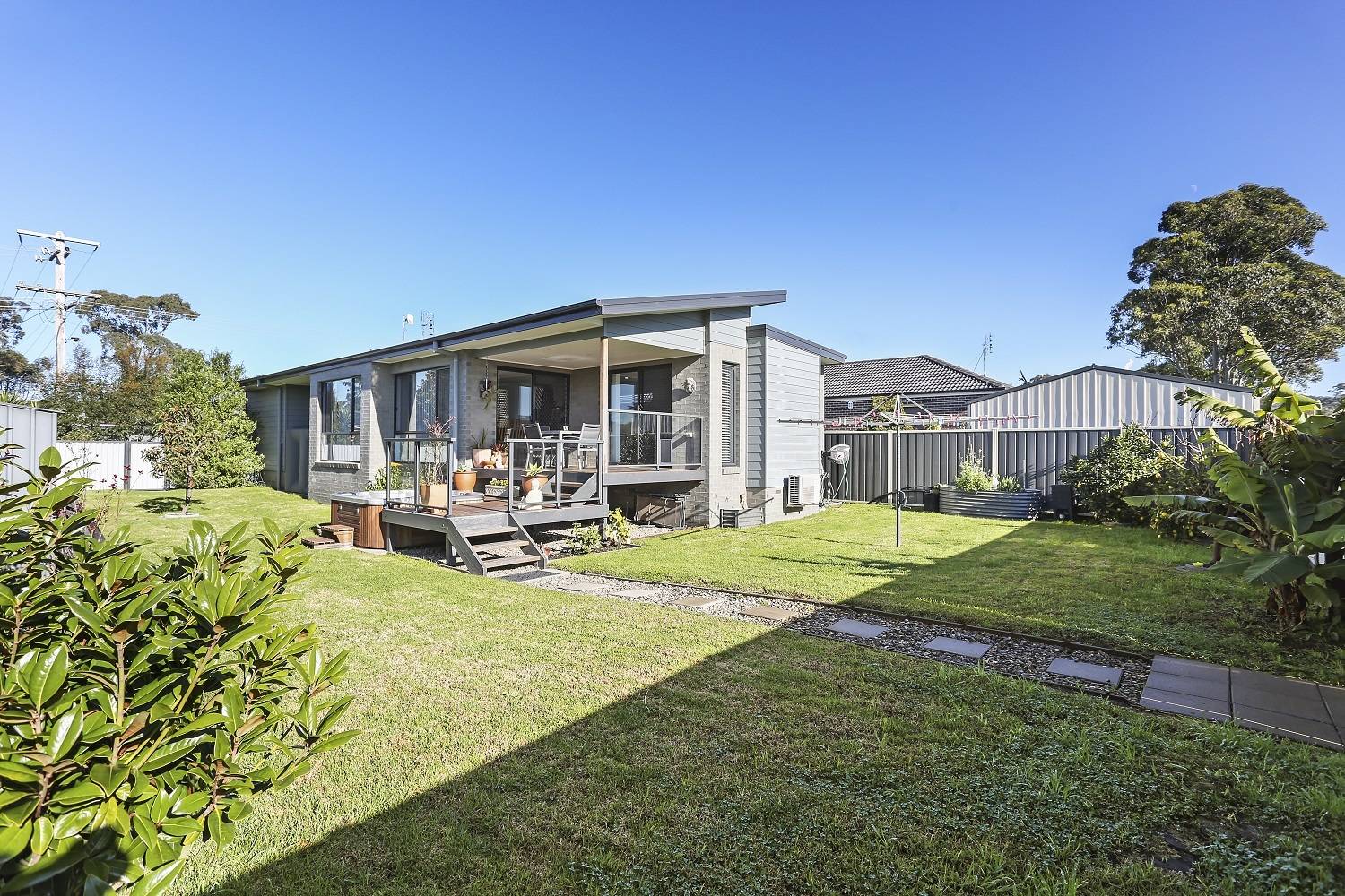 Directly adjoining reserve to the rear and only 80 steps from the protected waters of the Lake Curalo Estuary system and boardwalk which winds round to award winning Aslings Beach, with not a penny to spend, immaculate, 2 bedroom, 4 ½ year old home that boasts a glorious light-filled sunny aspect. Features include tiled, open living (split system) and adjacent dining both with direct under roof deck access – the hot tub just a heartbeat away. Magic, fully equipped Caesar stone bench topped kitchen complete with s/s appliances, walk in pantry and breakfast bar, main bedroom (WIR), second bedroom (BIR), fully tiled bathroom, Caesar stone vanity, shower & sep wc. Easy access single, extra deep garage plus laundry area complete the internals. The fully established yard is private and fully fenced with of course, your own gate to the foreshore. No time like the present.