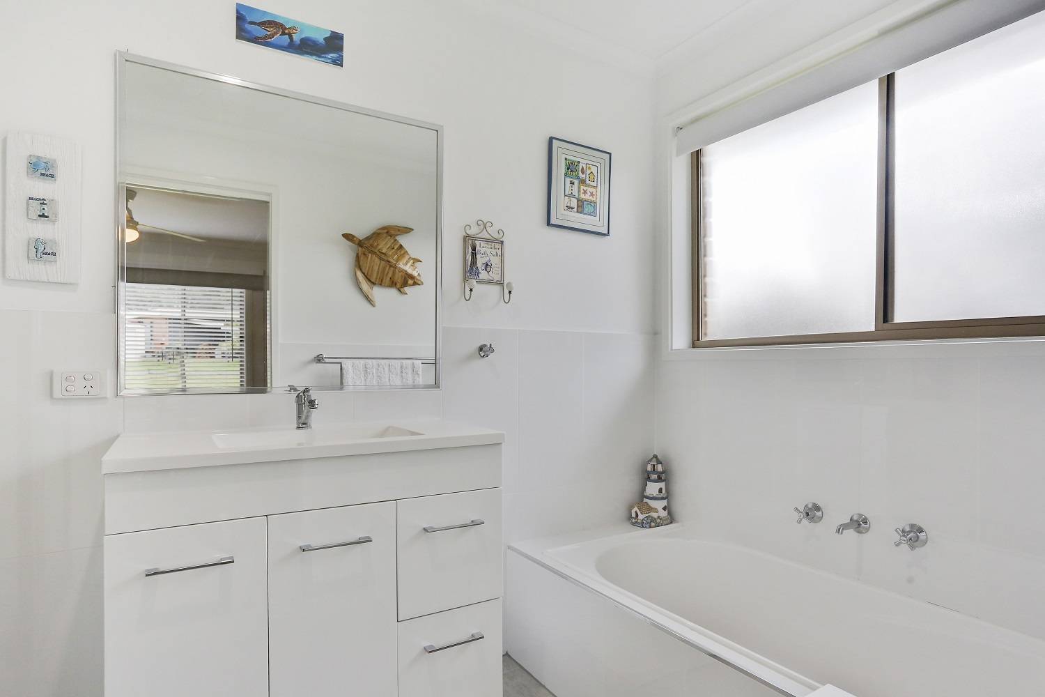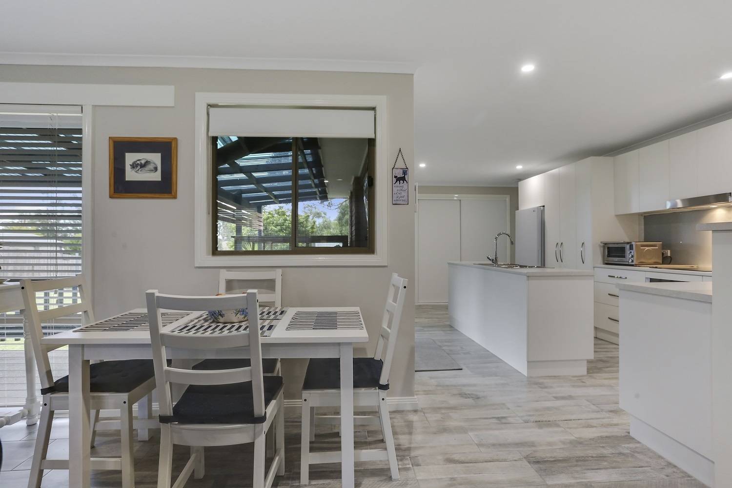 Outstanding 3 bedroom brick veneer and tiled roofed home positioned on a near level 997m2 allotment located in the ever popular Wolumla Village (general store, pub, community hall etc) which is just a leisurely 10 minute drive from Merimbula (beaches and shopping) or 15 minutes to Bega hospital. Immaculate throughout, the home features a generous fully tiled living/dining (S/C heater & split system) heavenly brand new soft close gourmet kitchen complete S/S appliances plus twin pantries, mirrored robes in bedrooms, master accessing a sparkling fully tiled 2 way bathroom (shower, bath, vanity) plus sep WC & European laundry and storage. Private rear patio with laser light verandah, jumbo sized single garage, low maintenance established surrounds with rear yard access and freestanding 3m x 4m workshop. Total turn key experience.