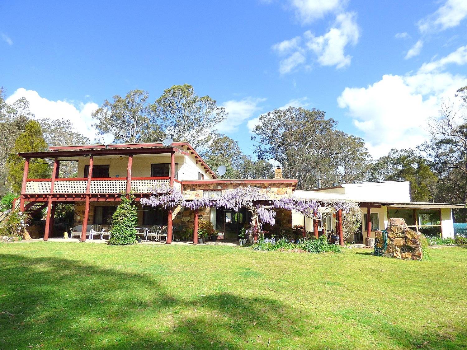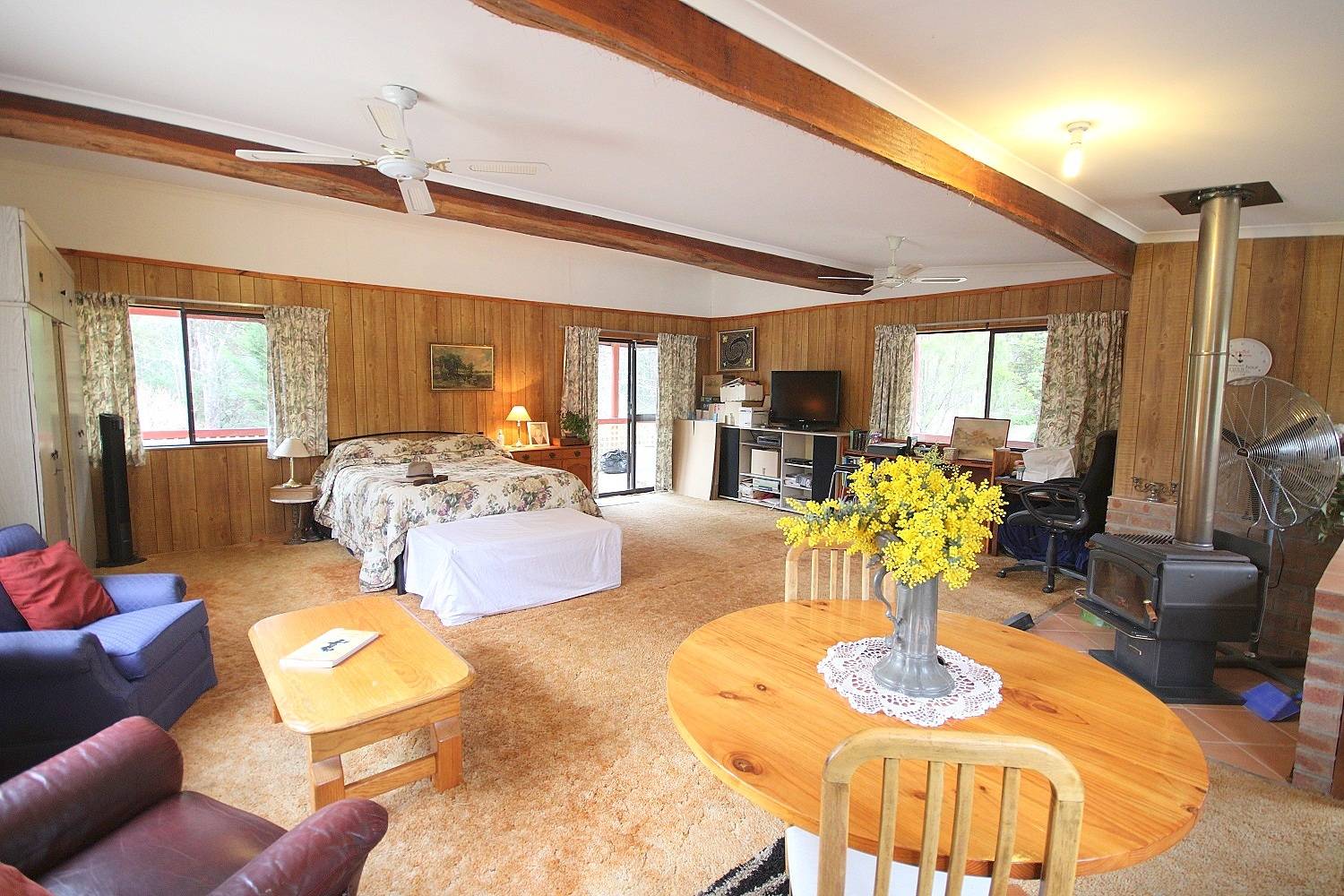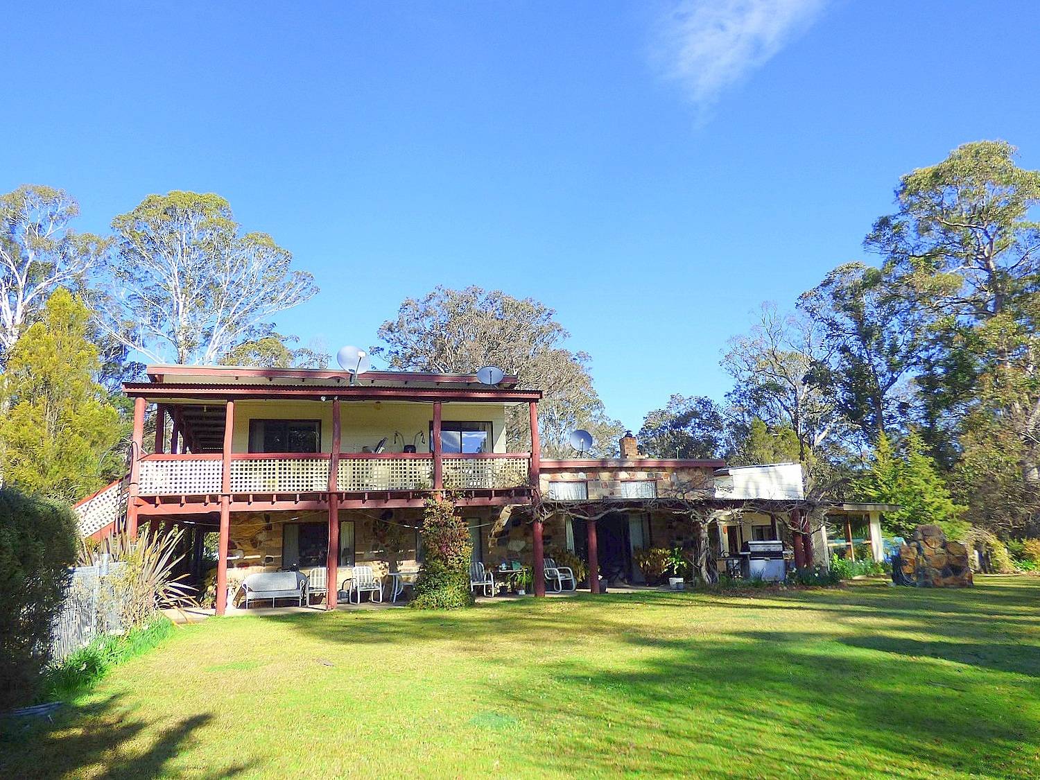At first sight it is immediately apparent that the North facing, bespoke residence, built with a combination of stone and modern materials is totally at one with its beautiful 18 acre natural setting. The substantial home comprises 4 bedrooms (including loft/4th br), a wonderful main living with stone fireplace (s/c heater) & raked ceilings out to patio/verandah, huge upstairs second living area with kitchenette and under roof verandah to enjoy the amazing amenity. Kitchen/dining including 5 burner gas stove, fuel range ideal for cosy winters, timber bench tops and pantry, the adjoining dining leads through to a fantastic conservatory/sunroom, bringing the glorious surrounds indoors, 2 bathrooms, 3 wc’s and large country laundry. Other improvements include a double Colorbond garage/plus skillion workshop/store area, salt water chlorinated in-ground pool, enclosed 28 tree mixed orchard and vegie garden, plenty of tank water plus a 20m easement to the magnificent Myrtle Creek where a crystal clear water hole awaits (pump & line back to house). Easy gentle grade access, mains & solar power and reduced council rates due to a Voluntary Conservation Agreement. Just a 5 min drive to Wyndham Village (general store, school, community hall etc) & 30 mins to the beach. Just Right!
