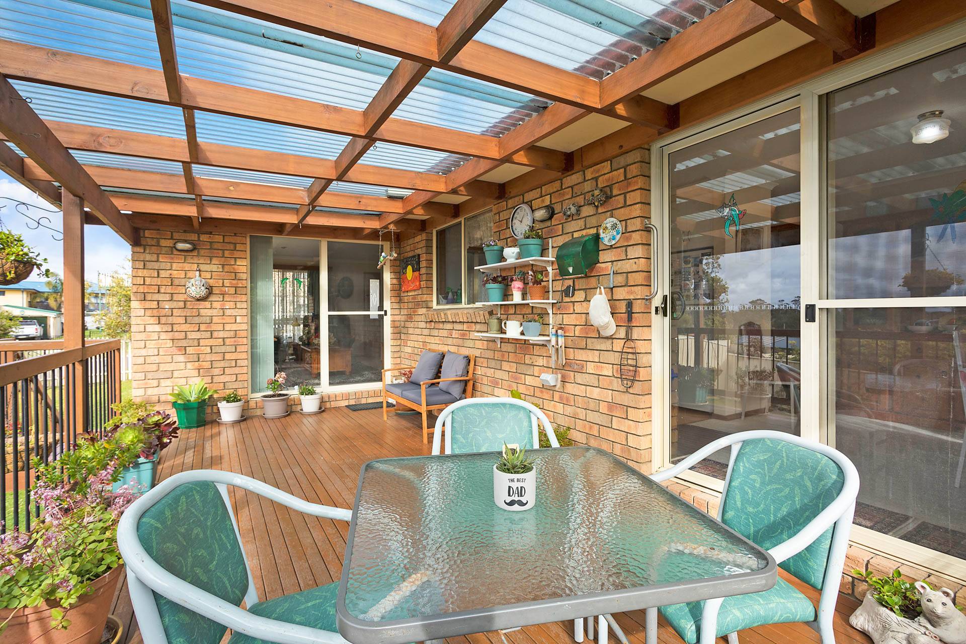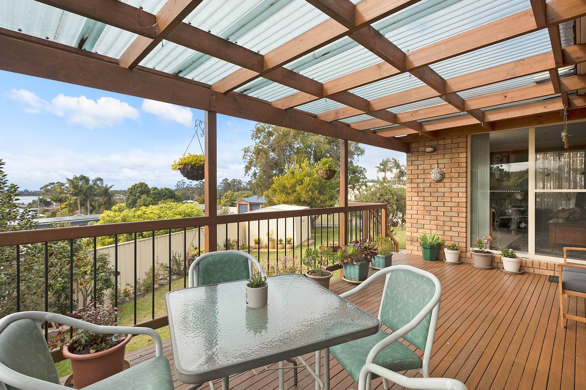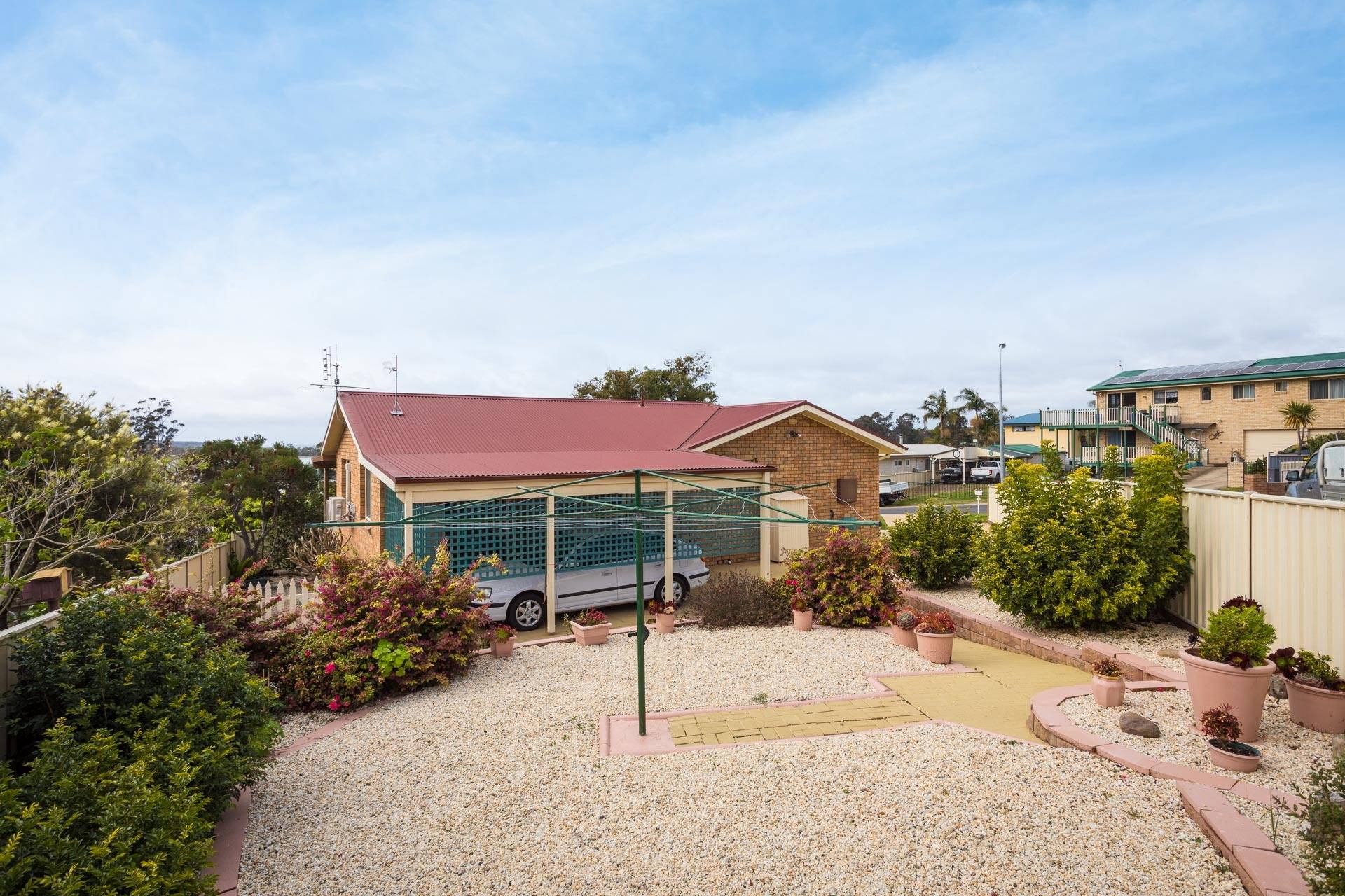 Cracking 2 bedroom brick veneer and Colorbond roofed home set in a quiet cul-de-sac with an excellent sheltered North East aspect and sparkling water views across Lake Curalo to Twofold Bay. Features include lounge with split system, well equipped kitchen adjoining dining (split system) out to generous laser lite covered indoor/outdoor living area, oversized bedrooms (including huge master), mirrored BIRs, bathroom including shower, bath & vanity, separate WC and direct house access from carport. Beaut gently sloping fully landscaped surrounds that offer easy access to front and rear yards. Ray of sunshine!