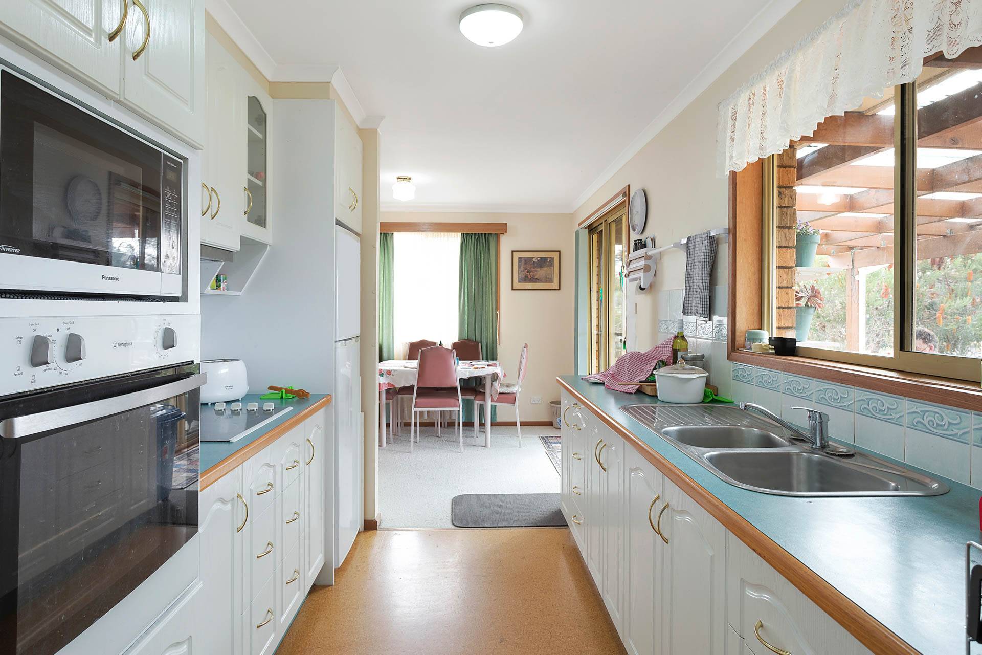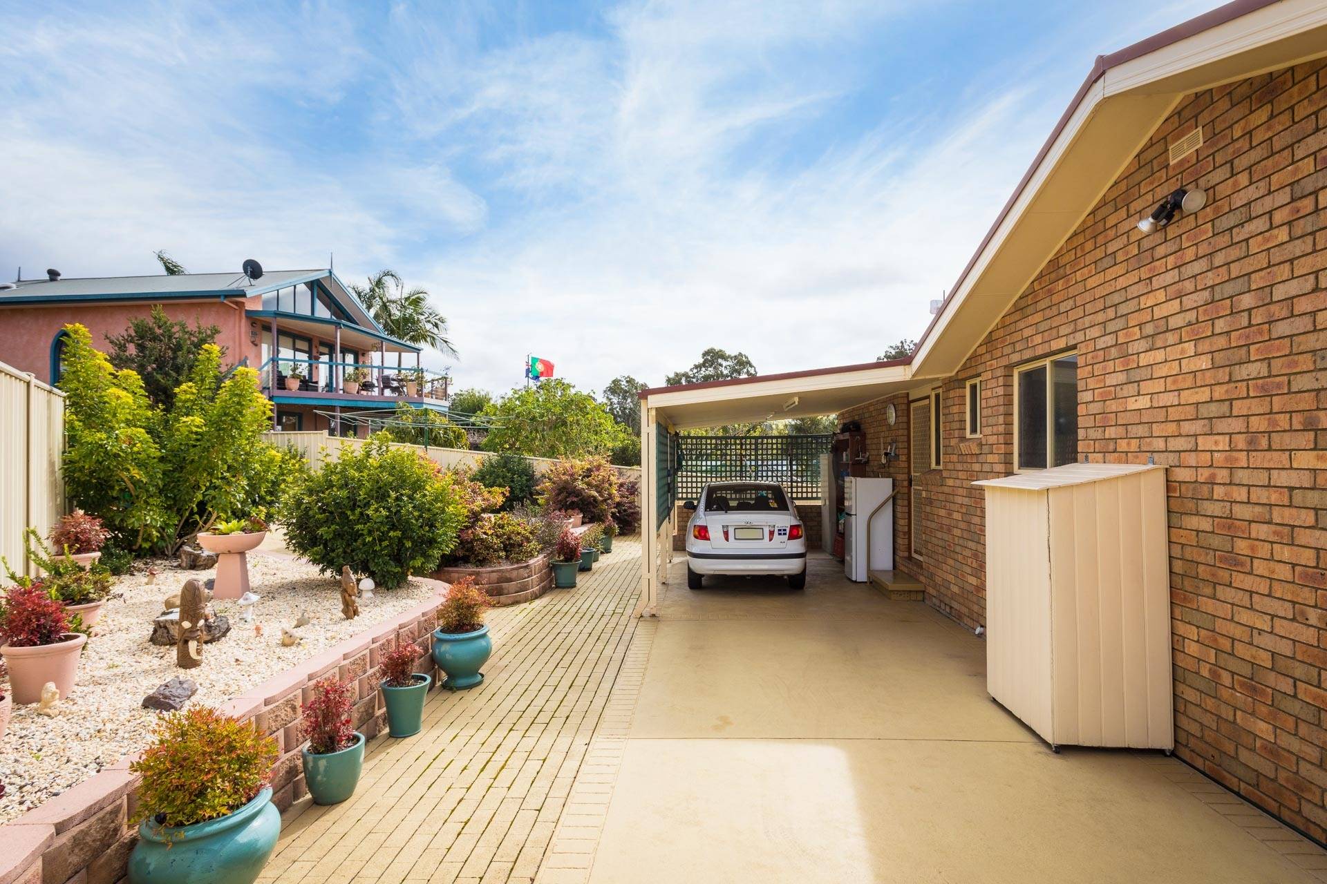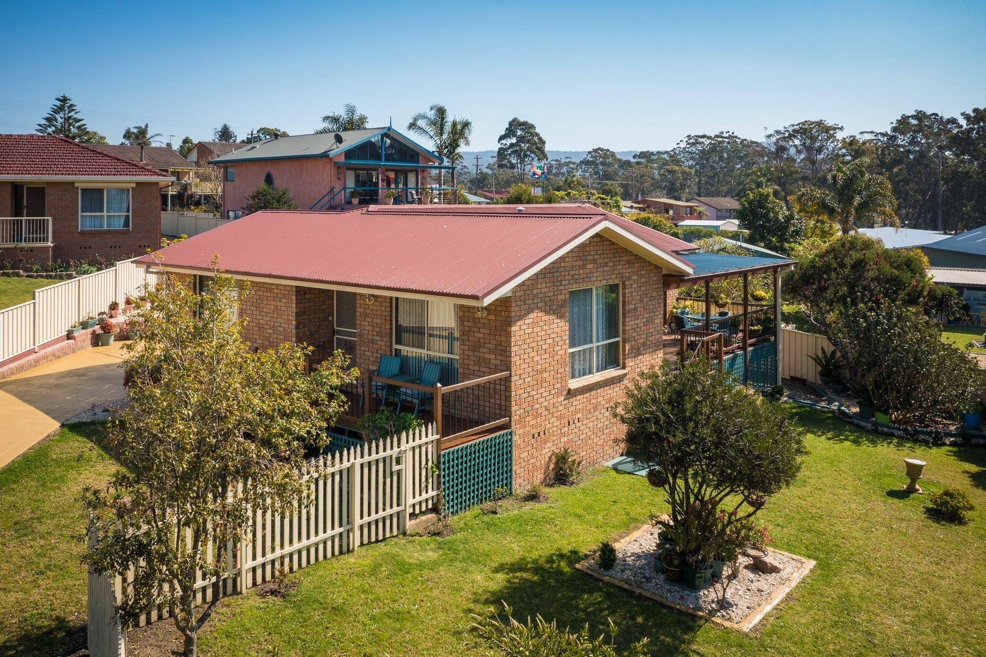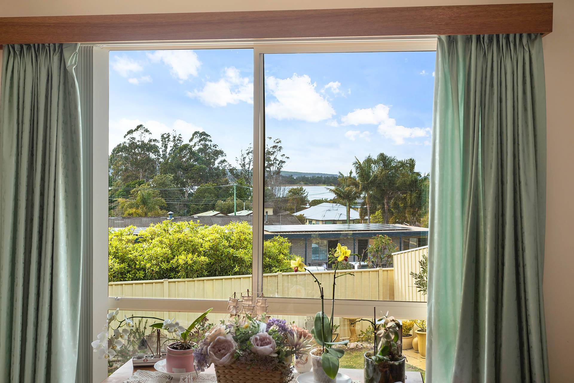 Cracking 2 bedroom brick veneer and Colorbond roofed home set in a quiet cul-de-sac with an excellent sheltered North East aspect and sparkling water views across Lake Curalo to Twofold Bay. Features include lounge with split system, well equipped kitchen adjoining dining (split system) out to generous laser lite covered indoor/outdoor living area, oversized bedrooms (including huge master), mirrored BIRs, bathroom including shower, bath & vanity, separate WC and direct house access from carport. Beaut gently sloping fully landscaped surrounds that offer easy access to front and rear yards. Ray of sunshine!