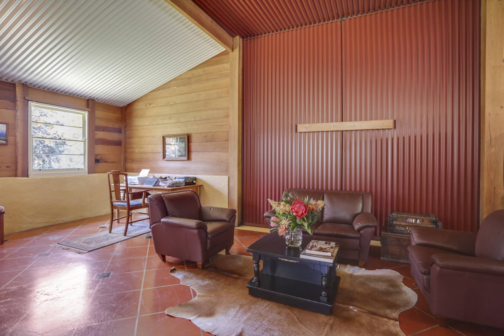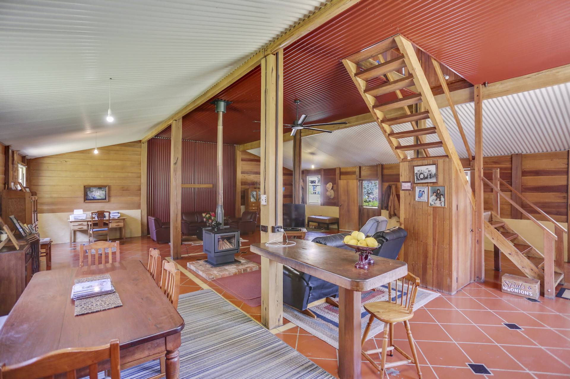 Secreted away just a five minute drive from the beach and all the amenities of Port of Eden. Divine 39 acre park like holding which upon arrival reveals a picture book private drive which meanders through native pasture and dotted eucalypts revealing a post and rail fenced home compound resplendent with a black granite paved entrance and court yard where the bespoke main residence and adjacent garaging and guest accommodation/studio awaits. Hand crafted with blue cobble stones and hard wood cladding sourced and milled on the property the unique home features a fabulous covered entrance/alfresco area inside to an enormous open zone 12 squares in size incorporating living, dining and kitchen including stainless steel gas range wood stove and dishwasher. Excellent bathroom/laundry facilities, upstairs to timber lined utility/living with master and second bedroom adjacent. Garaging includes 3 bays, separate workshop with large bedsitter/studio above. The wonderful established surrounds include chook yards, stable, vegie garden etc. The property is well fenced and complete with round yards and 2 excellent dams. Simply Sublime.