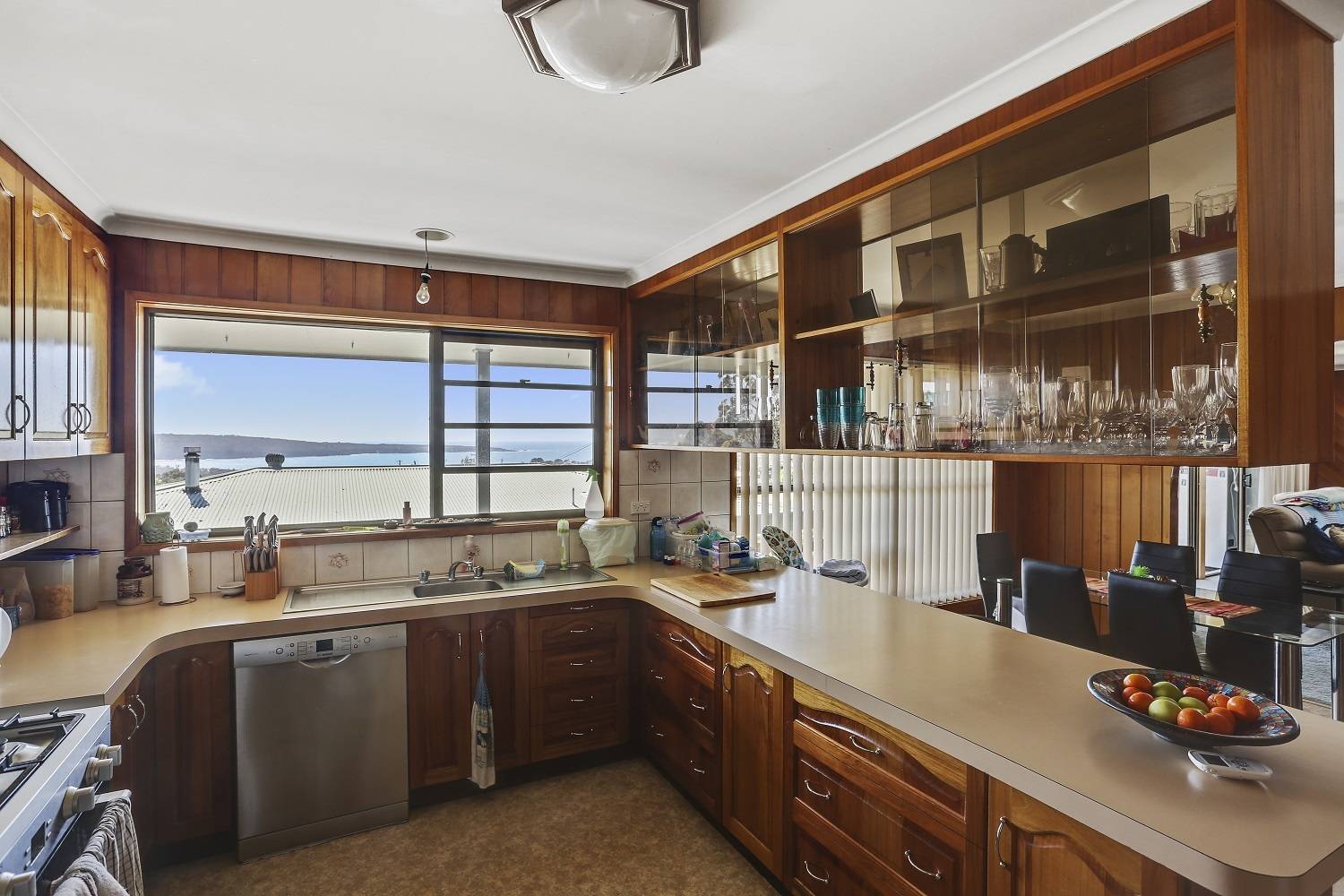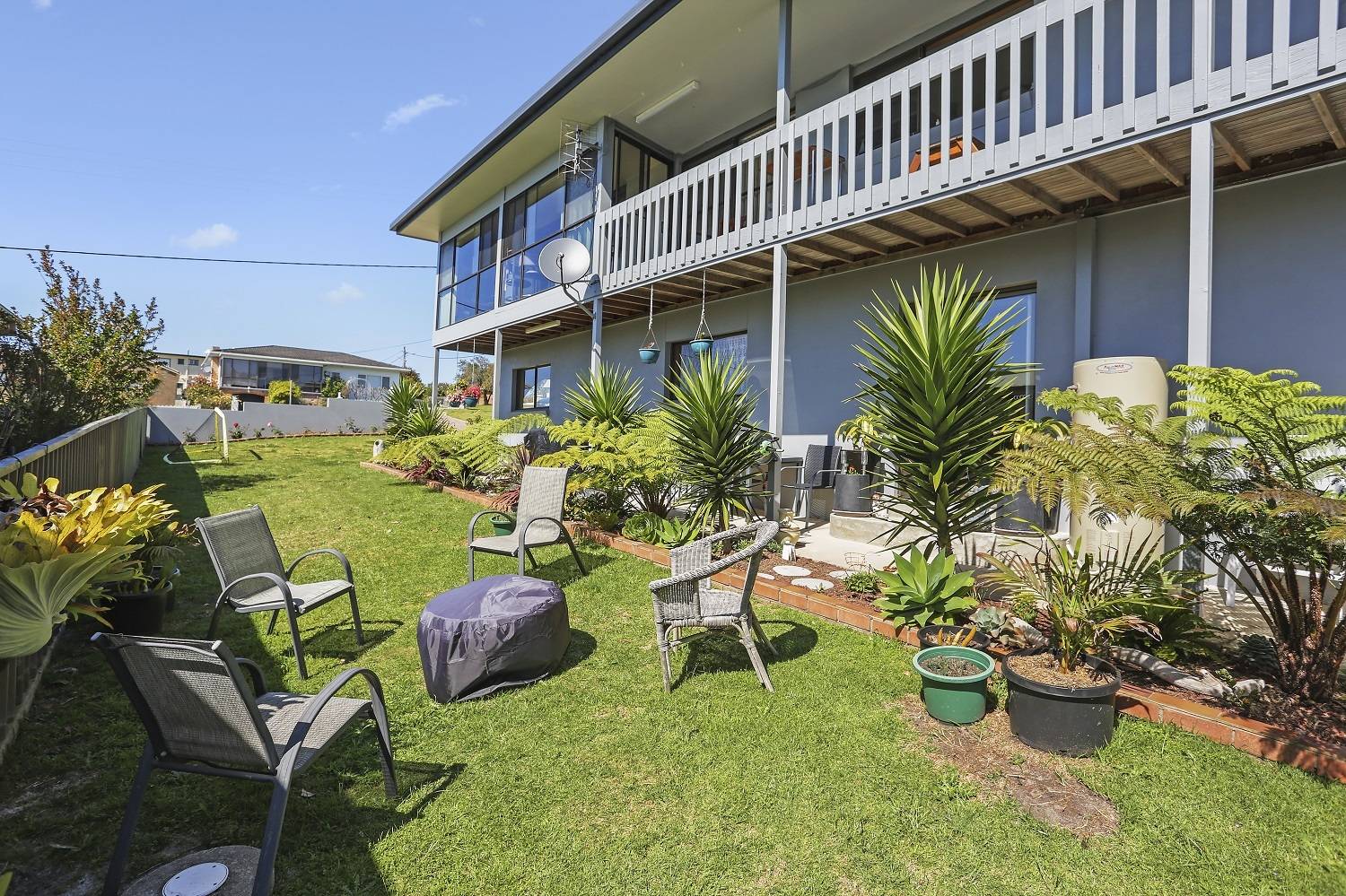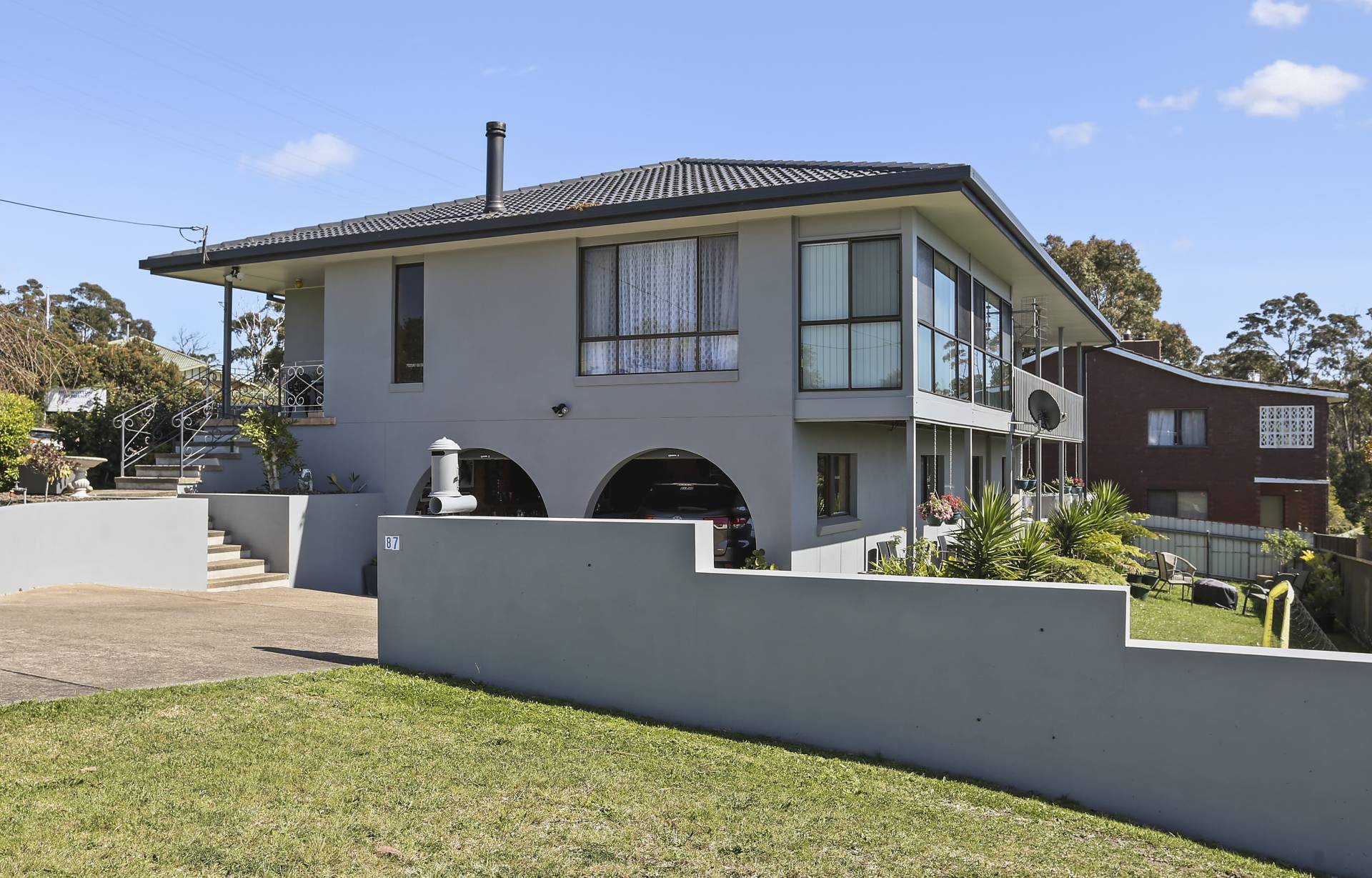Spectacular North East water views are laid on from this outstanding 4 bedroom home. Situated in a sought after elevated location that surveys most of Eden, Twofold Bay and out to the expanse of the South Pacific. Upstairs features main living (split system & s/c heating) adjoining sunroom out to under roof  balcony to enjoy the stunning sunrises & sweet sea breeze, separate dining, shimmering  Blackwood kitchen with extensive storage and 5 burner gas range, huge master (balcony, views) ensuite, study, 2 more bedrooms, BIRs and a 3 way bathroom. Downstairs comprises large rumpus/living, separate kitchen, 3rd bathroom, bedroom and external access make the whole area ideal for a self contained unit. Complete with oversized double L/U garage & large lined workshop. Fully established easy access driveway and gardens. Reach for the top.
