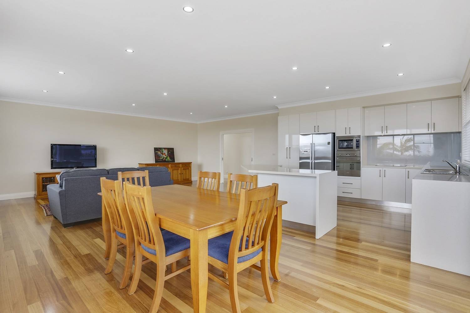 You’re in for a real treat with this fabulous just completed 3 bedroom home positioned at the end of a quiet cul de sac. Single level living at it’s best with not a step in sight, a quality build at every turn. Instant calm prevails as you enter the wide entrance hall, the stunning secret nailed hardwood flooring leads to the huge open living zone where the 9ft ceilings are immediately evident. Filled with natural light, the area comprises lounge, dining flowing out to extensive outdoor decking all enjoying glittering lake, bay & ocean views. Fantastic fully appointed kitchen with Caesar stone benchtops,  S/S appliances & large island breakfast bar. Generous bedrooms all with BIR’s, master with fully tiled ensuite, sumptuous fully tiled main bathroom, shower, bath, vanity plus WC & laundry (plenty of storage) out to the level access wrap around deck. Over sized double garage complimented by easy grade drive with surrounding yard fully fenced & established gardens. Take control.