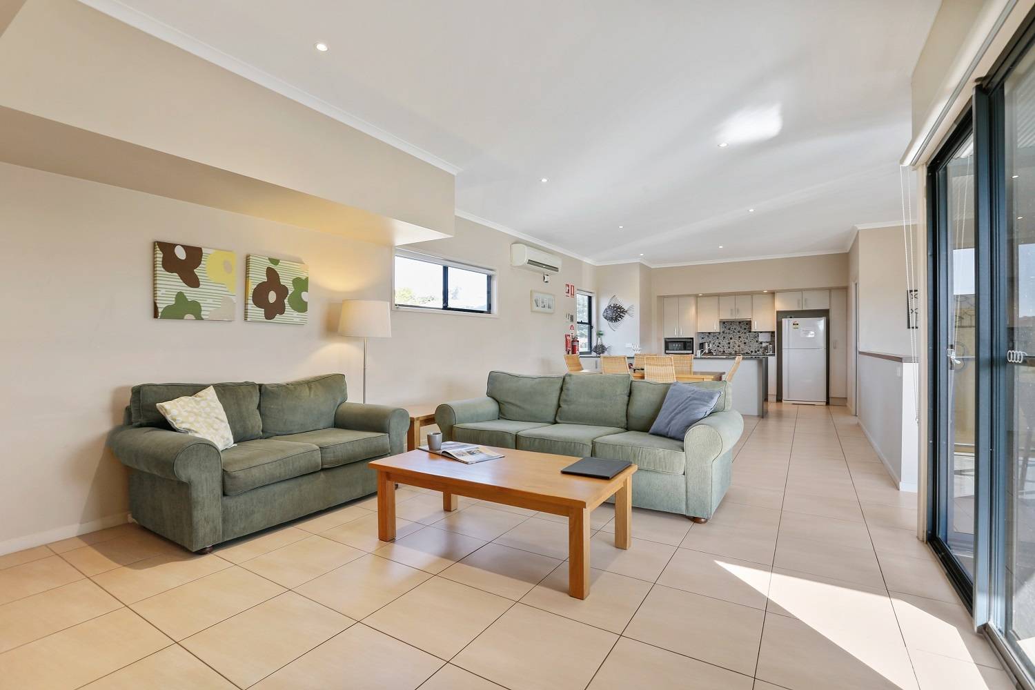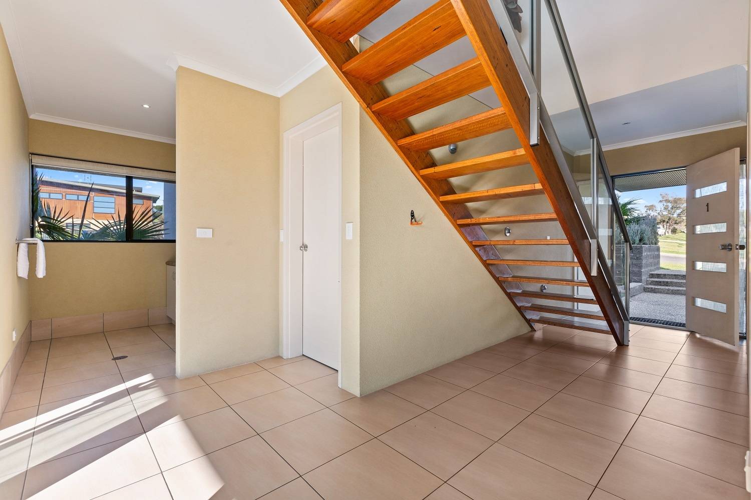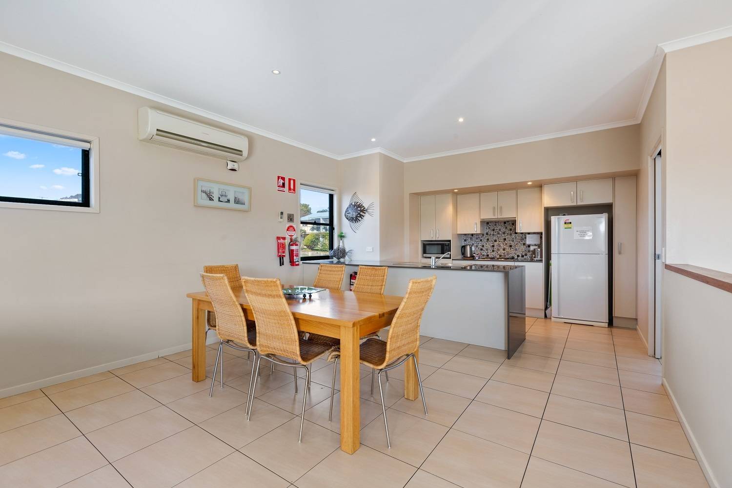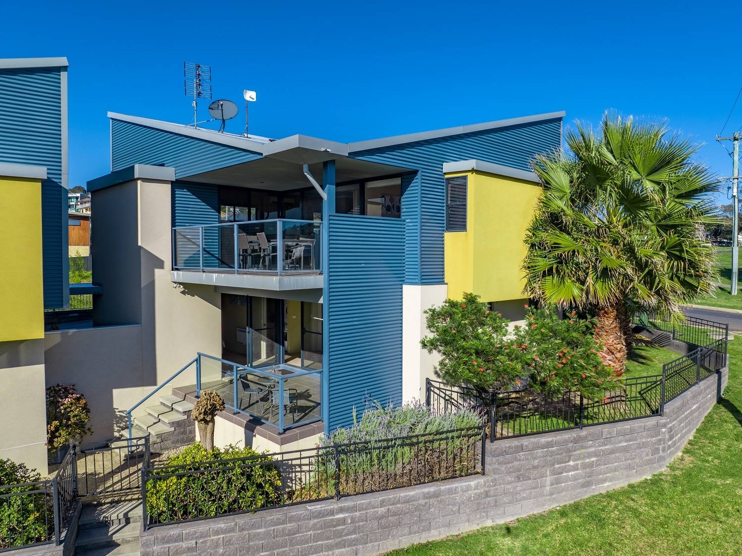 Apply the sunscreen & wander down (150m) to squeaky white sands & azure blue waters of award winning Aslings Beach for a dip or throw in a line or just stay put & enjoy the fantastic livability of this architecturally designed high spec 3 bedroom freestanding apartment. Light filled open living/dining (tiled floors & split system) flowing out to one of two under roof tiled balconies perfect for alfresco living or just relax & enjoy the sound of the gentle shore break & the dappled water views. Beautifully appointed kitchen with breakfast bar, master bedroom with ensuite, WIR & balcony access, fully tiled main bathroom (vanity, shower/ bath & WC) which provides ensuite access to br 2, slider out to second balcony (brs 2 & 3) & adjoining landscaped courtyard, BIR’s, 3rd WC/powder room complete with oversized double internal access garage – exquisitely set in a boutique low maintenance, 4 apartment complex. A peach on the beach.
