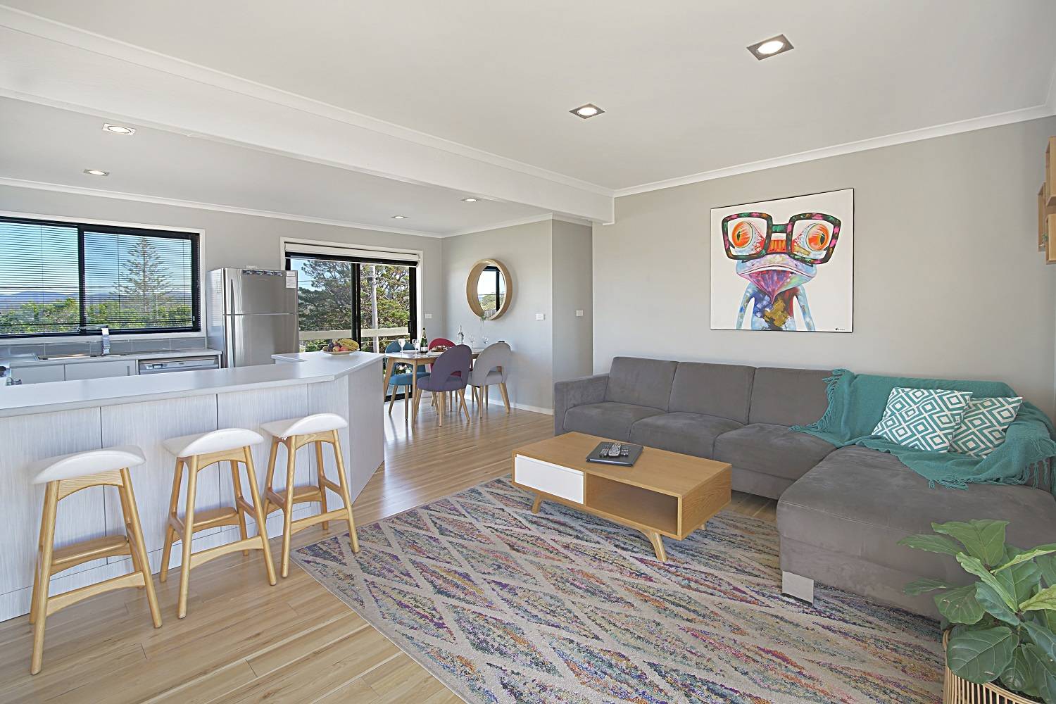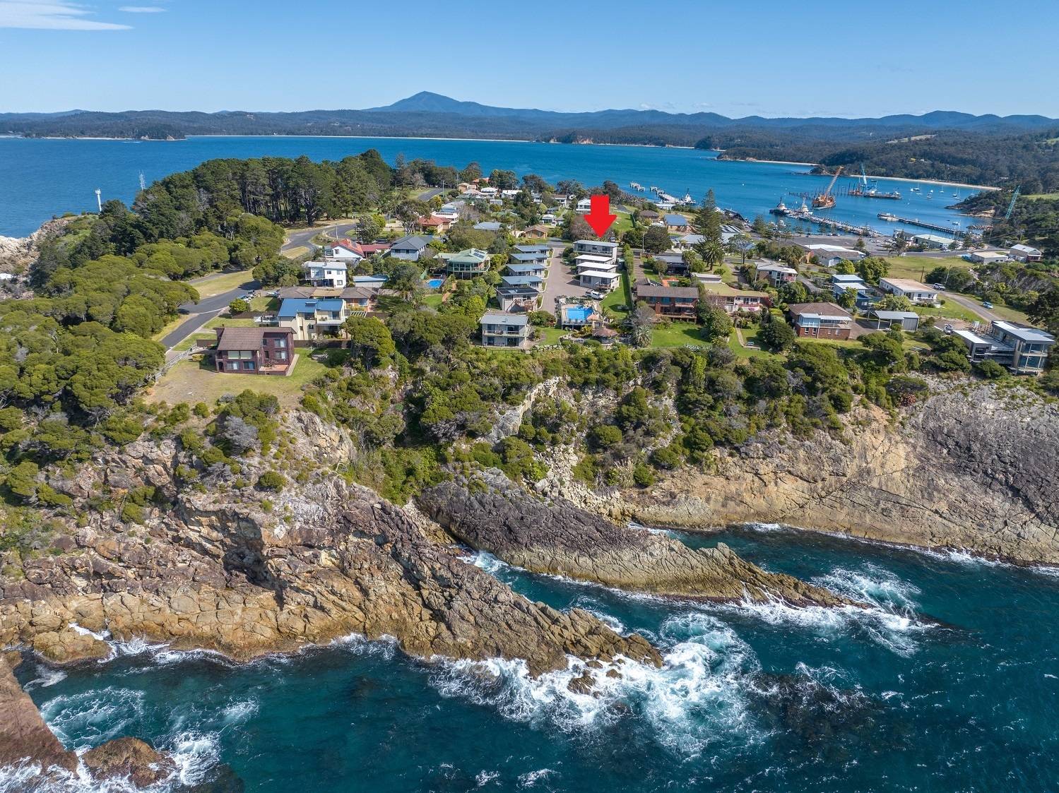 Sublimely positioned in a spectacular, absolute cliff top location with awe inspiring North East water views out across Twofold Bay taking in Aslings Beach, Ben Boyd National Park and out across the vast expanse of the South Pacific to the horizon. The outstanding 4 bedroom residence is light filled and modernised throughout featuring upstairs living & dining areas with a beautiful appointed kitchen at the fulcrum, out to front & rear decks to luxuriate in the mesmerising water views, three bedrooms (BIRs), including master & 2nd  BR with direct deck access and sparkling fully tiled modern bathroom. Downstairs to second living/rumpus, 4th bedroom, classy kitchen + delux bathroom (easily utilised as separate self contained unit) plus L/U garage and study. The amazing 12 unit complex is complimented with superb landscaped surrounds (3895m2 allotment) resplendent with large saltwater pool & spa, cliff edge gazebo & bbq area. Make every day a holiday!