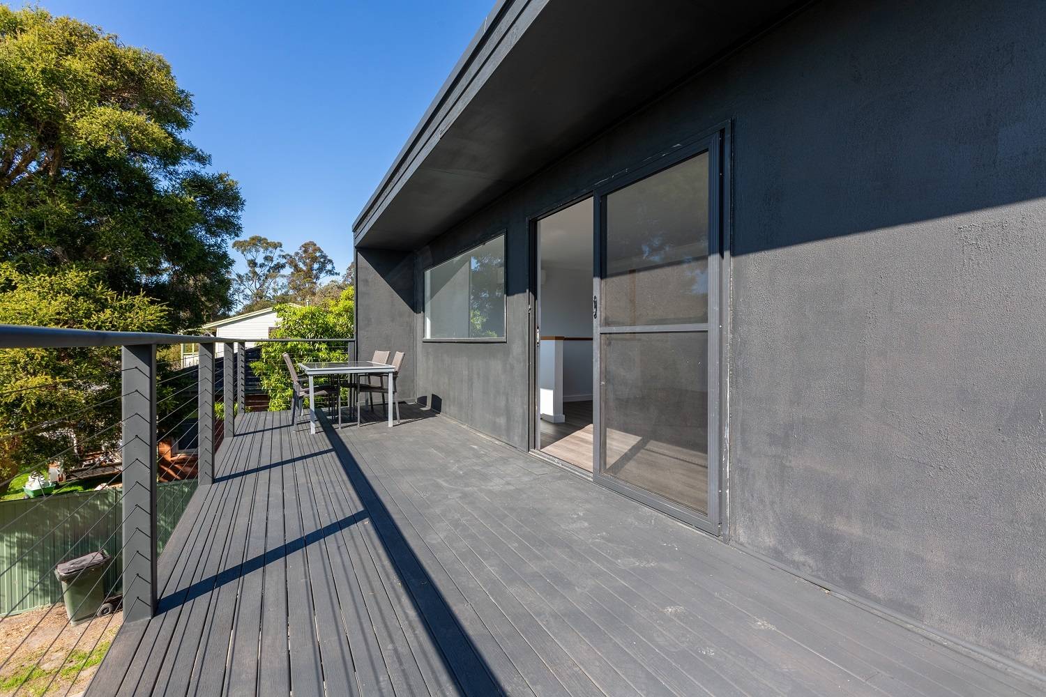 Completely renovated to as new, 3 bedroom plus study home boasting shimmering lake views and an all day sunny aspect to adore positioned on a dual access corner block just 200m from Lake Curalo boardwalk/cycle track which winds around to the award winning Aslings Beach. With a wow at every turn the sparkling home comprises a large open light filled main living area flowing out to a generous house width deck to enjoy the view plus the hint of salt in the air – fully equipped kitchen with s/s appliances, delux main bathroom (shower, vanity + WC) main bedroom with WIR + European laundry cupboard. Downstairs to entrance foyer, study, second living with kitchenette, 2nd (huge) + 3rd bedrooms, gleaming fully tiled second bathroom plus large laundry room. The near level surrounds are fully fenced (colorbond) with workshop/garage and garden shed at the rear. Knocking on heaven’s door.
