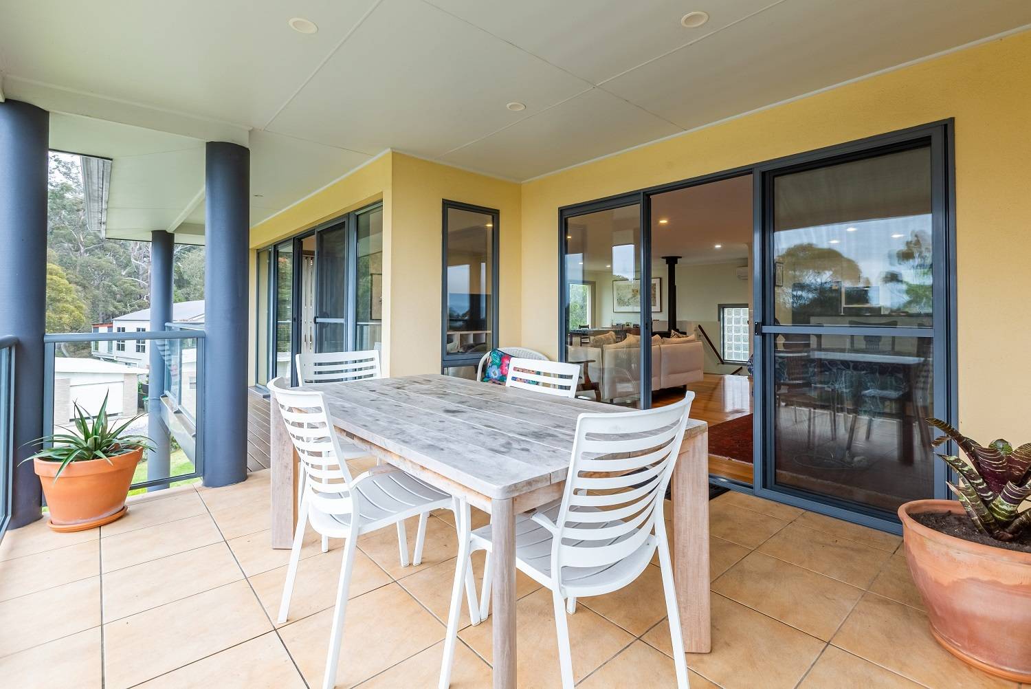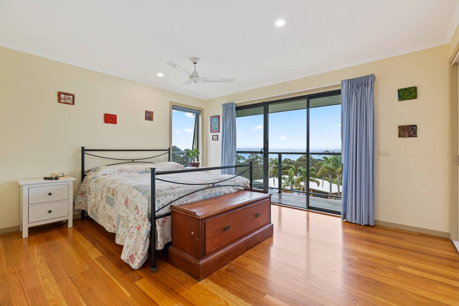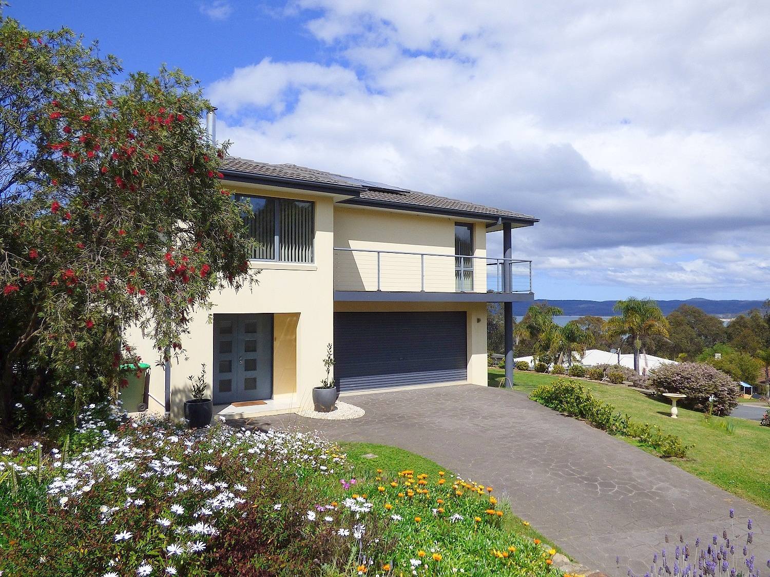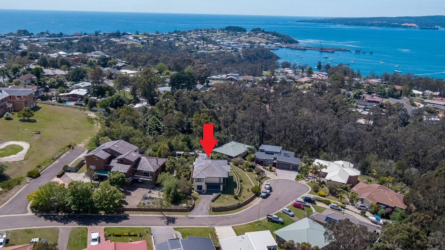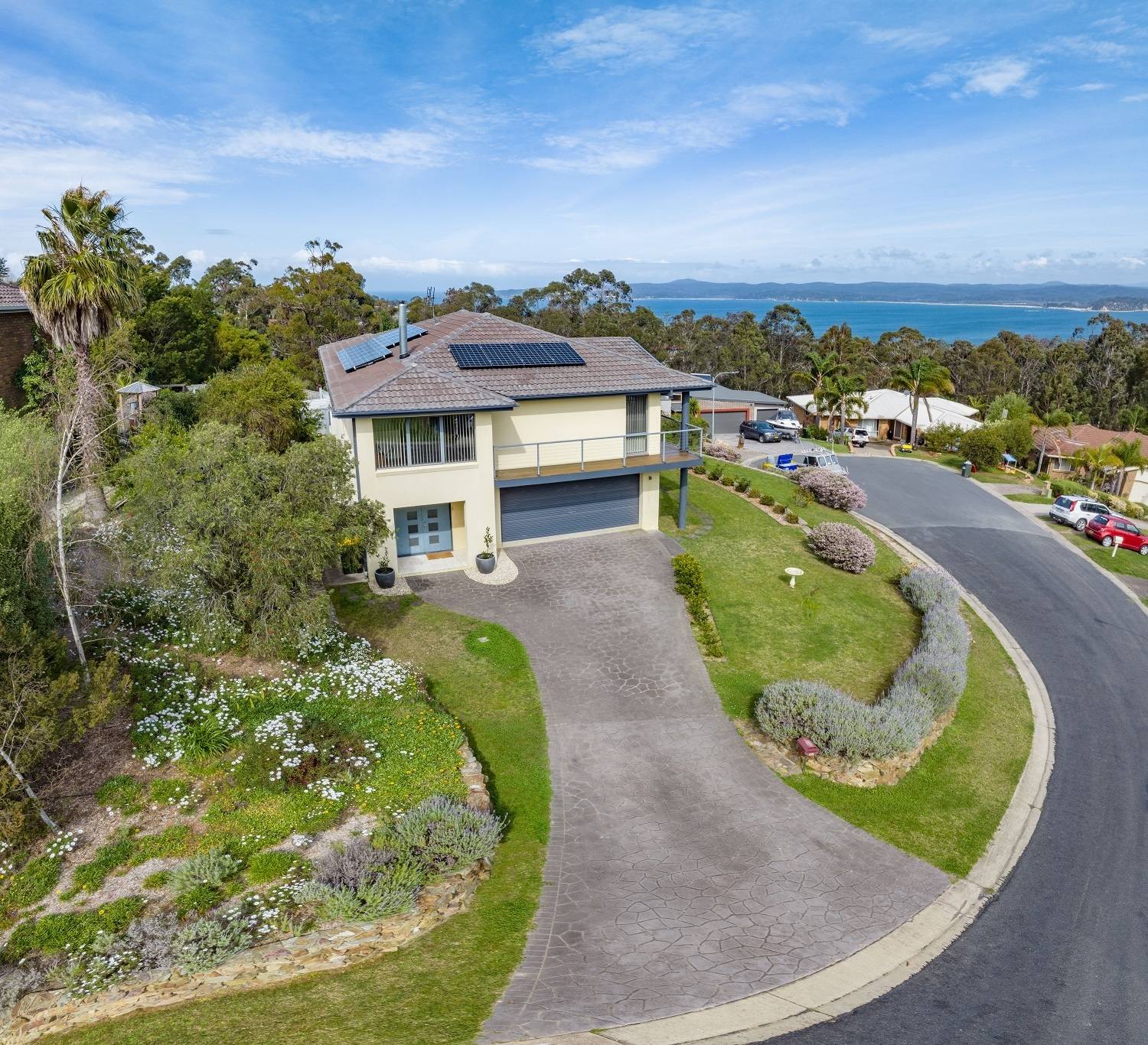 Spectacular unimpeded water views out across Twofold Bay and beyond to the hinterland are ever present from all main rooms of this impressive, 4 bedroom home which is tucked away at the end of a quiet cul de sac on an elevated, near level 1/4 acre allotment. Custom built and generously proportioned throughout, the  home includes a wow factor entrance with bespoke staircase, expansive open living and dining including office area featuring double glazing & gorgeous hardwood floors flowing out to under roof tiled balcony to luxuriate in the views and a gleaming fully equipped kitchen (S/S appliances) at the fulcrum. Whopping bedrooms (4th BR doubles as a 2nd living), BIRs, 2 excellent bathrooms, monster garage/workshop and 5.5kw BTG solar. Easy access fabulously landscaped 1032m2 block complete with vegie gardens, fruit trees, garden shed etc. The choice is clear.