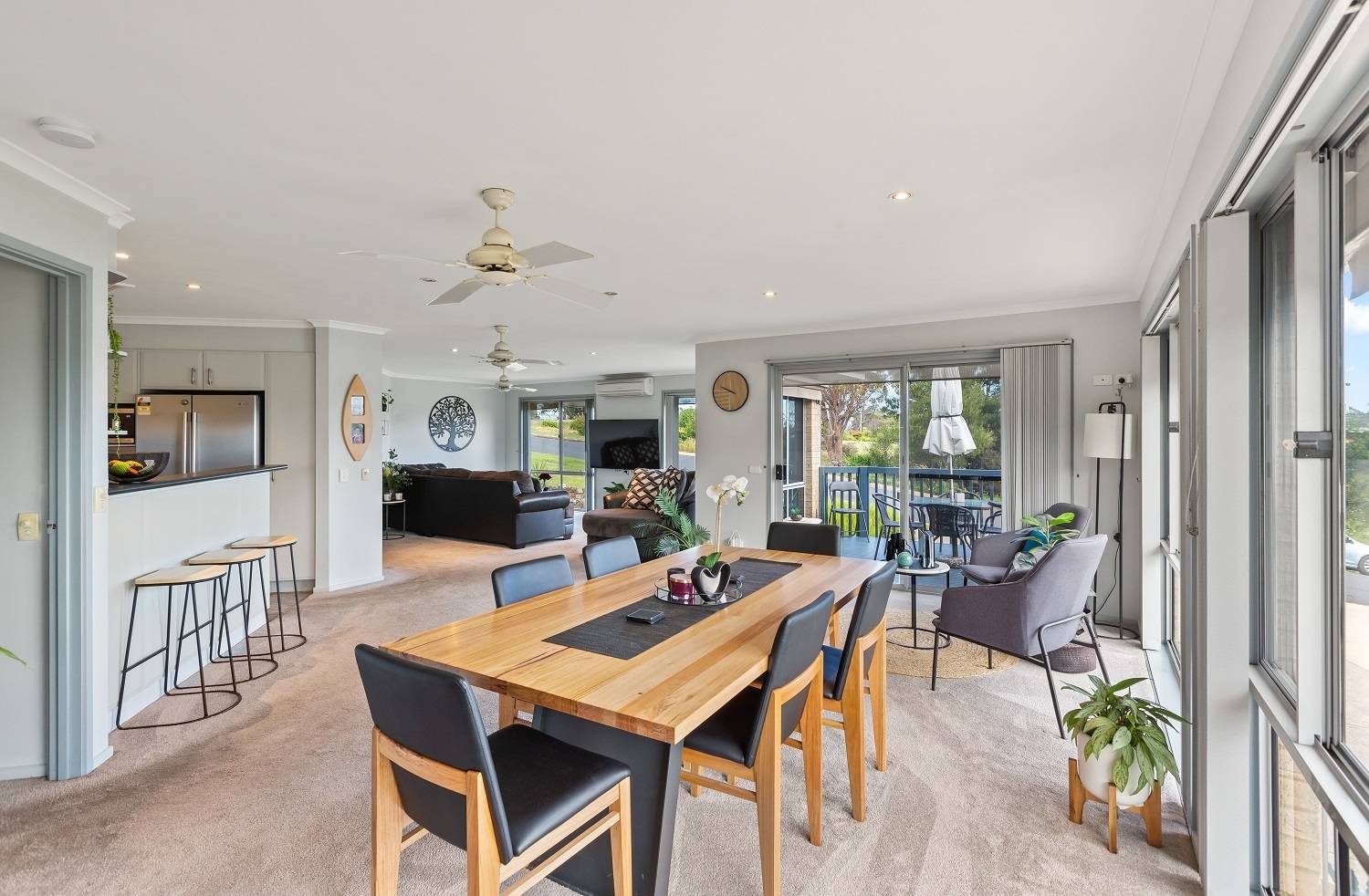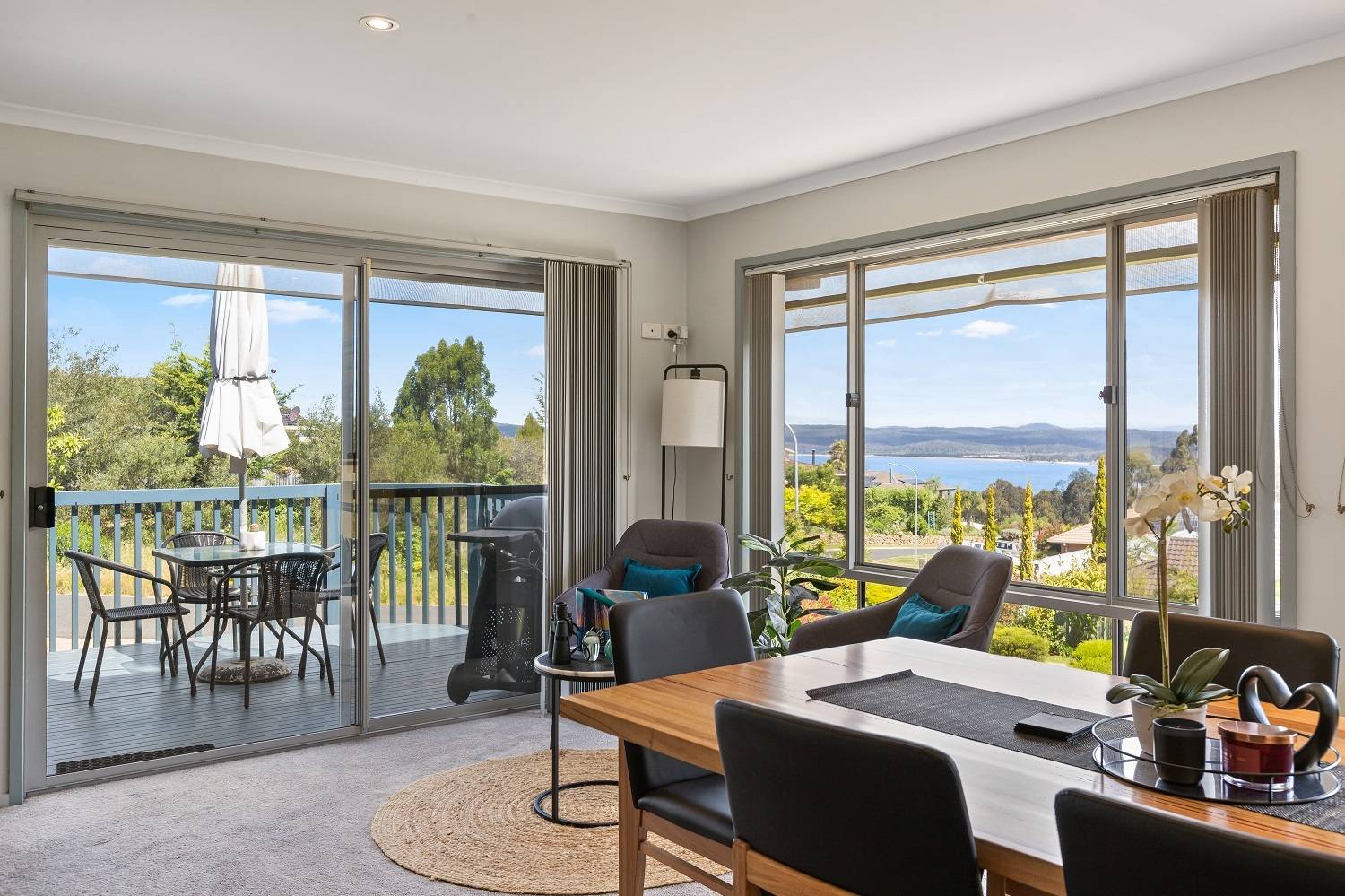 Outstanding water views out across Twofold Bay are on show from this fantastic, easy living, 4 bedroom brick veneer & tiled roofed home. Upon entry the immaculate presentation and impressive volume of the open living space is immediately apparent with lounge (split system) flowing through to dining/family area, then out to the sundeck to luxuriate in the views. Fully appointed kitchen featuring breakfast bar & pantry, master bedroom complete with ensuite & WIR, brs 2 (split system), 3 & 4 are all good sized with built in robes, main bathroom comprising vanity, bath, shower plus sep wc in addition. The home is complimented by a l/u garage plus adjacent workshop area and loads of dry storage.  The entire surrounds are low maintenance and fully established with many mature plantings, raised veggie garden and plenty of paved off street parking for boat/caravan etc. Just move in and enjoy.