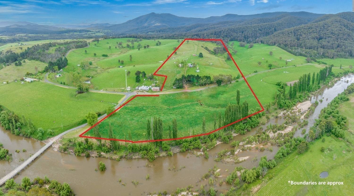 Breathtaking rural vistas in all directions across the Towamba Valley, clean country air and crystal clear river water are in abundance with this fantastic 75 acre, gently undulating riverfront holding. The character filled 5 bedroom country homestead features modernised kitchen & bathroom and marvellous front & rear verandahs to enjoy the serenity, in addition there is a freestanding, 4 roomed sleep-out/studio to the rear. The property is divided into 11 paddocks (4 dams), mostly native pasture with some stands of hardwood, fertile river flats and extensive farm infrastructure including; 4 bay (1 lock up) 14.9 x11m machinery shed, 3 bay American barn (11 x 10m), loads of water storage, stables, round yard, excellent aviaries, steel cattle yards & crush, mixed orchard, chook yards and even an old slab construct blacksmith shop & corn crib. Enjoy every breath that you take.