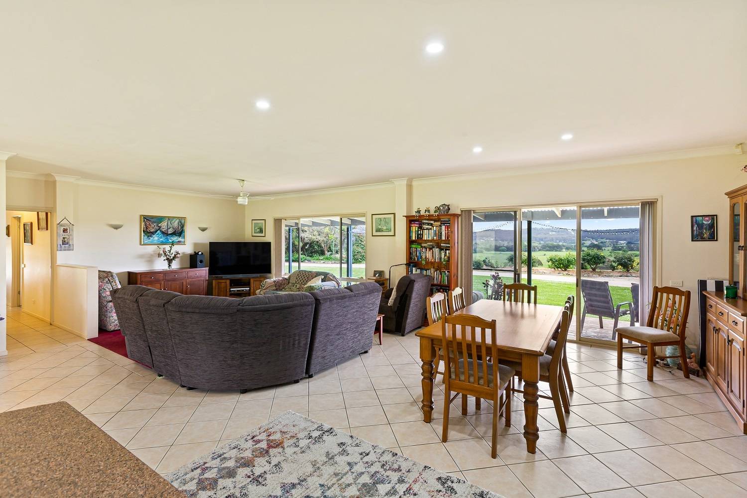 First time offered in the past 100 years "Boondella" farm comprises 305 glorious acres which includes approximately 130 acres of fertile Pambula gold alluvial flats and a 3km frontage to the Pambula River ranging from the fresh through to the Broadwater estuary system. The homestead is perfectly situated in an elevated North facing position allowing clear views of the stunning rural vistas and beyond to historic Pambula Village, which is only a few mins drive away (extra 3 min to beach). Modern and excellently maintained, the home comprises 4 bedrooms (BIRs), master suite with WIR & ensuite inc shower, vanity, spa bath and sep WC. Large open main living area incorporating lounge, family, dining with a generous fully equipped kitchen at the fulcrum leading to generous paved verandahs all round. Separate rumpus room, 3 way main bathroom and laundry. Town water is connected plus 143,000 of tank water. Situated approximately 500m from the homestead is the original farm house (Circa 1910) which is comfortable throughout, includes 5 bedrooms and has its own fenced yard. Other improvements include huge farm/machinery shed, hay shed, stock yards and several dams providing permanent water for stock. Irreplaceable holding offering the best of the rural lifestyle, the comforts of modern living with all of Pambula’s amenities within touching distance. Inspection by appointment.