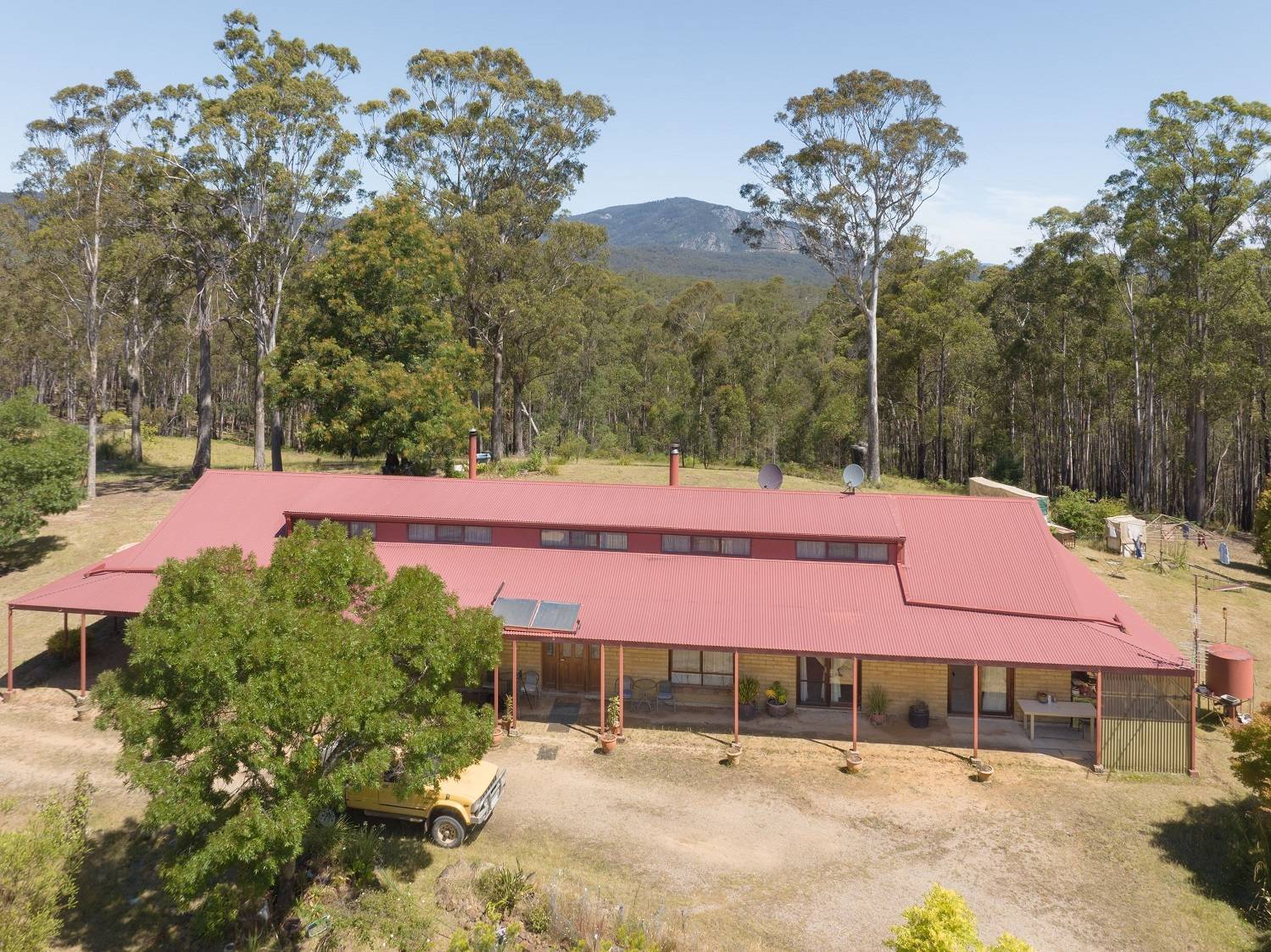 Nestled on 153 private native bush acres where nature is at its finest including a long frontage to a crystal clear permanent stream, yet located just 3 mins (drive) from Wyndham village (general store, school, pub etc) and 25 mins from the beach. Willmaree Homestead is a magnificent testament to endurance and clarity of vision - Expansive and North facing, the residence is brick construction all made on site and lovingly constructed over many years. Comprising a massive open main living space with soaring raked ceilings and front & rear verandah access (with spectacular Jingera Rock and National Park views), separate dining, quintessential country kitchen (inc fuel stove) and prep/larder area. Family room (s/c heating & slate floors), massive master bedroom with verandah access & ensuite (needs completing), BIRs (brs 2 & 3) and 3 way main bathroom. The homes immediate surrounds are park-like and mostly cleared, approx 10 acres in size with many established plantings and a fabulous 60ft x 30ft high clearance drive through industrial/farm shed with power  and small adjacent store/studio inc bathroom facilities. Complete with plenty of tank water plus pump on Myrtle Creek, veggie gardens, chook yards etc. Naturally yours.