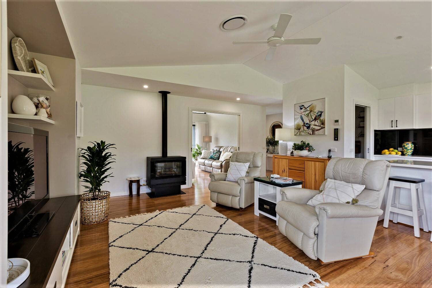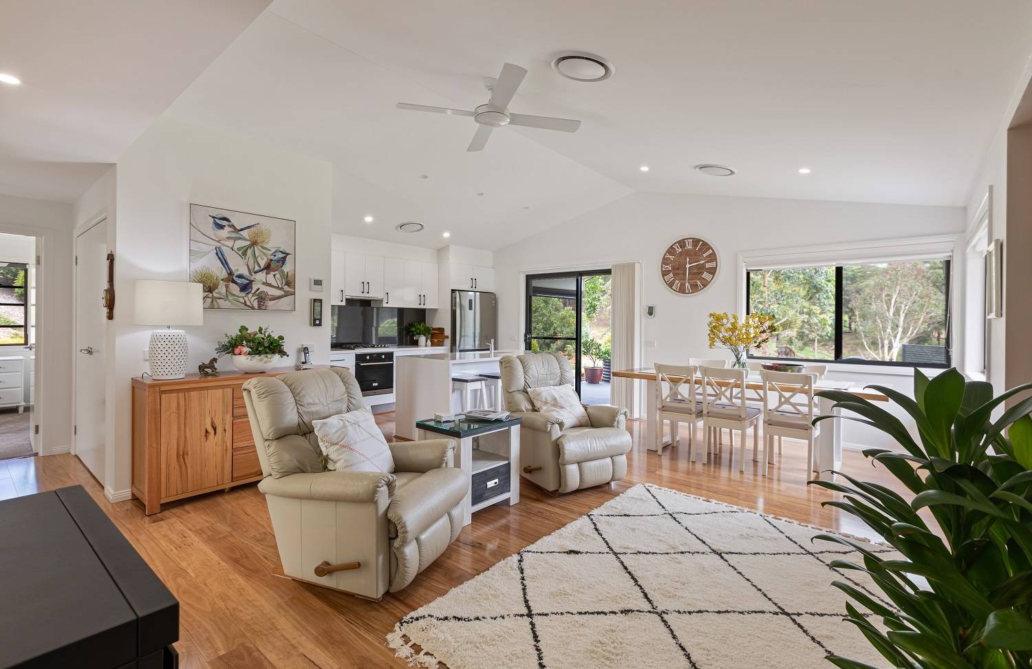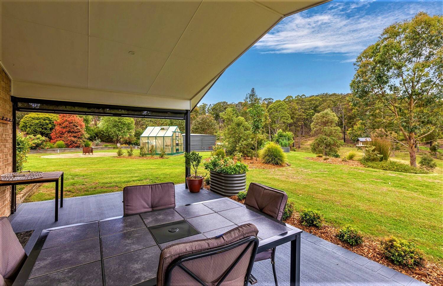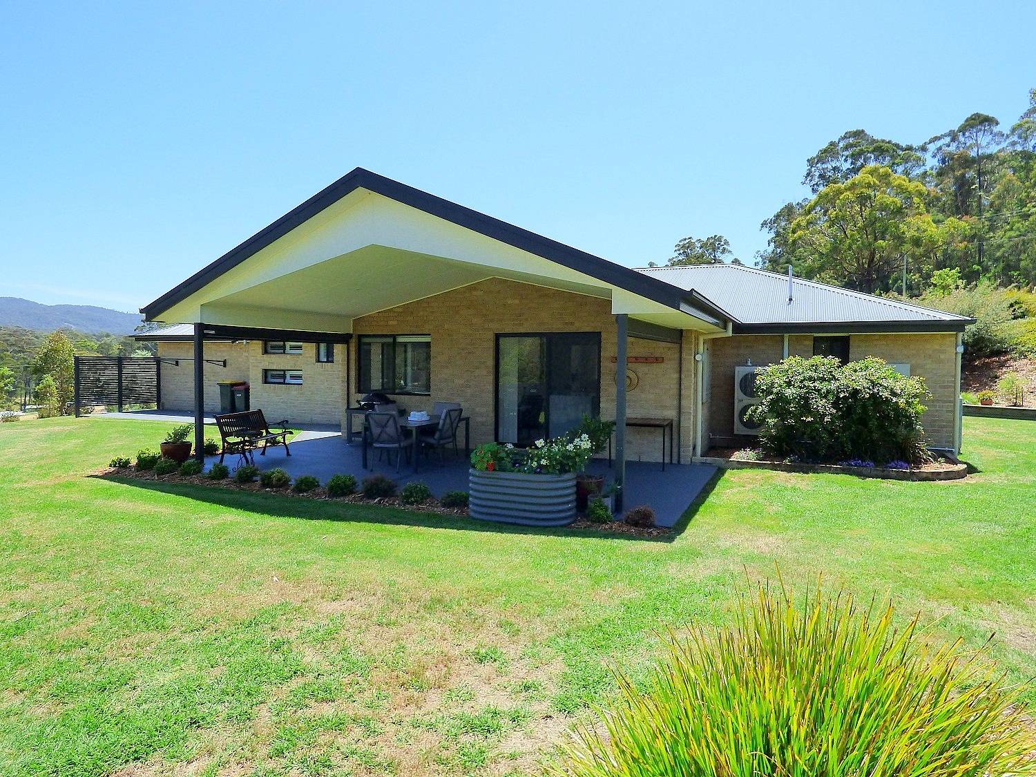 The ultimate rural lifestyle  is ready  and  waiting in  the ever popular  locality of Nethercote, outstanding 5 acre holding with an immaculate 3 bedroom contemporary residence boasting rural views to inspire. Exquisitely positioned on a near level site the as new home features open living/dining (ducted heating/cooling plus cosy gas fire) with raked ceilings providing a beautiful amenity flowing out to an under roof paved alfresco living area to revel in the breathtaking surrounds. Magic fully appointed stone bench topped kitchen (ss appliances) with breakfast bar and walk in pantry, media room/2nd living out to under roof  courtyard/patio, king sized main bedroom with generous ensuite and walk in robe, BIR’S (br’s 2&3), gleaming fully tiled main bathroom comprising  shower, vanity and bath plus sep wc, laundry out to adjacent drying area and double internal access garage. The superb fully established surrounds are well fenced with a cracking 12m x 9m high clearance, 2 roller door garage/workshop with power and plumbing for bathroom facilities – 2 excellent dams, plenty of tank water, 5 raised veggie gardens, glass house and many established plantings including various citrus trees. Super conveniently located just a few mins (drive) Nethercote Community Hall and a leisurely dozen minutes from Eden/Pambula and the beach.  Who said you can’t have it all?
