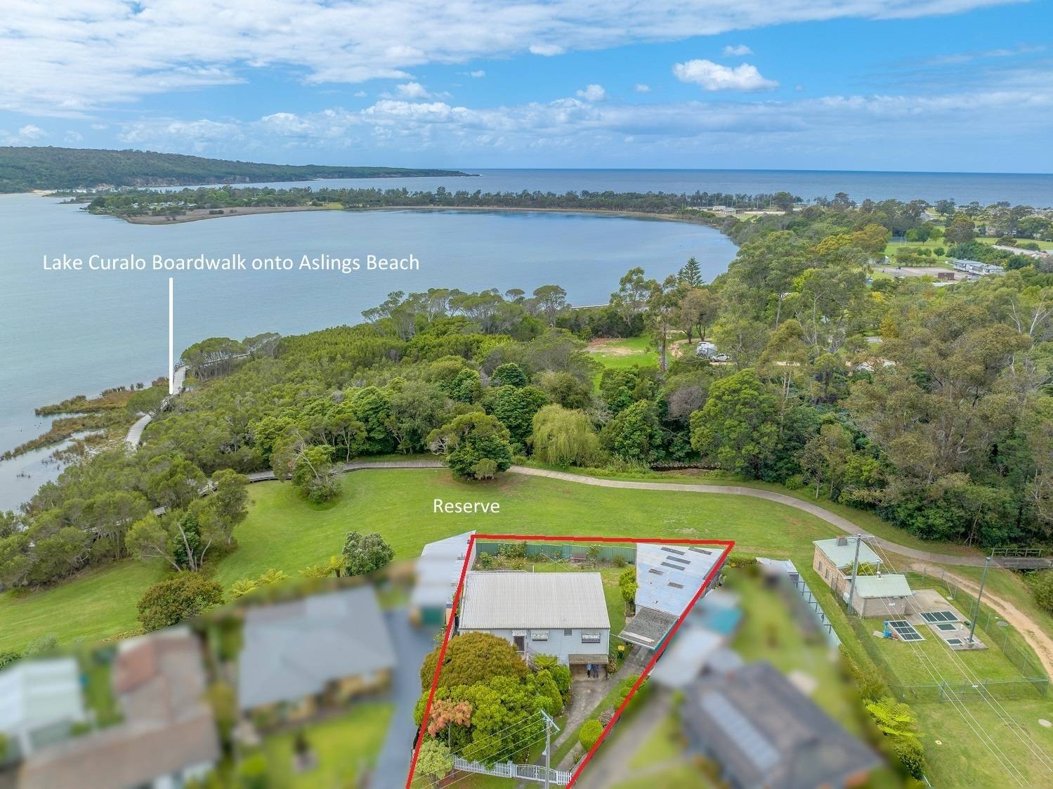 Uniquely positioned directly adjoining foreshore reserve to the rear giving direct access to Lake Curalo estuary, boardwalk/cycle track winding round to Eden’s sports grounds and the crystal clear waters of Aslings Beach. Tucked away in a private court location, sound and true 3 bedroom home comprising upstairs, large living room (raked ceilings) out to a laser-light covered sunroom/informal dining, roomy kitchen with walk in pantry, 2 good sized bedrooms and main bathroom (shower, bath, vanity & wc). Downstairs via lift or stairs to a 3rd bedroom (ideal for guests or teenager) with ensuite, large store area/potential 4th br, laundry and double length carport. The fully fenced and established surrounds include a freestanding garage and large separate workshop/man cave. Now and forever, front row position.
