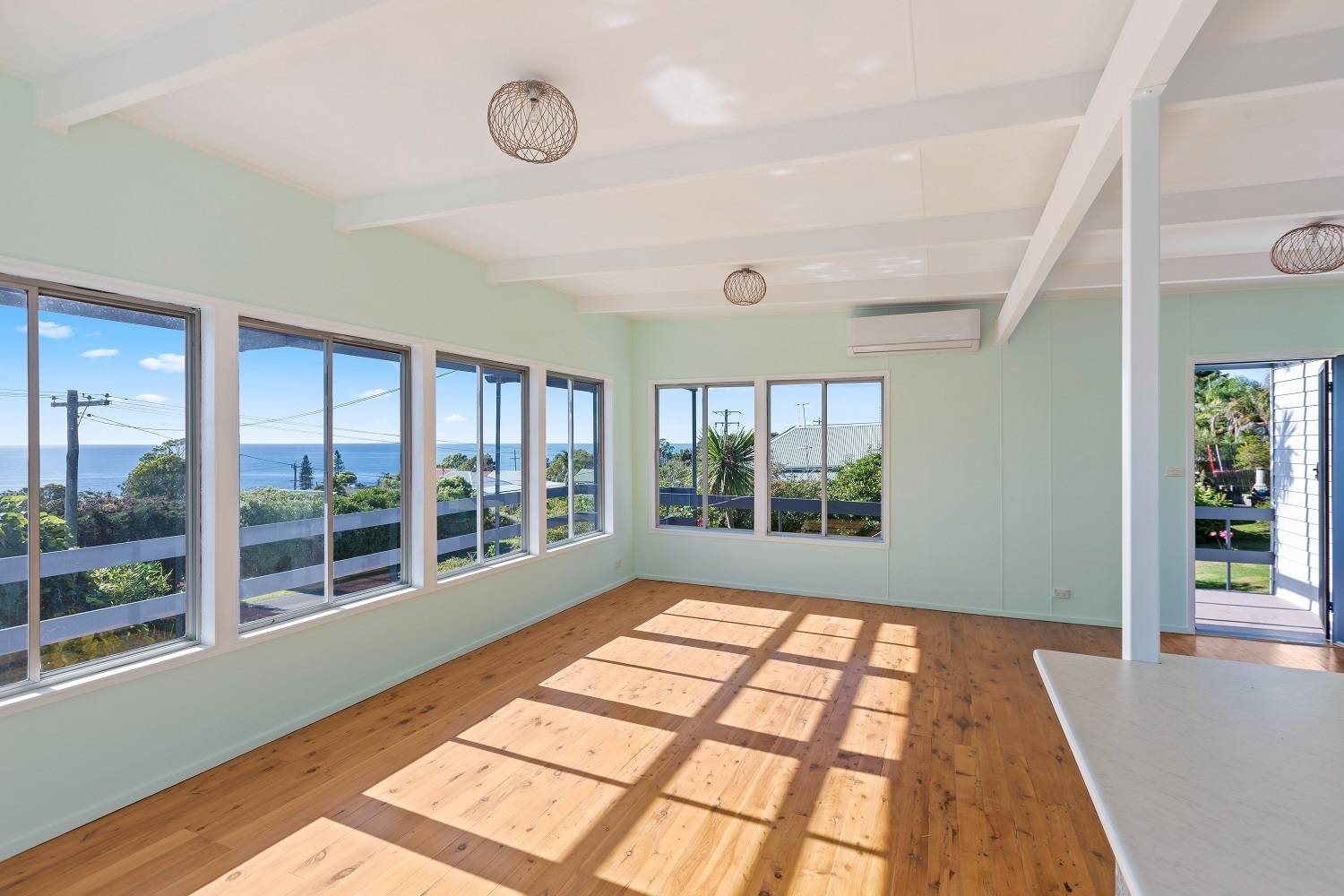 Brilliantly located on the high side of the street in tightly held, ever sought after Flora Street just 150m from Eden's vibrant main street and boasting one of the best water views imaginable scanning from the Northern tip of Twofold Bay, all the way to Boyds Tower in the South and out as far as the eye can see to the curvature of the great expanse of the South Pacific. Extensively renovated 4 bedroom home boasting a fabulous beach feel and an exceptional sheltered sun-drenched North East aspect to luxuriate in. Upstairs comprises main living and dining featuring raked ceilings and gorgeous cypress pine floors out to a wrap around balcony to enjoy alfresco living. Sleek kitchen with breakfast bar, designer bathroom (vanity, wc & shower), and 2 bedrooms with BIRs. Downstairs to 2 additional bedrooms, second bathroom/combined laundry and massive under house carport general usage area. Hard to find, one of a kind.