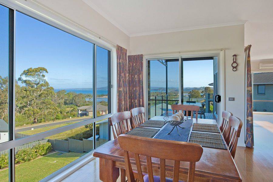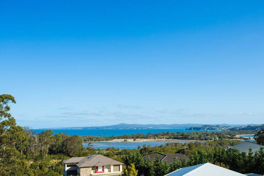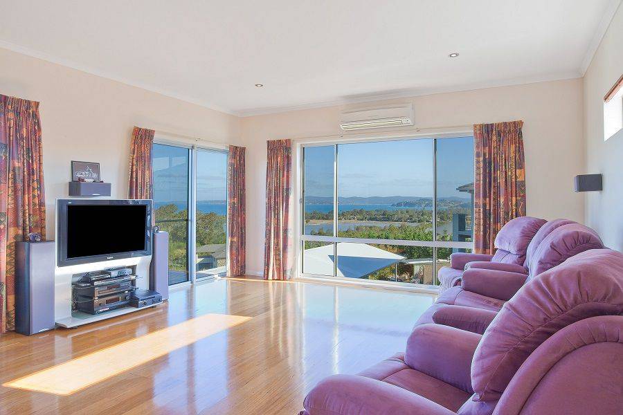 Sensational executive 4 bedroom, 3 bathroom plus study residence situated in a quiet court location at Eden Cove and boasting awe inspiring lake, bay and ocean views. Featuring quality throughout the home comprises rumpus out to extensive covered hardwood deck, generous TV/media room, grand designs staircase leading to main living (both with 6 inch polished floorboards), dining out to two under roofed glass-hand railed balconies. At the fulcrum of the upstairs living zone is a stunning gourmet kitchen with granite and stainless steel bench tops. All bedrooms are generous while the master is enormous with WIR and ensuite with double shower, impressive main bathroom boasting a spa bath. There is a triple garage for your convenience and the grounds are fully landscaped. There is no need for compromise.