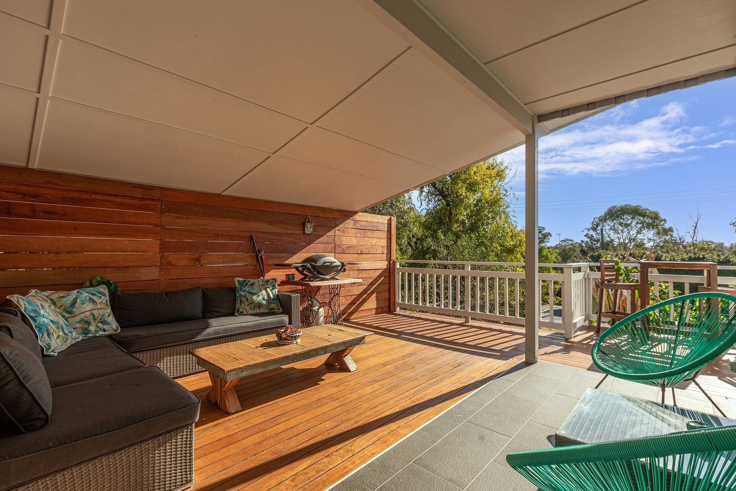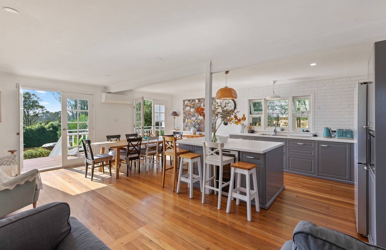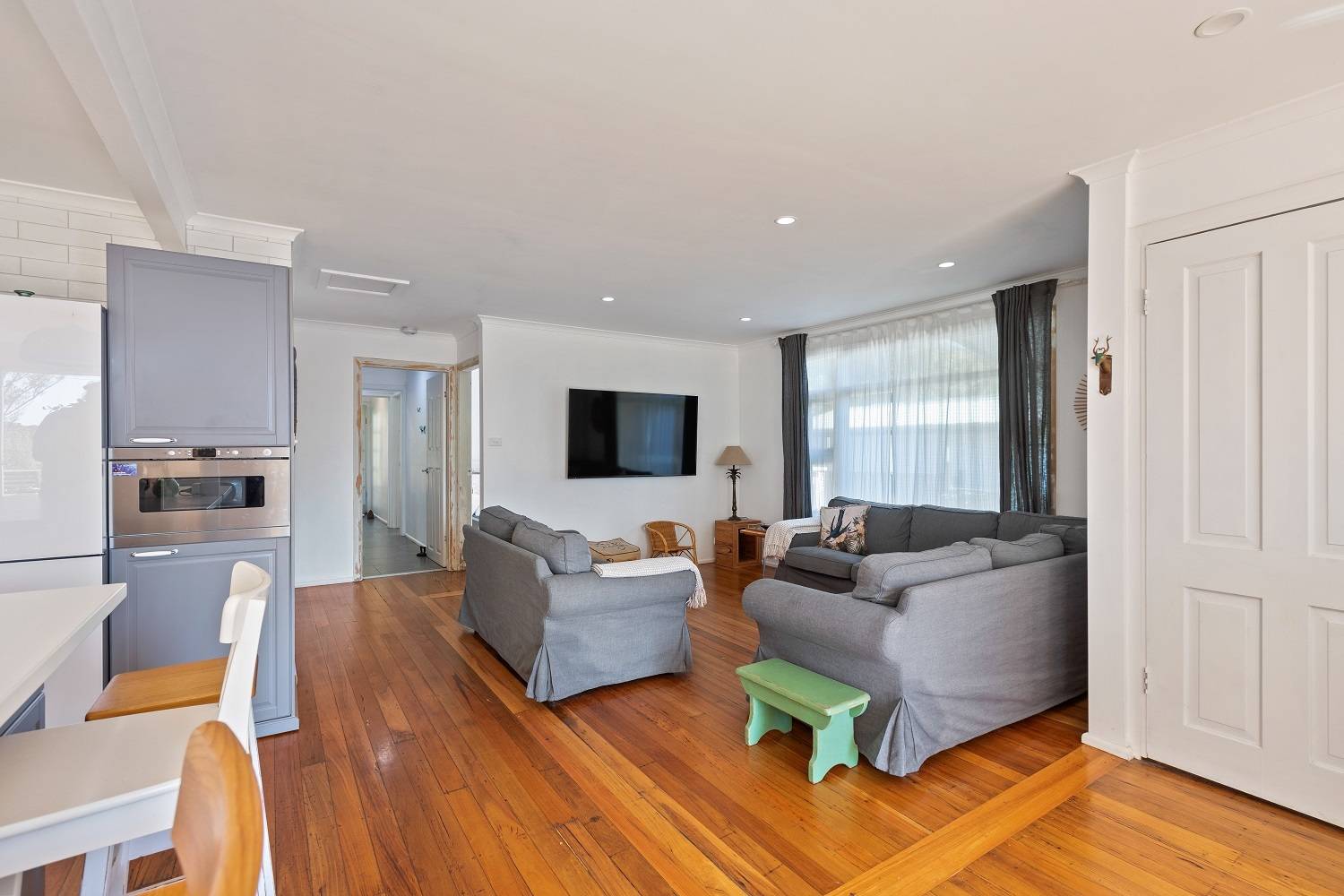 Classic North facing beach house (circa 1965) built to the standard of a bygone era and carefully rejuvenated with modern amenities throughout, yet still retaining the classic charm and a free spirited livability of the past. Warm and inviting, the classic ship-lapped timber home features gorgeous hardwood floors throughout, sumptuous sun- filled living and dining areas (split system) with a divine, fully appointed soft close kitchen at the fulcrum including oversized island bench, eye catching country range & integrated dishwasher, the whole area flows out through two sets of double doors to a marvellous house width sundeck with an adjoining under roof alfresco living area. Four generous bedrooms, 3 of which feature double doors out to private deck areas, master includes gleaming, fully tiled ensuite, chic in bathroom (fully tiled) comprising  freestanding bath, shower, vanity and generous integrated laundry. Established easy care surrounds including garage/store area – Exquisitely positioned, just grab the towel and slip on the thongs then wander down to Aqua Cafe/general store (400m), surf lifesaving club and the bleach white sands and azure blue waters of Pambula Beach. Fully furnished and currently utilised as a lucrative holiday let - A Peach by the Beach.
