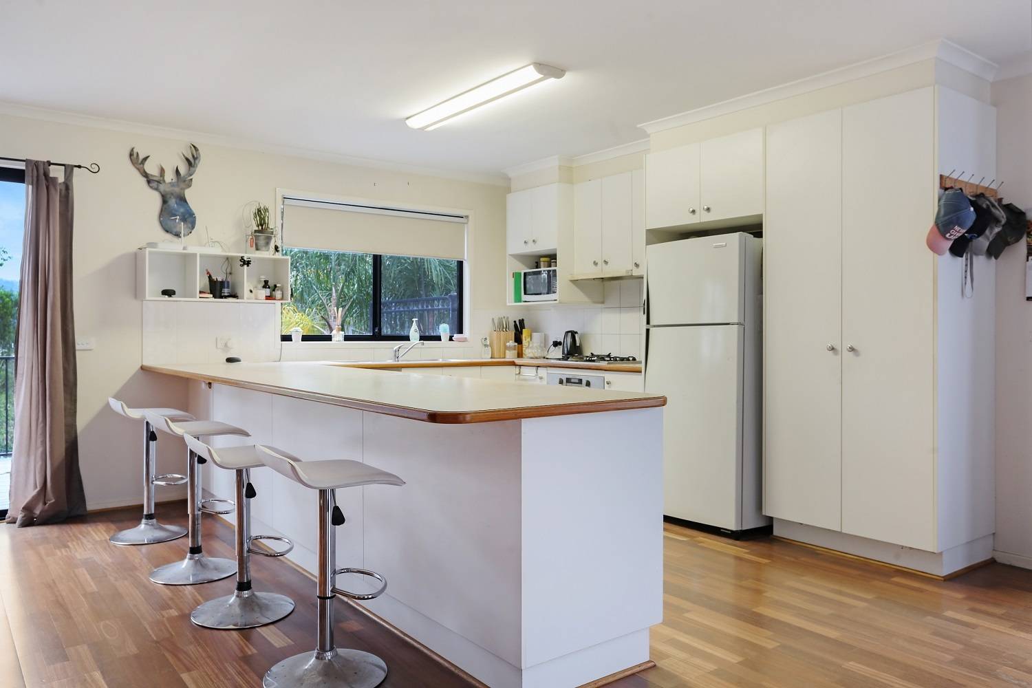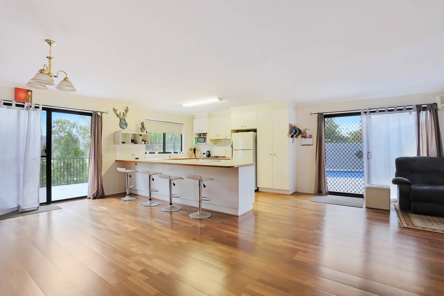 Tucked away at the end of a private drive and nestled on a generous 1023m2 allotment - Fantastic, single level, 4 bedroom home featuring a fabulous covered and paved outdoor entertainment/living area with an iridescent blue swimming pool as the centre piece. Spacious throughout, the home comprises an expansive open living and dining zone (s/c heater & split system) with a well appointed practical kitchen (large breakfast bar) at the fulcrum, the whole area seamlessly flows out to both the pool/entertainment area and a rear deck to enjoy the sunsets. Master bedroom with deep robe (BIRs brs 2 & 3), bathroom comprising bath, vanity, shower and sep wc. Other features include large fully fenced rear yard, freestanding double l/u Colorbond garage/workshop and 12 panel back to grid solar system. Totally affordable hidden gem!