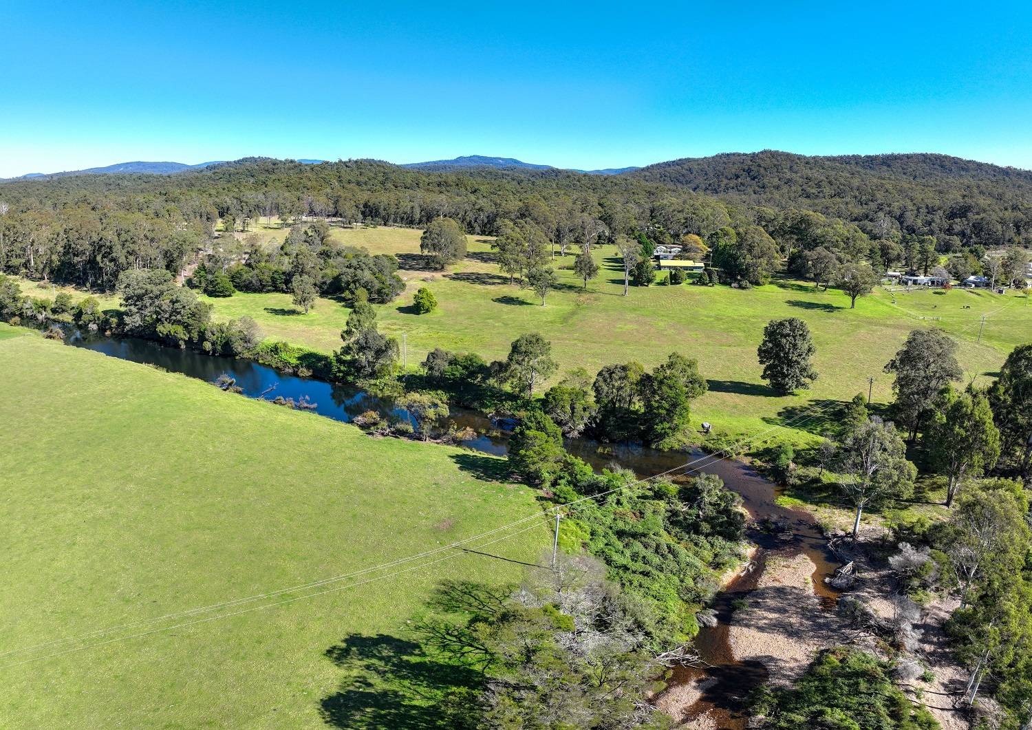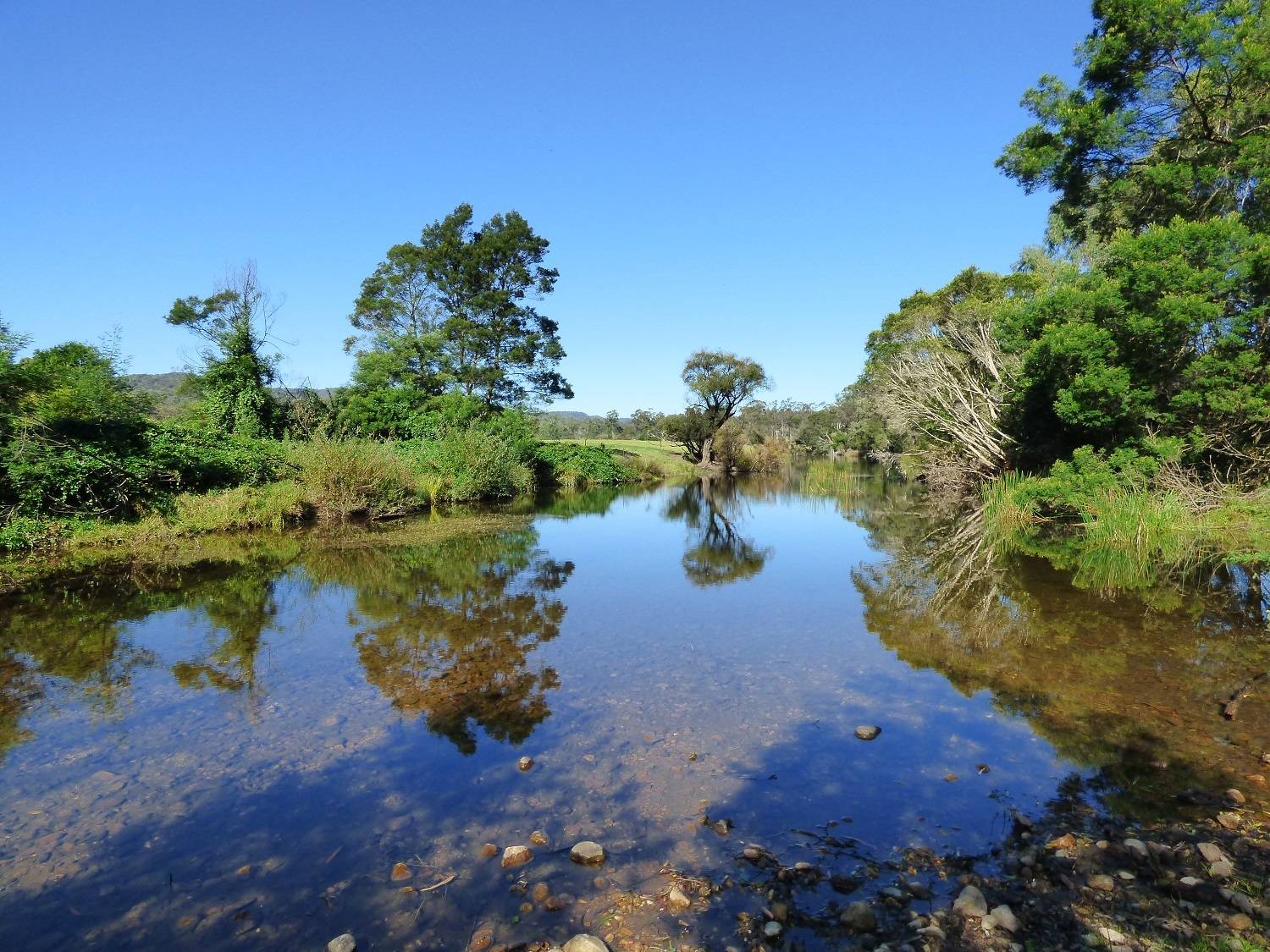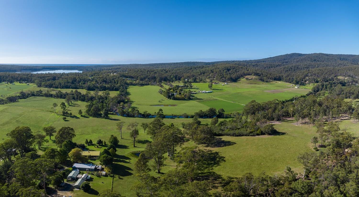 The wait is over! Magical 29 acre holding with 500m of river frontage (approx) nestled in the ever in demand rural locality of Greigs Flat, brilliantly located just a leisurely country drive (7 mins) from all the amenities of the vibrant Pambula village and an extra 3 to the beach. Breathtaking rural vistas towards the river and out across the valley are instantly on hand from the superbly sited 3 bedroom plus study homestead, nestled amongst fabulous established low maintenance surrounds. Spacious throughout, the residence comprises main living (s/c heating) out to a paved laser-lite covered courtyard/alfresco area, family/formal dining featuring raked ceilings and gorgeous open fire out to verandah/patio to enjoy the serenity, clean air and big starry nights. Modern laminex kitchen (complete with s/s range and country larder), informal dining, king sized master (BIR), oversized br’s 2 & 3 walk in robe and BIR respectively (all brs provide external access to paved verandahs) and study/storeroom, good sized laundry/wet room adjoining bathroom (shower, vanity & wc) and second bathroom. Separate from the main residence is a modern, freestanding 1 bedroom (easily converted to 2) cottage, spacious throughout the home features raked ceilings and a sun filled front patio to watch time go by – other improvements include a 60ft x 40ft farm shed/workshop, 12m x 6m 3 bay, 2 roller door garage/workshop, various farm covered areas/ outbuildings, plenty of tank water, electric pump on river and small dam for stock purposes. The property is fenced with approximately 50% Griegs Flat ‘gold’ alluvial flats rising gently to elevated grazing country – easy sealed road access and last but not least some of the best bass fishing you could hope to find. Finders Keepers.