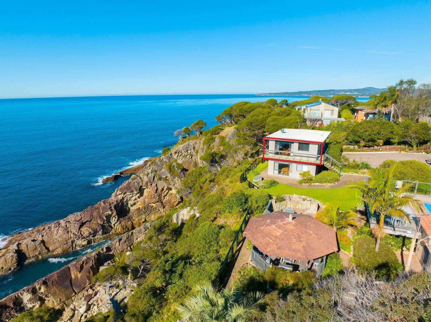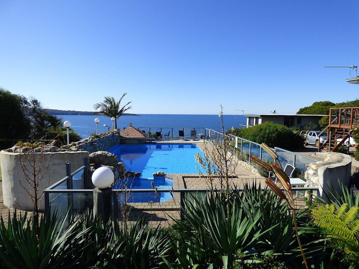 Absolute cliff top apartment where you virtually live in the view. Directly adjoining Eagles Claw Nature Reserve just metres from the cliff face, irreplaceable 2 bedroom unit boasting spine tingling views across Twofold Bay taking in Aslings Beach, Beowa National Park and the majestic expanse of the South Pacific all way to the horizon with the ever present murmur of the ocean. The unit comprises open living/dining out to the front patio (your private whale watching lookout), compact, functional kitchen, both bedrooms (BIRs), combined laundry and sep wc. Situated cliff edge in the Eagle Heights holiday complex which features landscaped surrounds, pool, spa, gazebo and bbq areas. Currently holiday let with excellent returns or just kick back, relax and keep it just for yourself, the choice is yours. Fatal attraction.