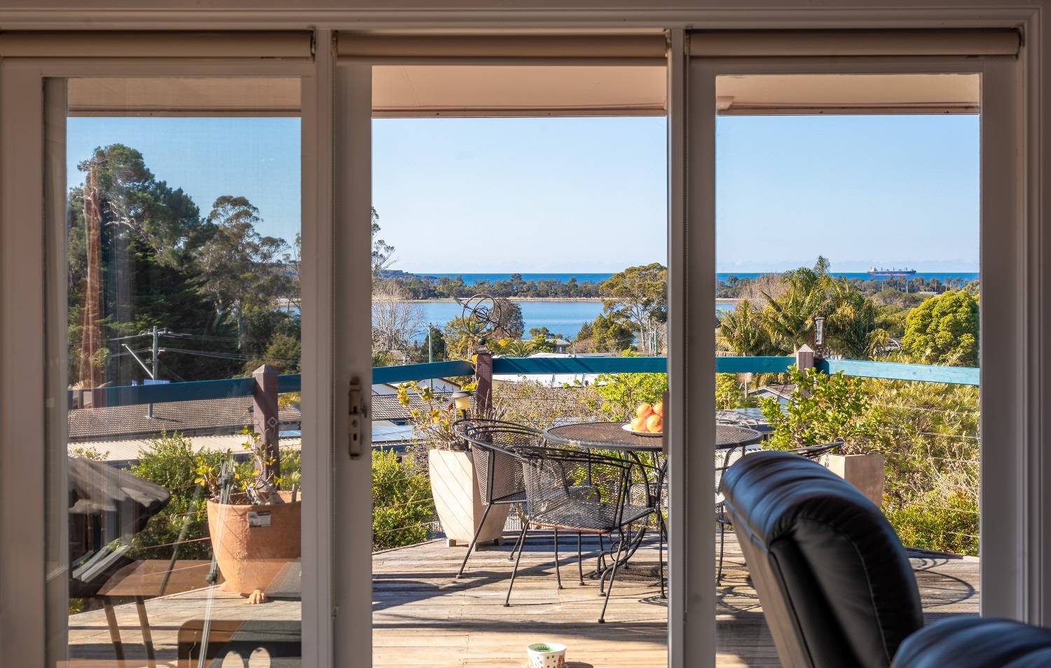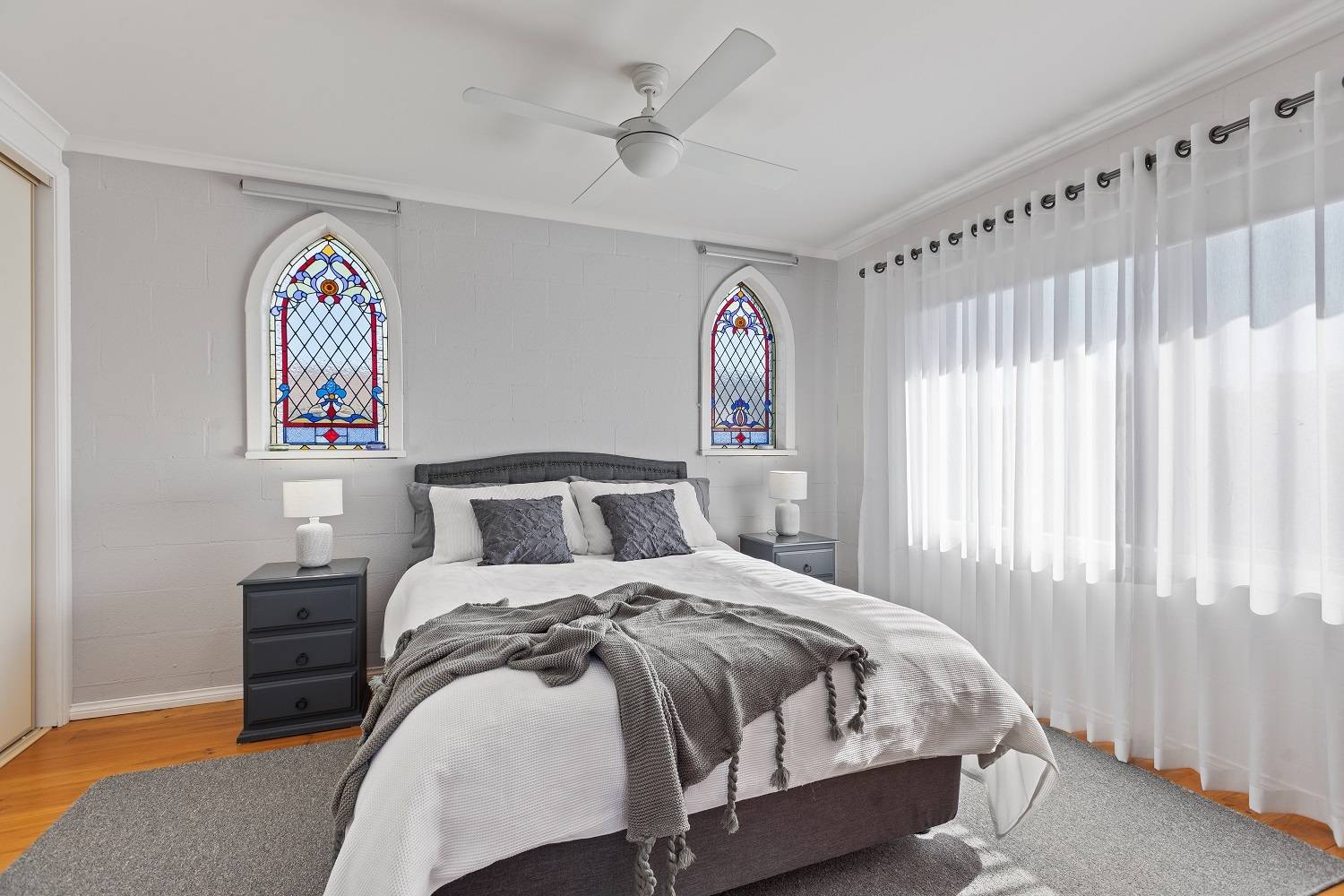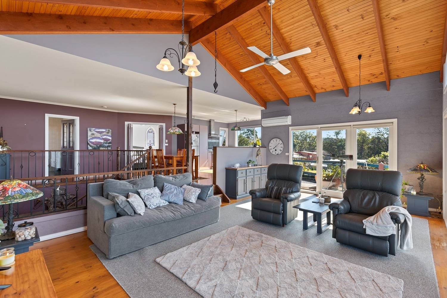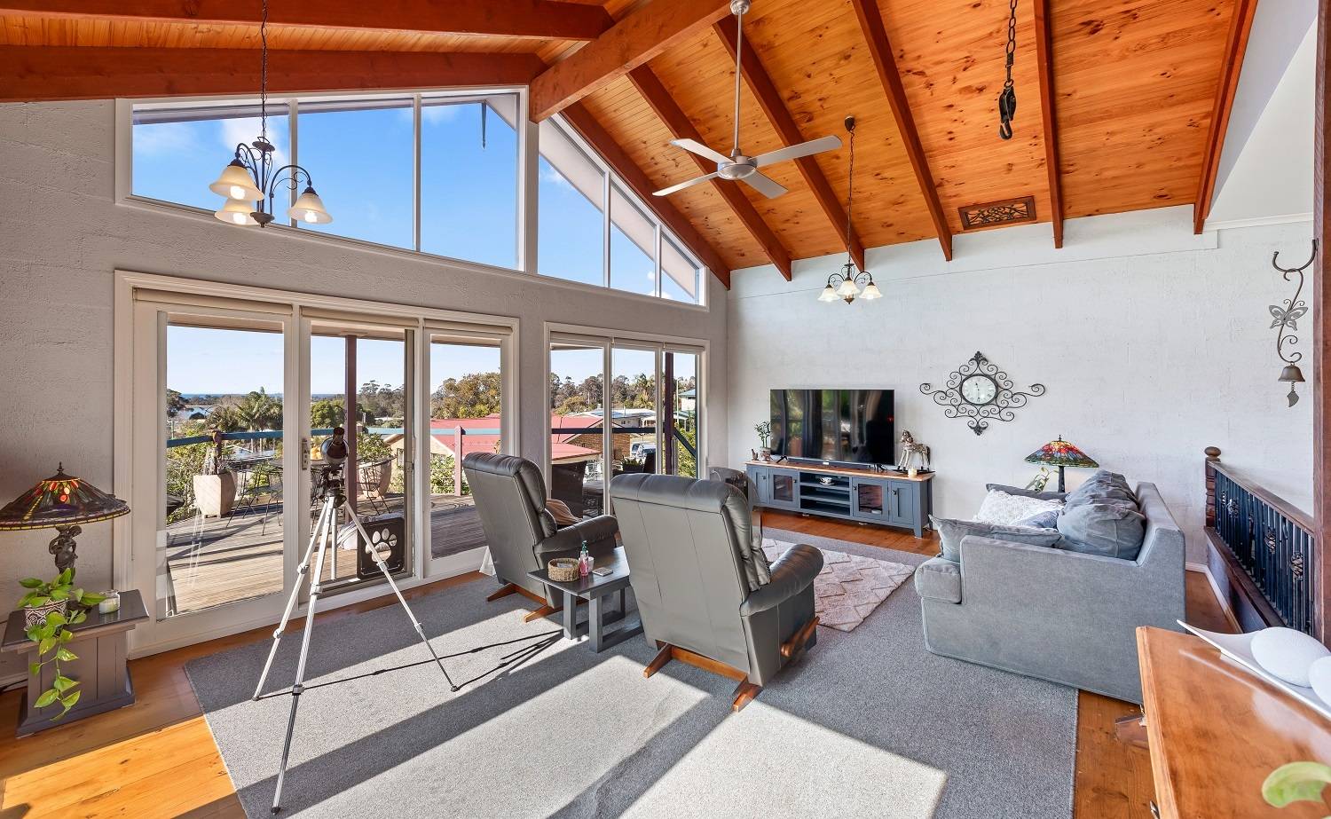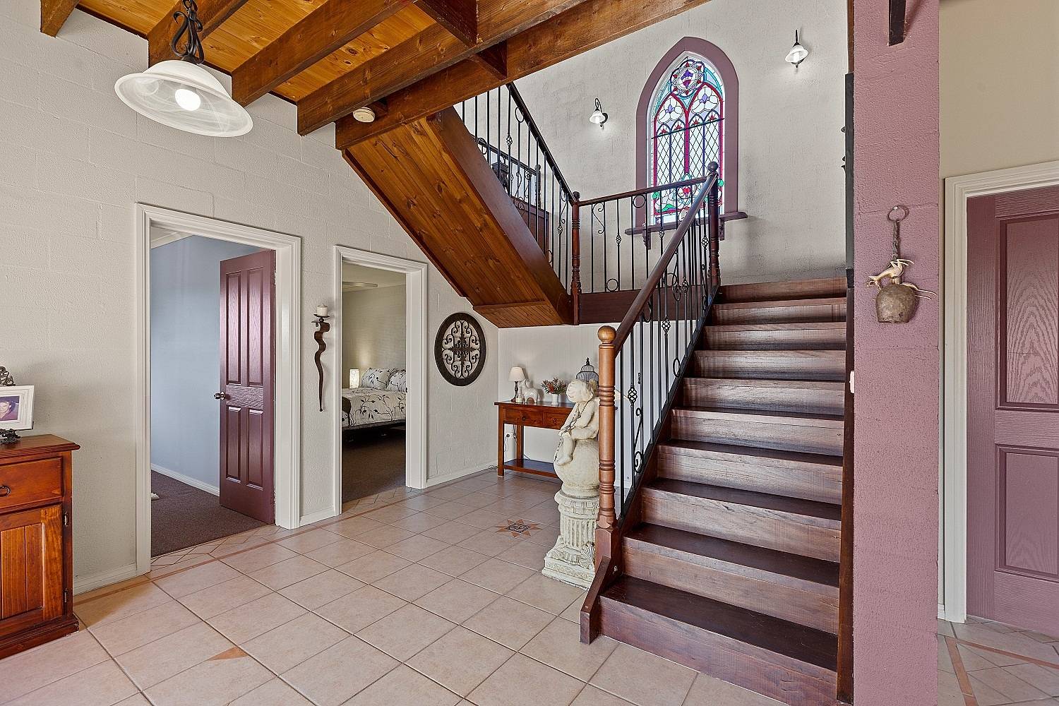 From the moment you enter through the wrought iron gates into the secluded ½ acre allotment you feel as if you’ve been transported to another world. Commanding in presence the brick 3 bedroom residence boasts the perfect North East aspect and comprises an impressive tiled entrance foyer (9ft ceilings) with adjacent living area, 2 king sized bedrooms (BIR’s), combined bathroom/laundry, bath/shower, vanity, wc, built in cupboards and trough. Then up the impressive staircase to a wow of a living space, cypress pine floor and raked ceiling where the big blue water views are on full display out to a partially covered deck to enjoy the sweet sea breezes. Spacious fully equipped (900mm range etc) kitchen with adjacent dining. Master suite features bespoke lead light feature windows and BIR and sparkling fully tiled main bathroom (shower, vanity & wc). The glorious surrounds are like an oversized European court yard including veggie gardens, citrus trees, pizza oven and many established plantings plus a freestanding 11m x 6m garage/workshop complete with its own wc, shower and trough. A world of difference.
