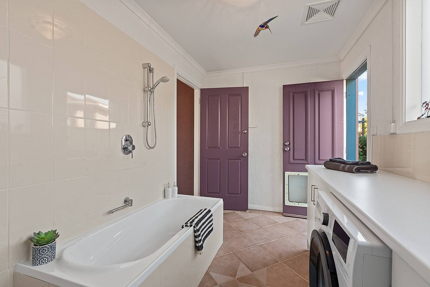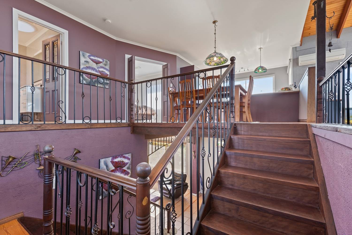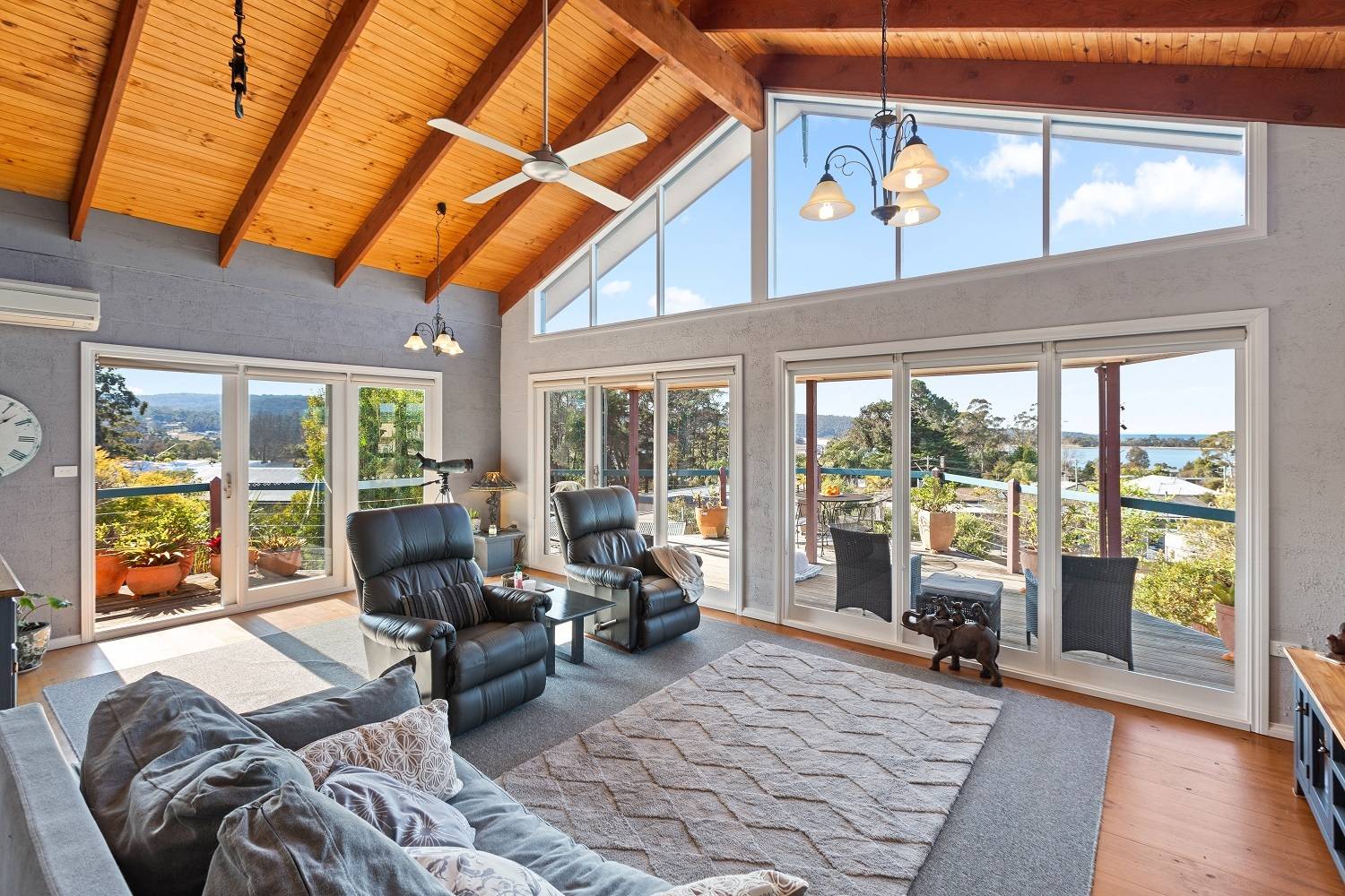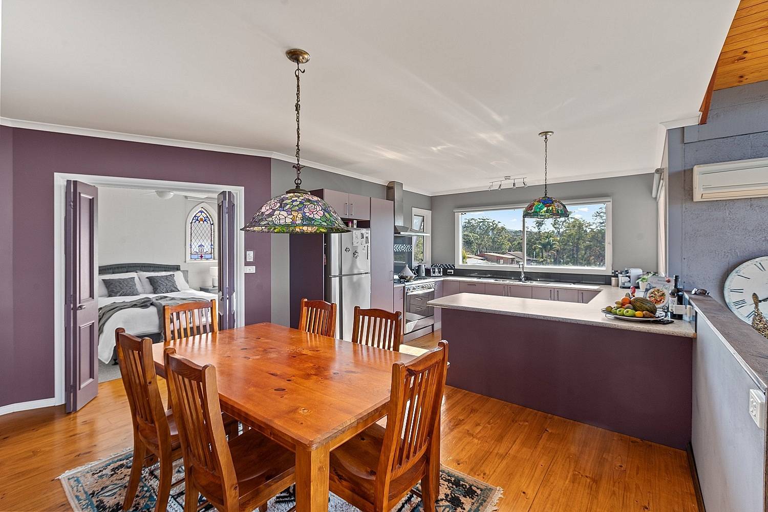 From the moment you enter through the wrought iron gates into the secluded ½ acre allotment you feel as if you’ve been transported to another world. Commanding in presence the brick 3 bedroom residence boasts the perfect North East aspect and comprises an impressive tiled entrance foyer (9ft ceilings) with adjacent living area, 2 king sized bedrooms (BIR’s), combined bathroom/laundry, bath/shower, vanity, wc, built in cupboards and trough. Then up the impressive staircase to a wow of a living space, cypress pine floor and raked ceiling where the big blue water views are on full display out to a partially covered deck to enjoy the sweet sea breezes. Spacious fully equipped (900mm range etc) kitchen with adjacent dining. Master suite features bespoke lead light feature windows and BIR and sparkling fully tiled main bathroom (shower, vanity & wc). The glorious surrounds are like an oversized European court yard including veggie gardens, citrus trees, pizza oven and many established plantings plus a freestanding 11m x 6m garage/workshop complete with its own wc, shower and trough. A world of difference.
